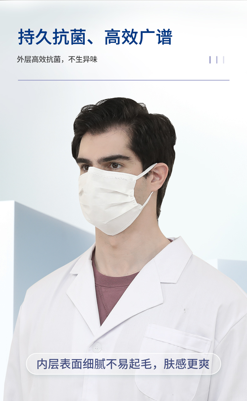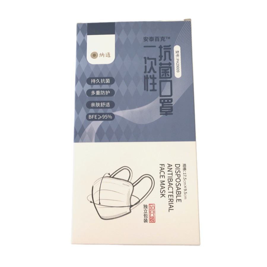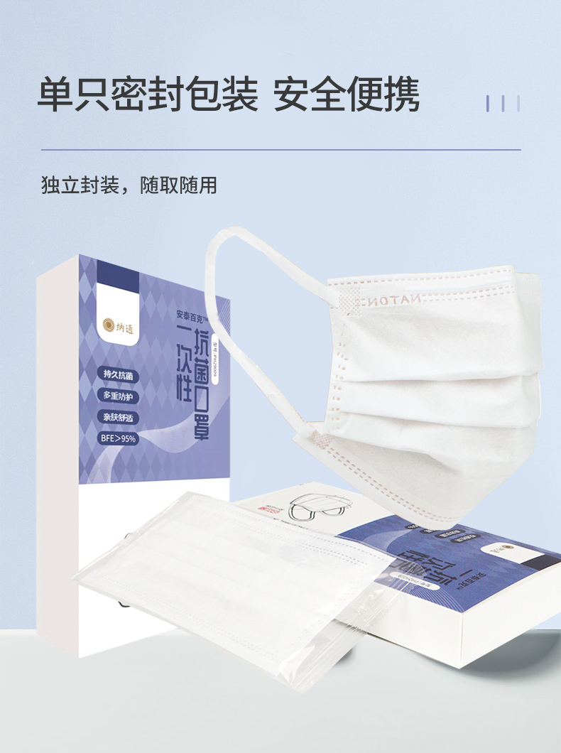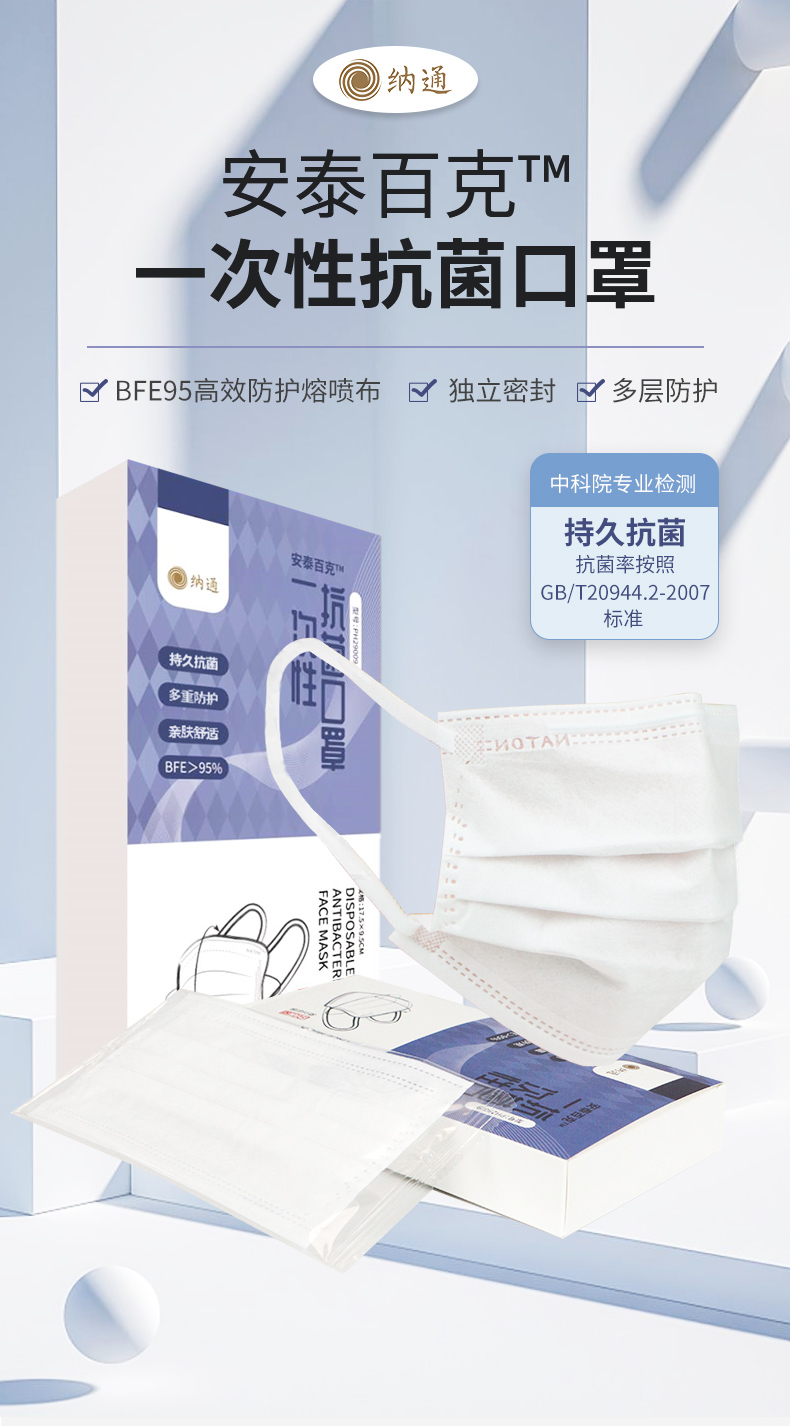 纳通抗菌口罩 一次性透气口罩 三层防护成人白色 独立包装