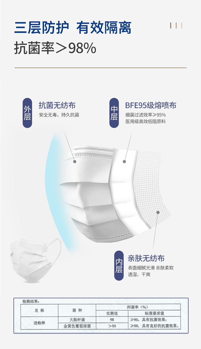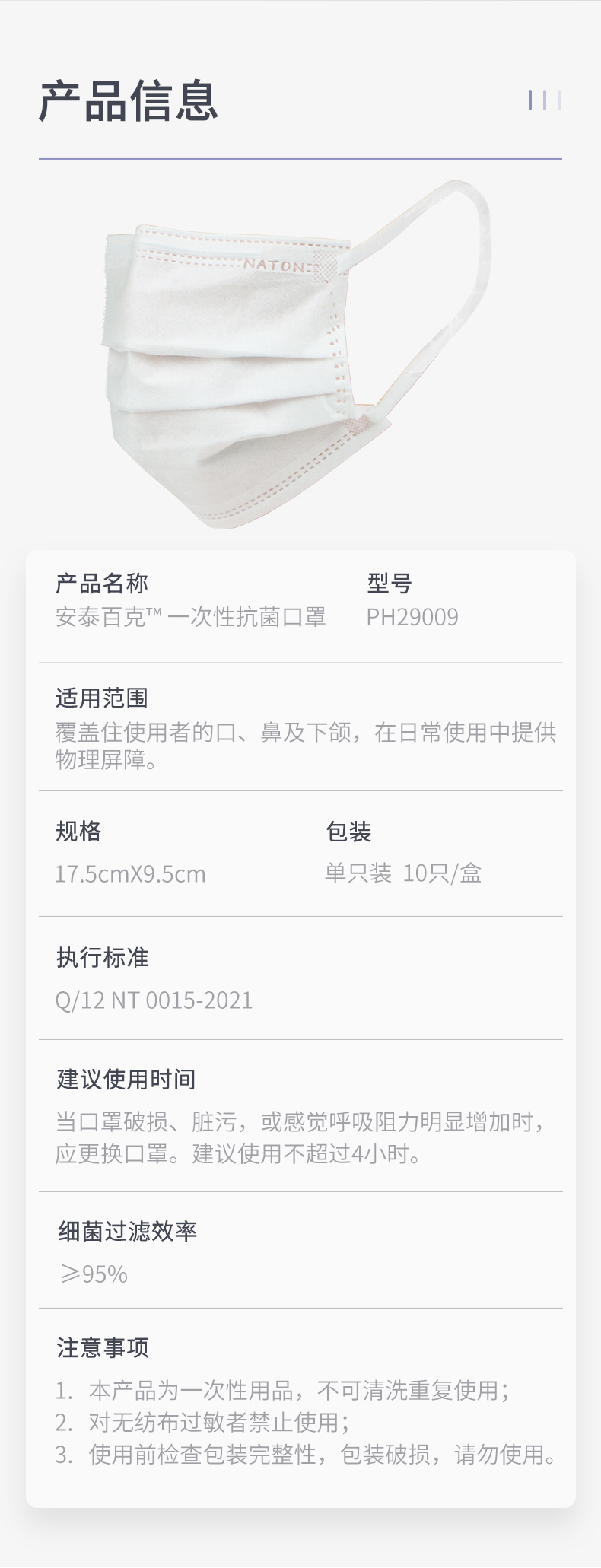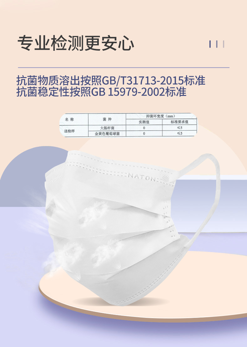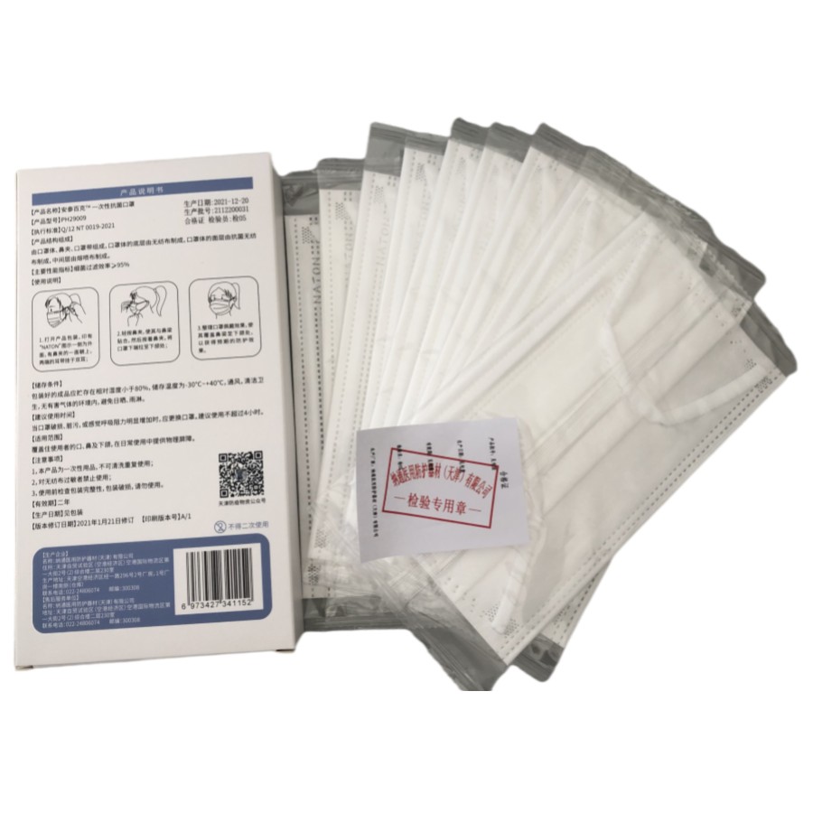 纳通抗菌口罩 一次性透气口罩 三层防护成人白色 独立包装