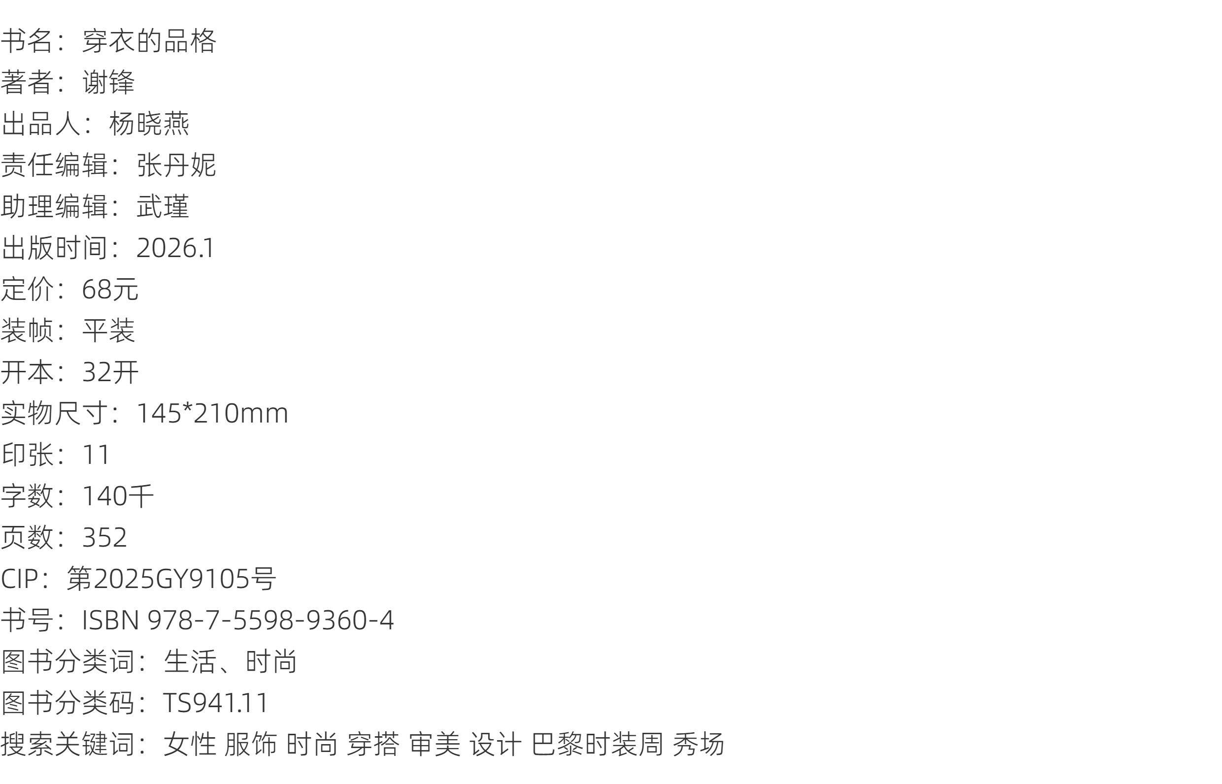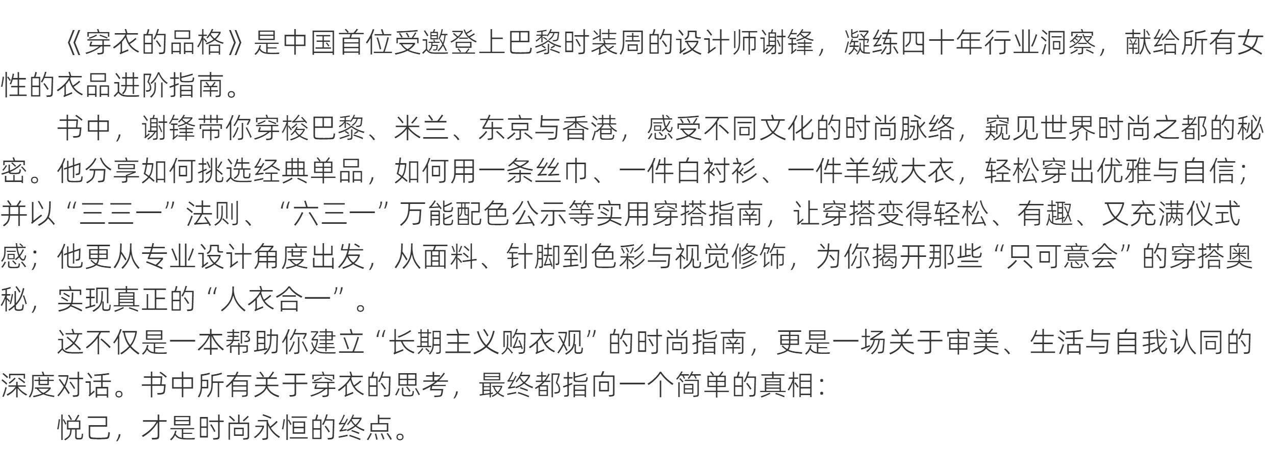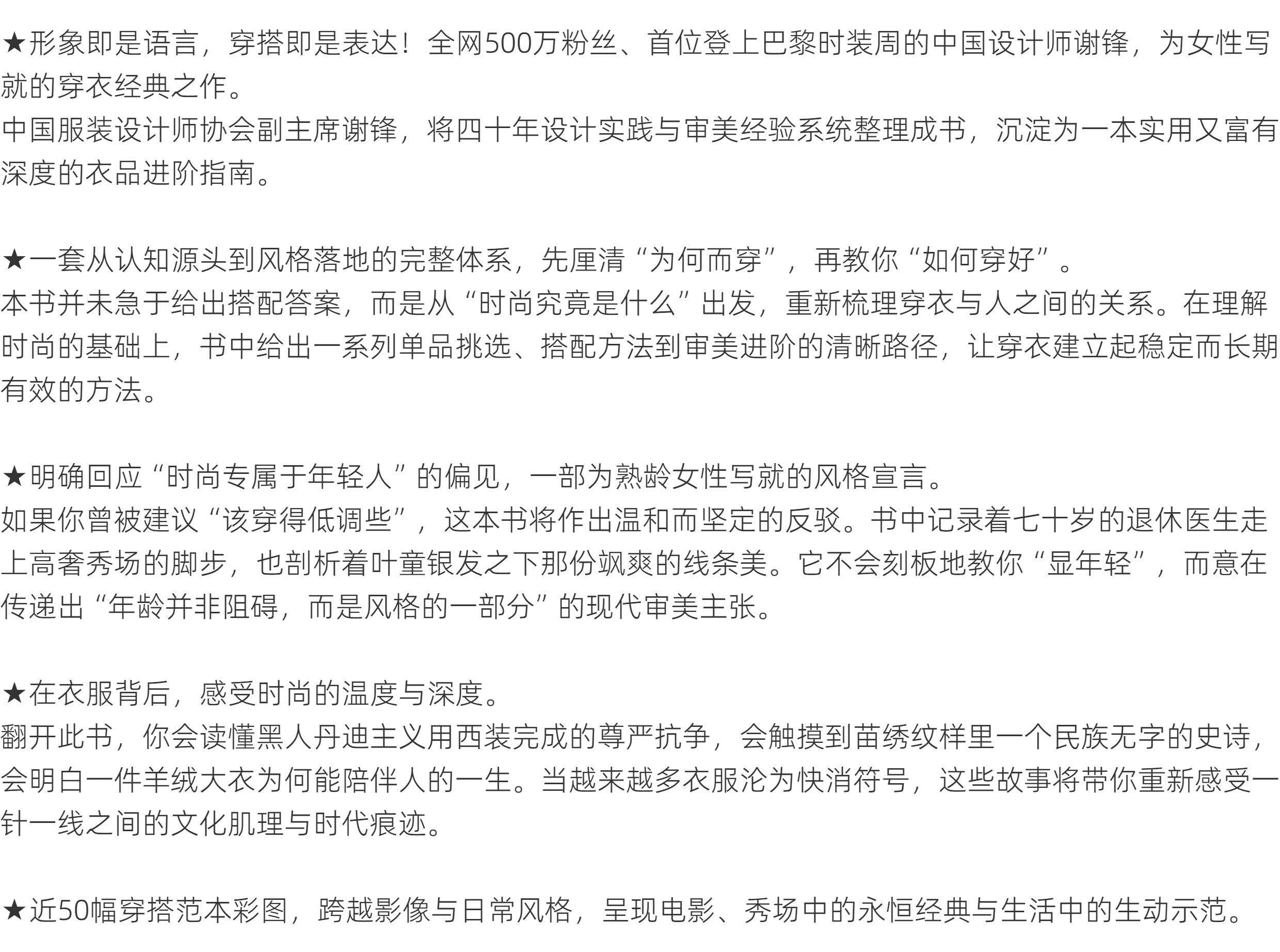 穿衣的品格 谢锋/著 北贝 女性 服饰 时尚 穿搭 审美 设计 巴黎时装周 秀场