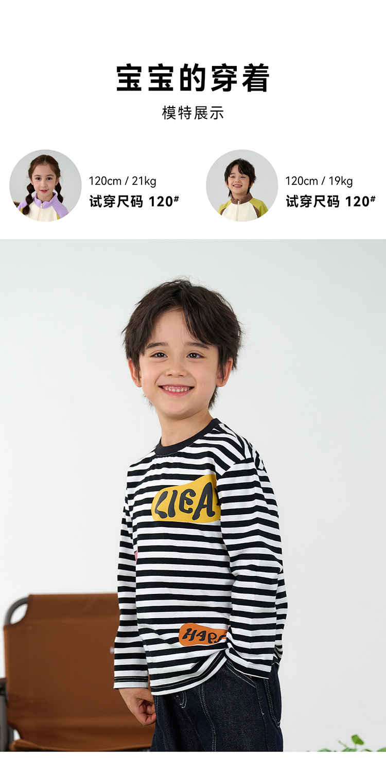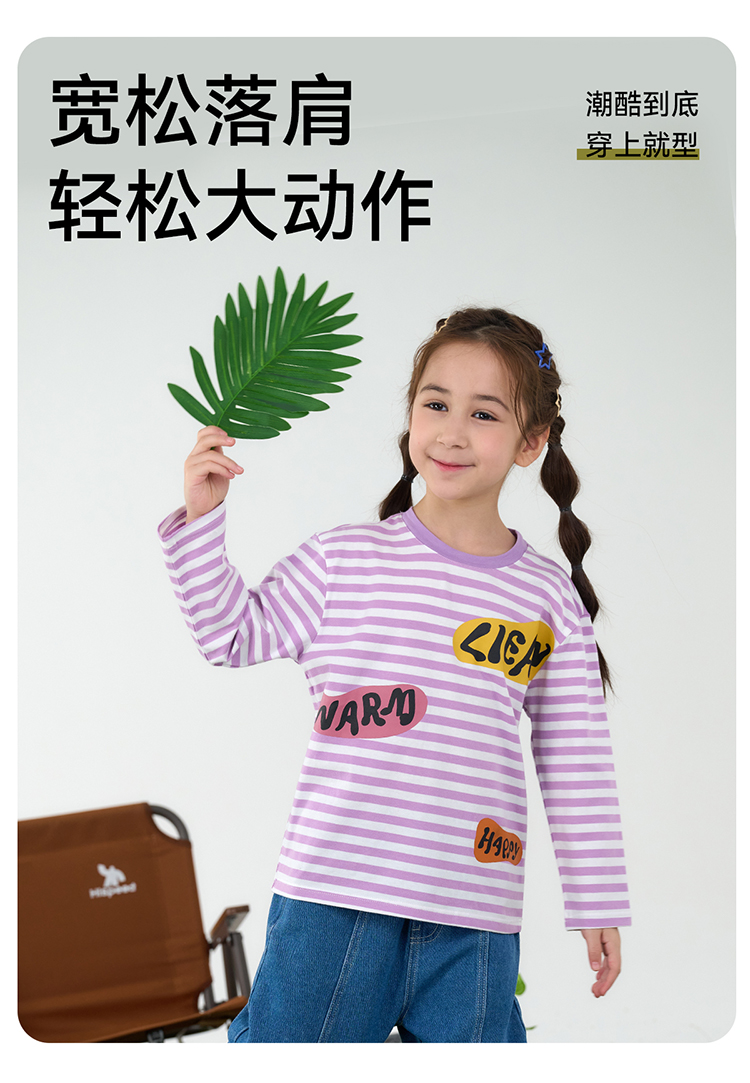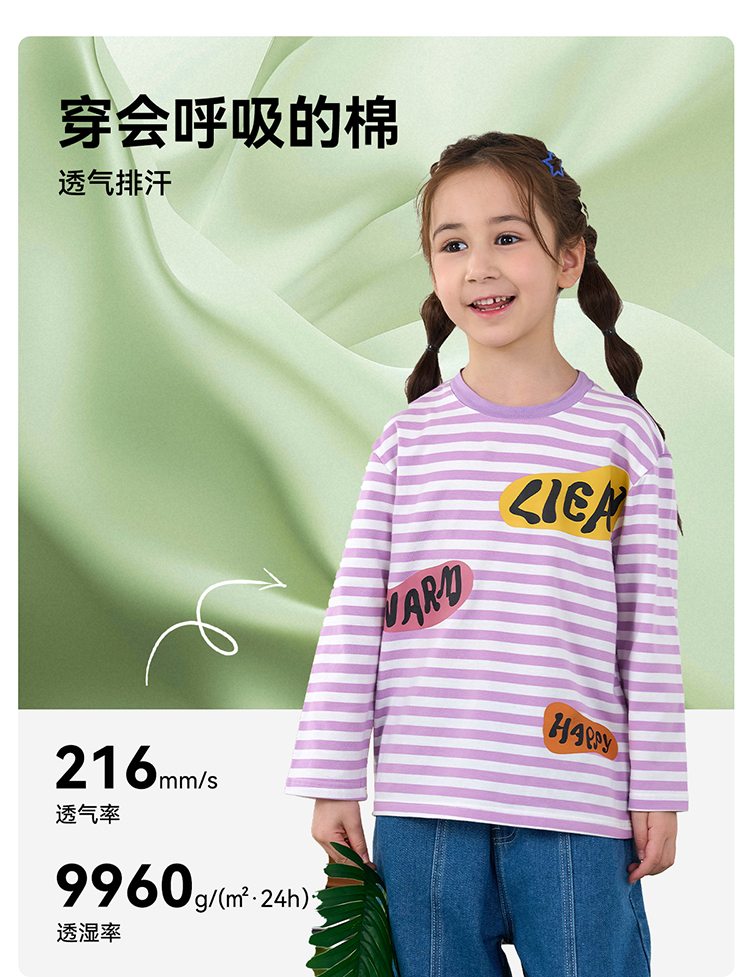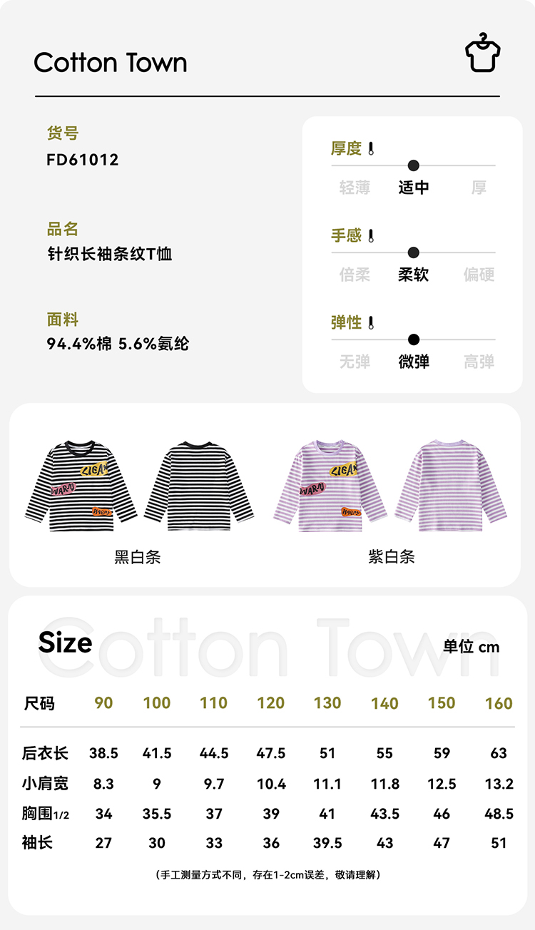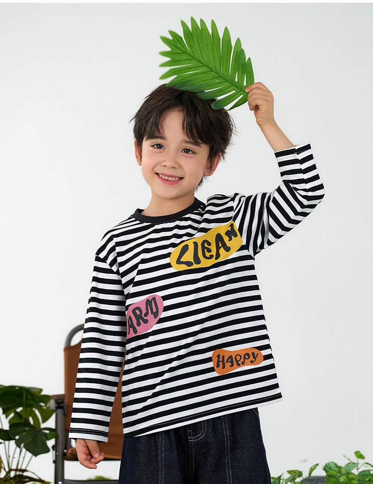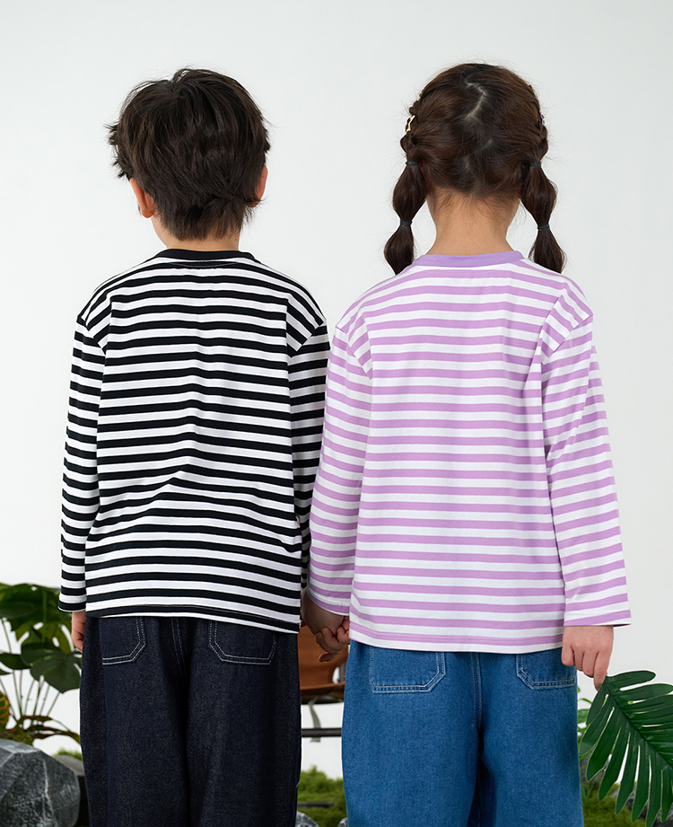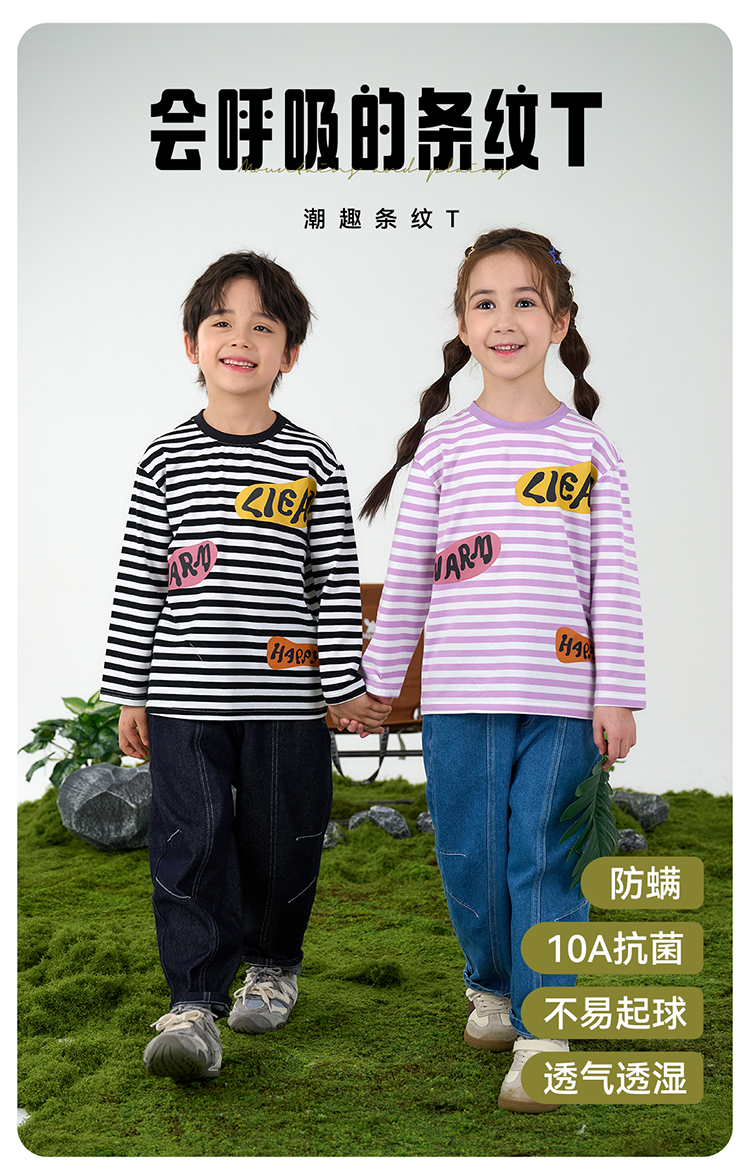 【会呼吸的条纹T】棉花堂 针织长袖条纹T恤 防螨 透气 舒适 不易起球 FD61012