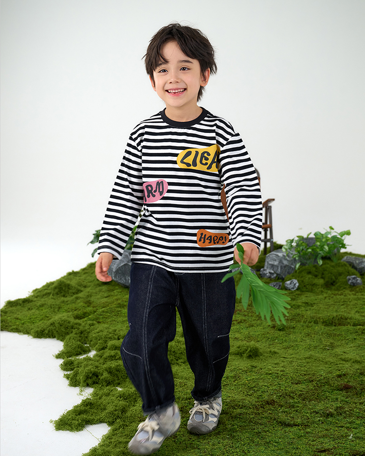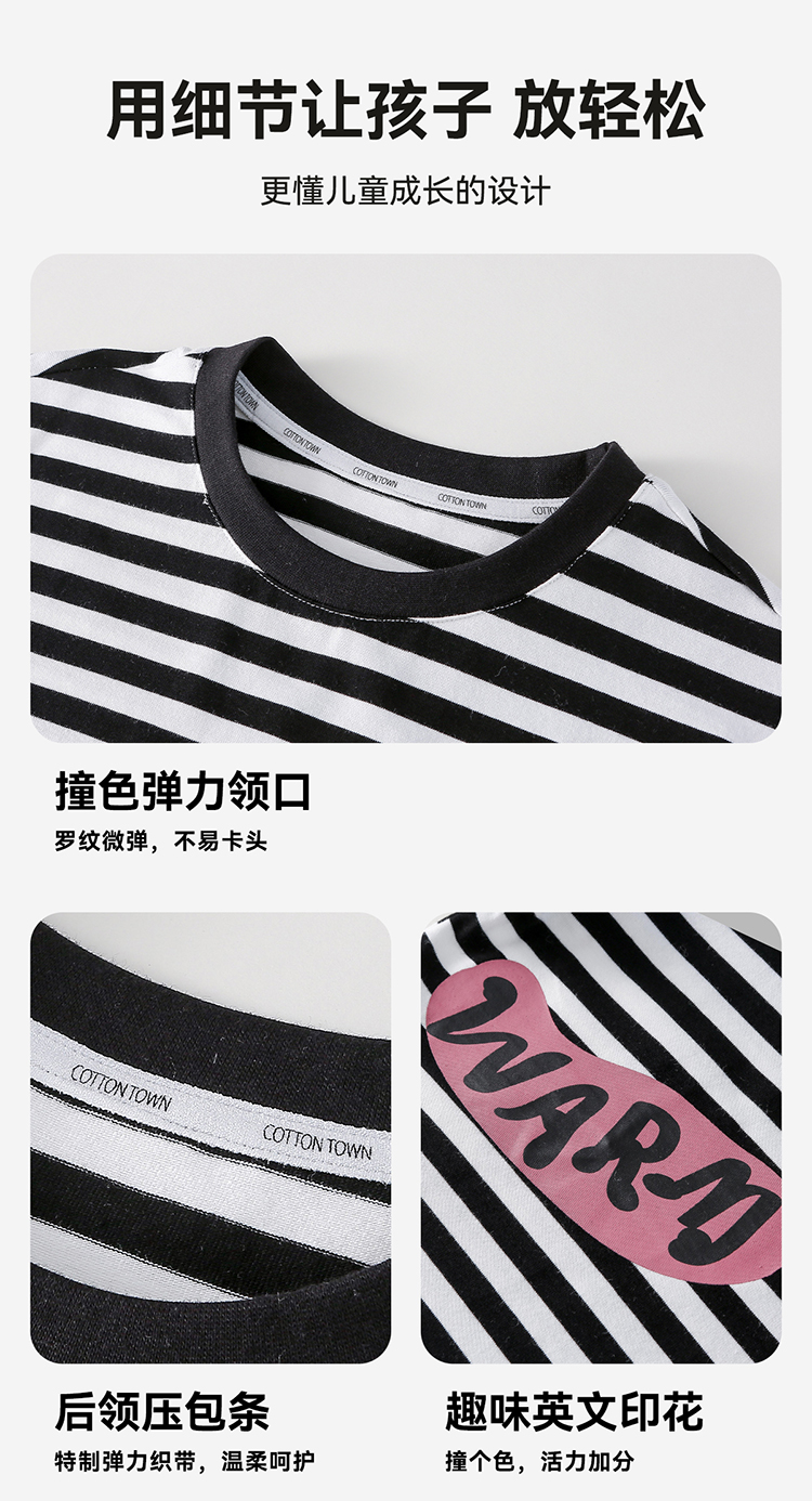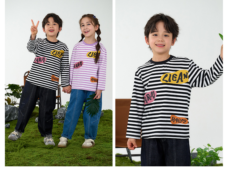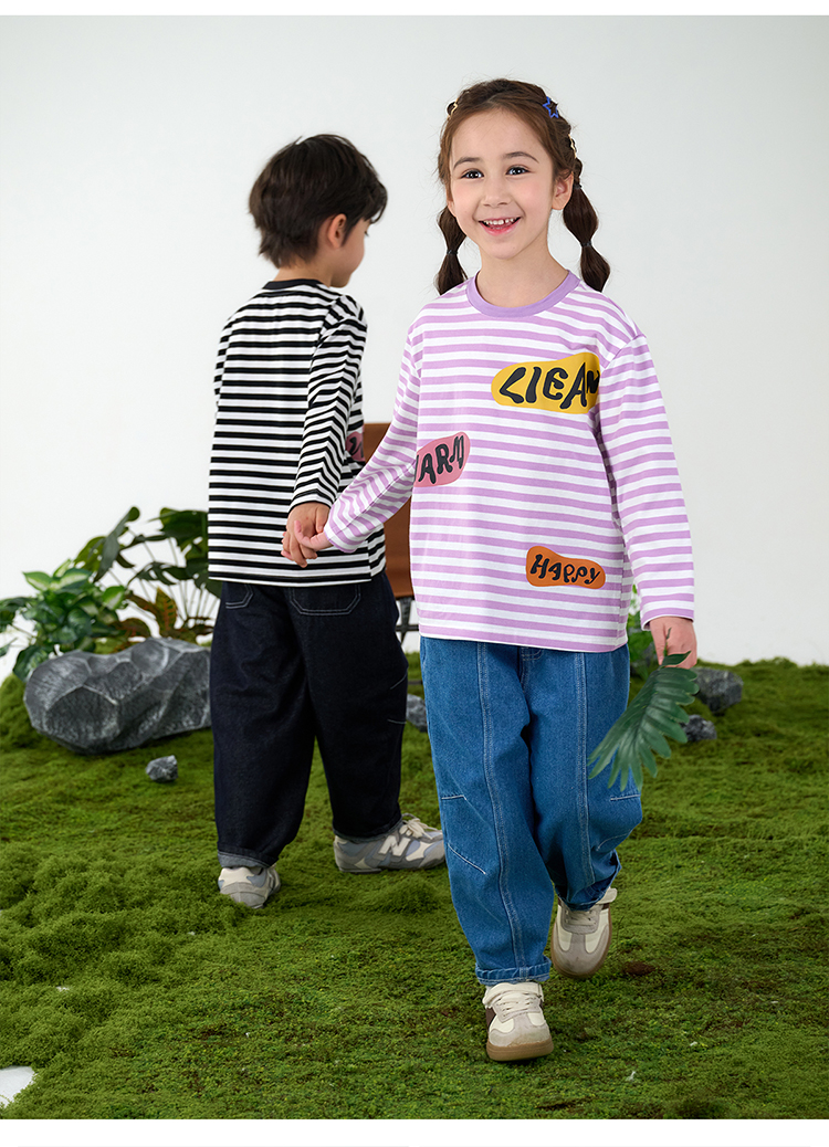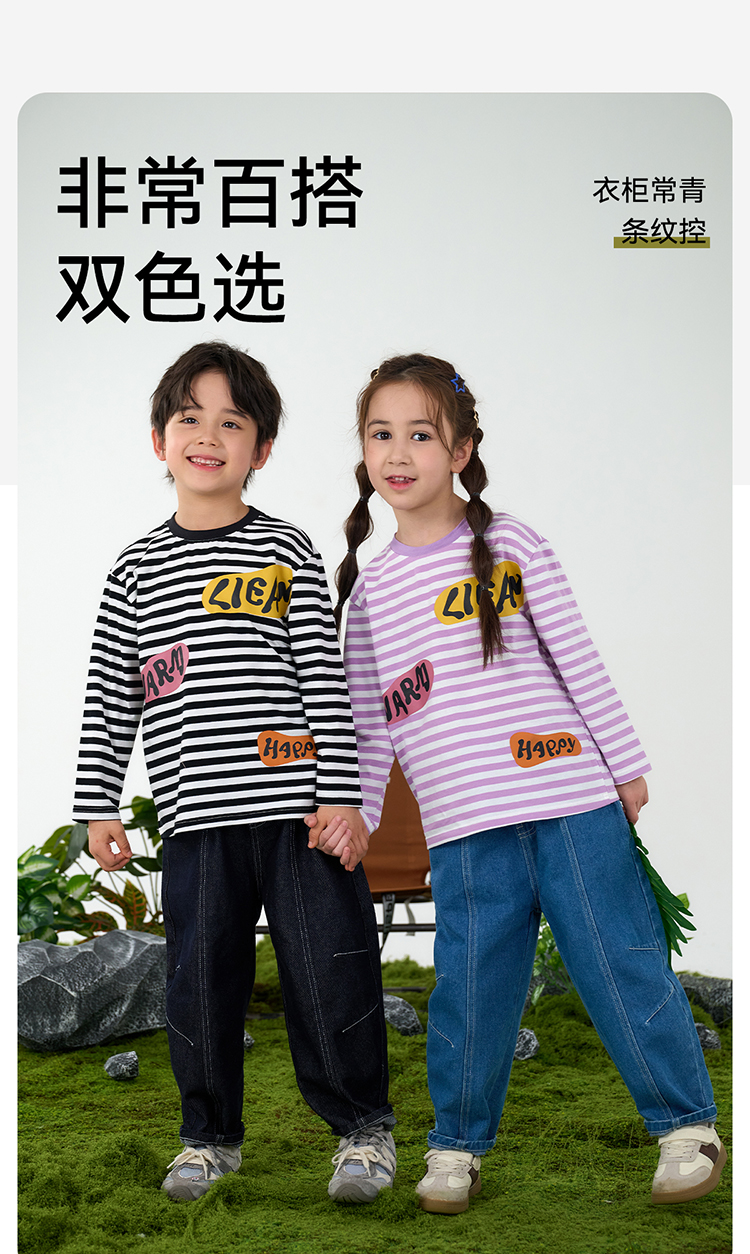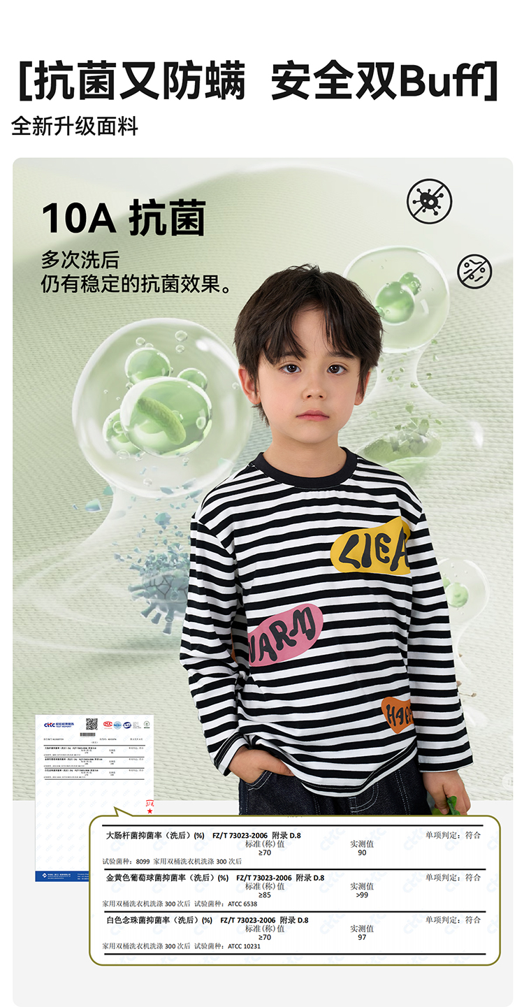 【会呼吸的条纹T】棉花堂 针织长袖条纹T恤 防螨 透气 舒适 不易起球 FD61012