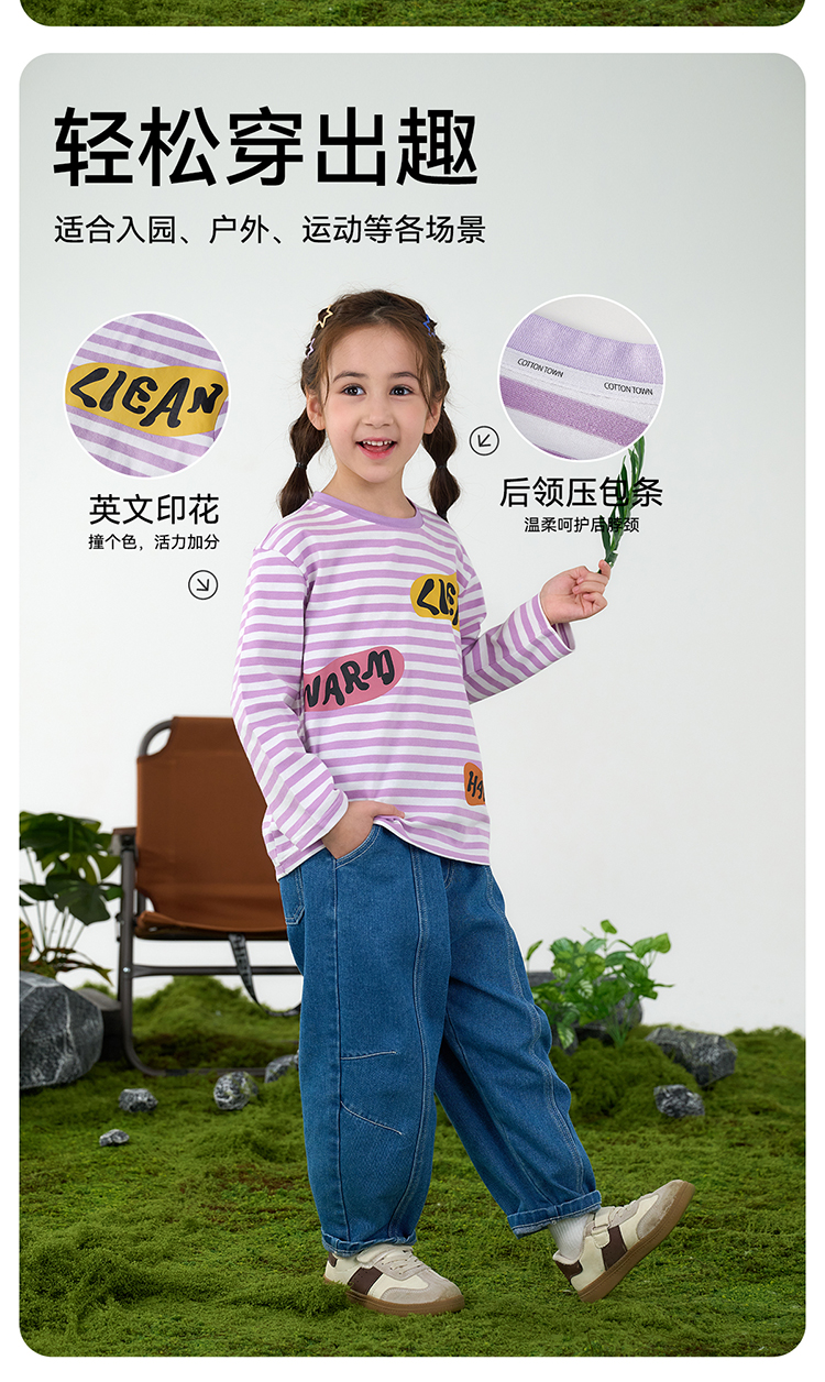 【100%棉针织插肩长袖T恤】棉花堂针织长袖T恤 10A抗菌 吸湿透气 舒适柔软 FA52085YX