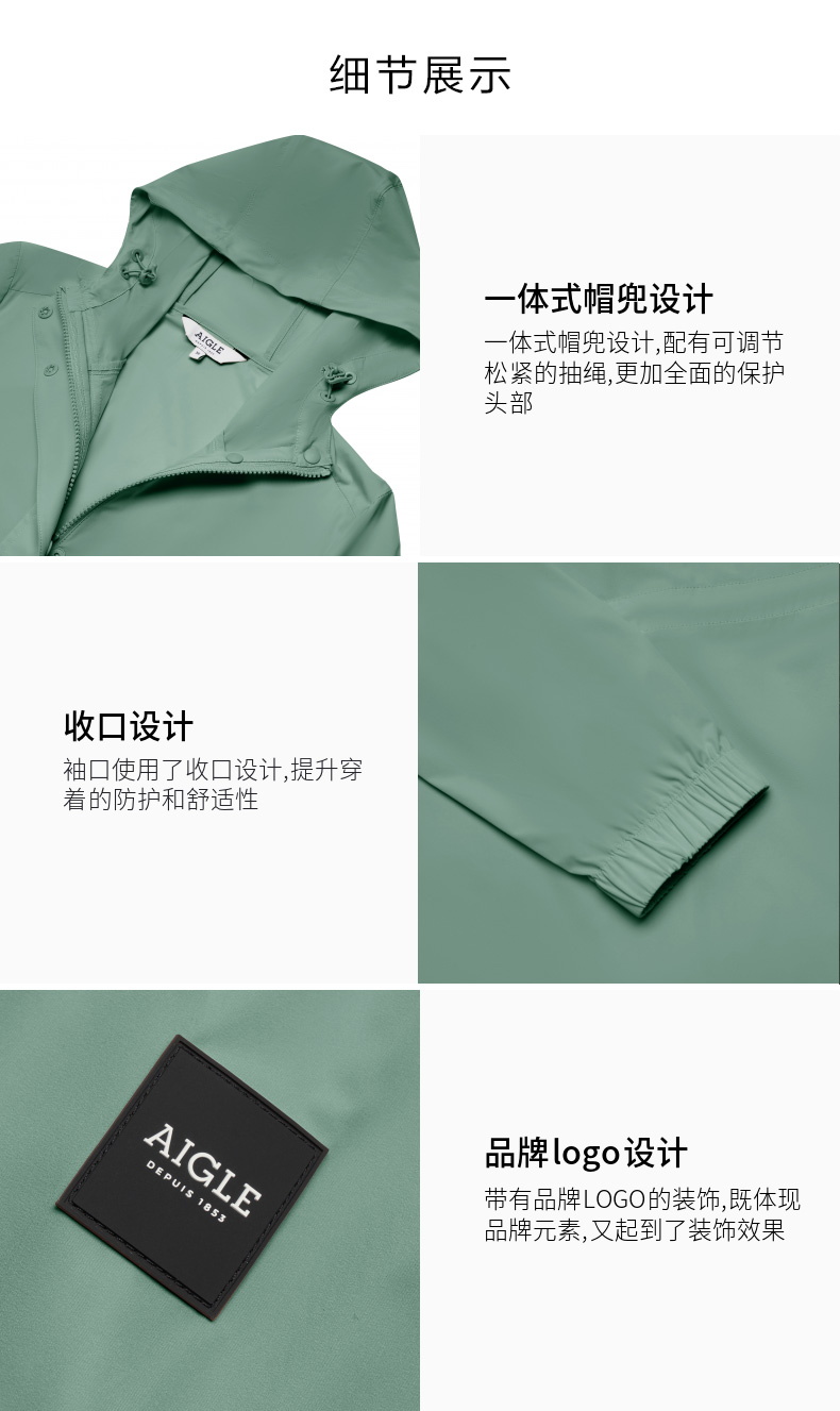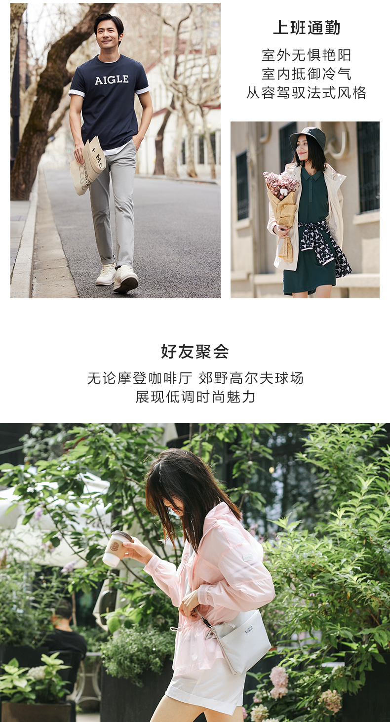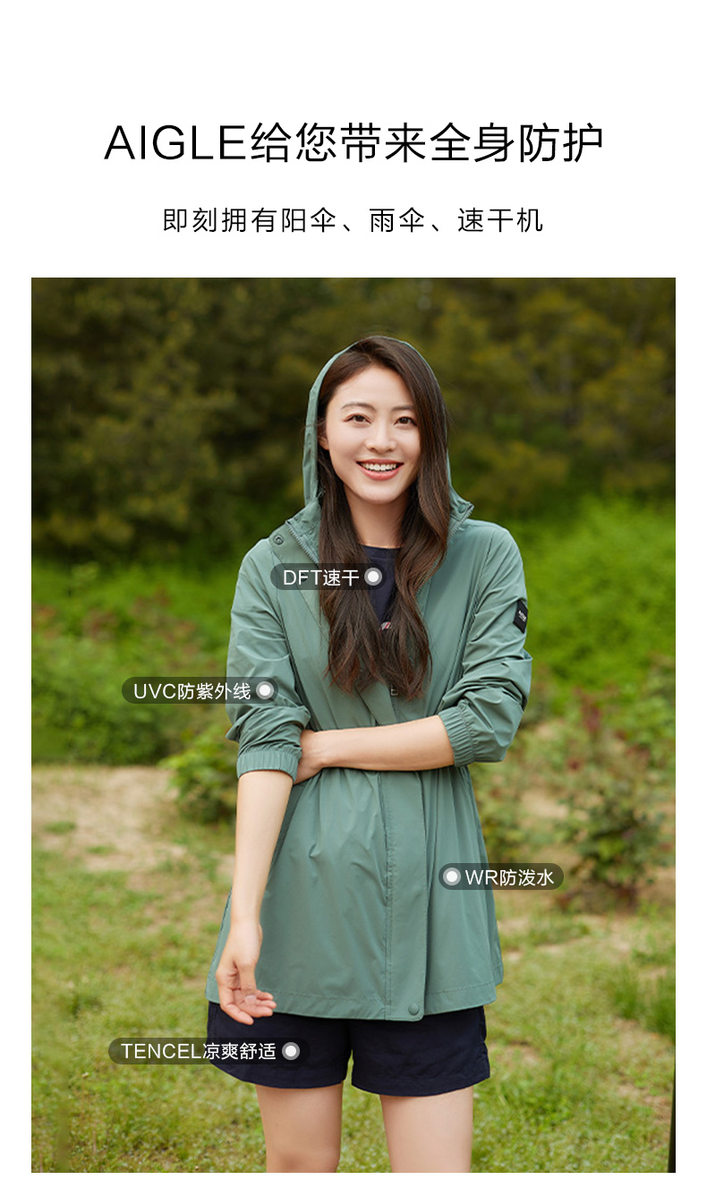 【4F】AIGLE艾高春夏新品女UPF40+防晒皮肤衣防泼水易打包户外夹克外套