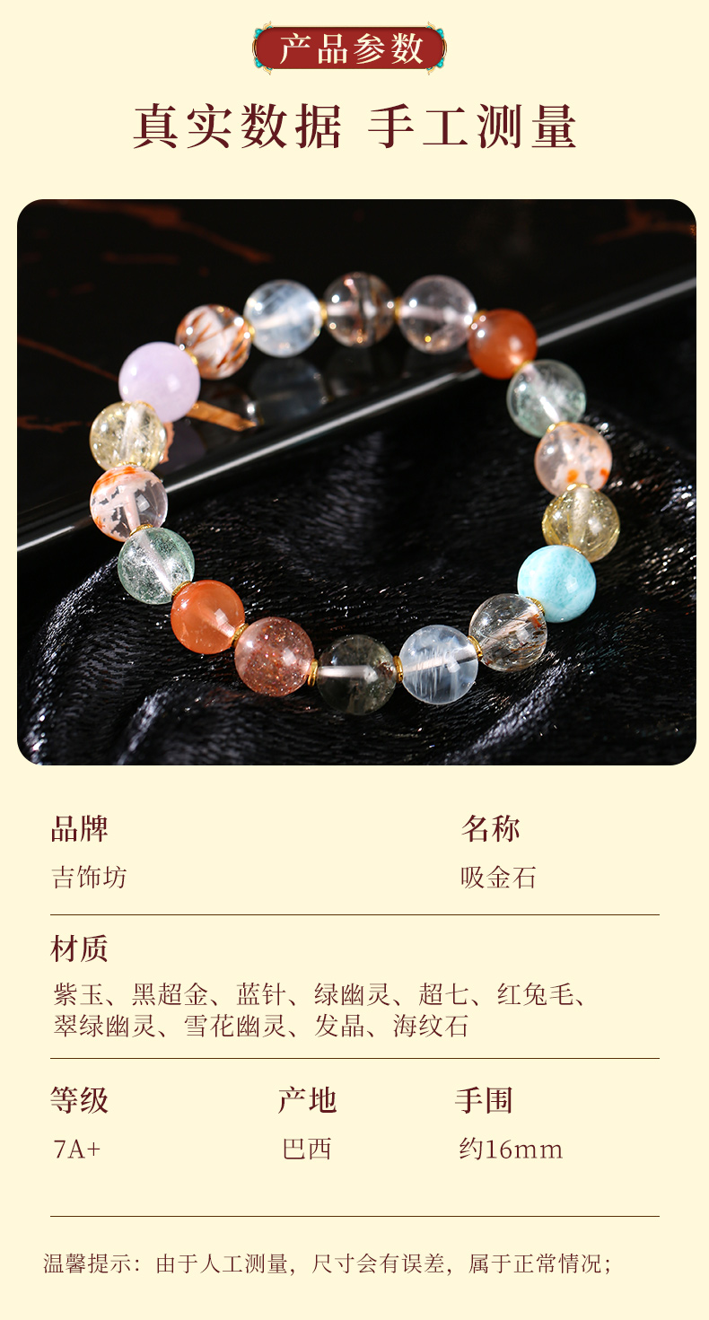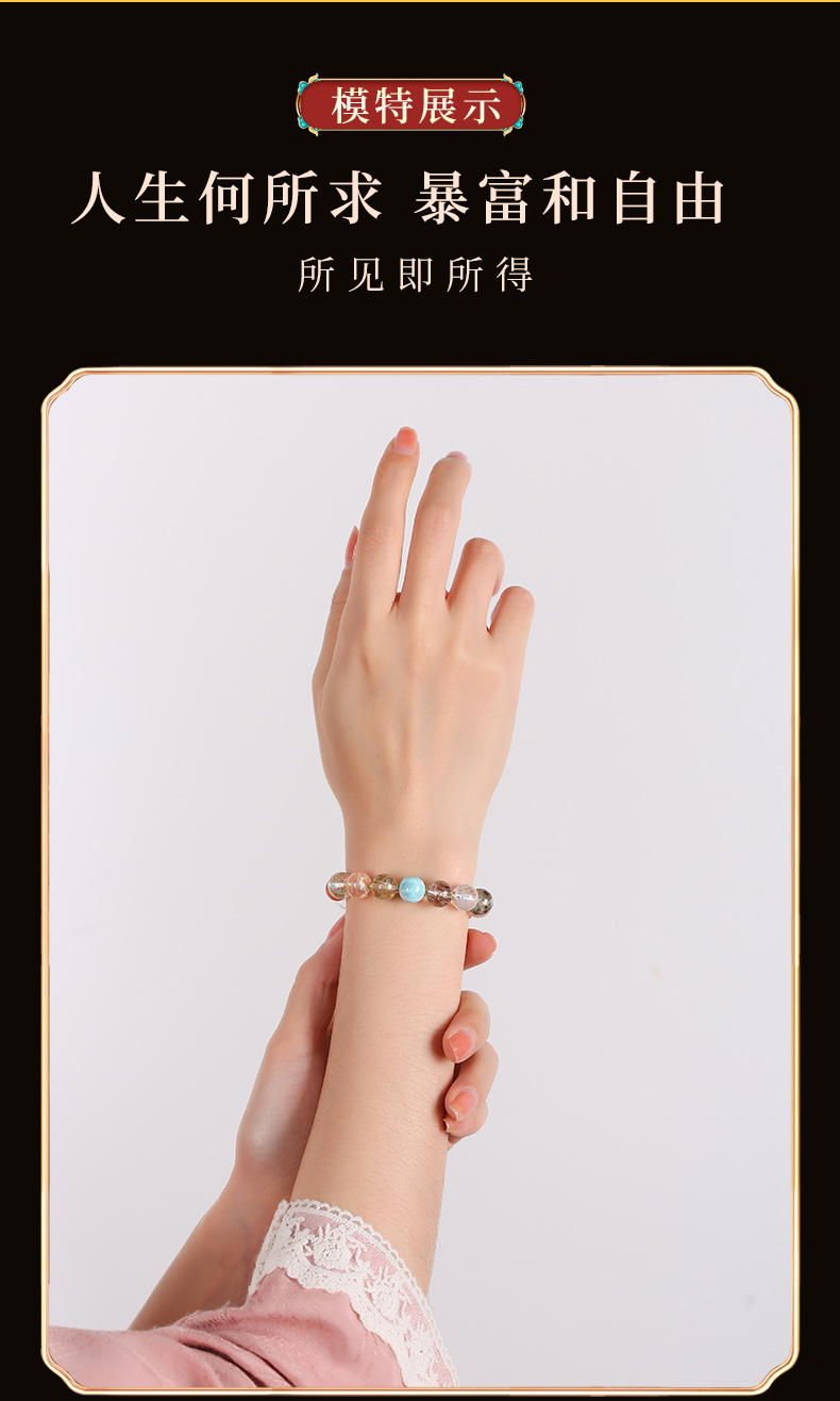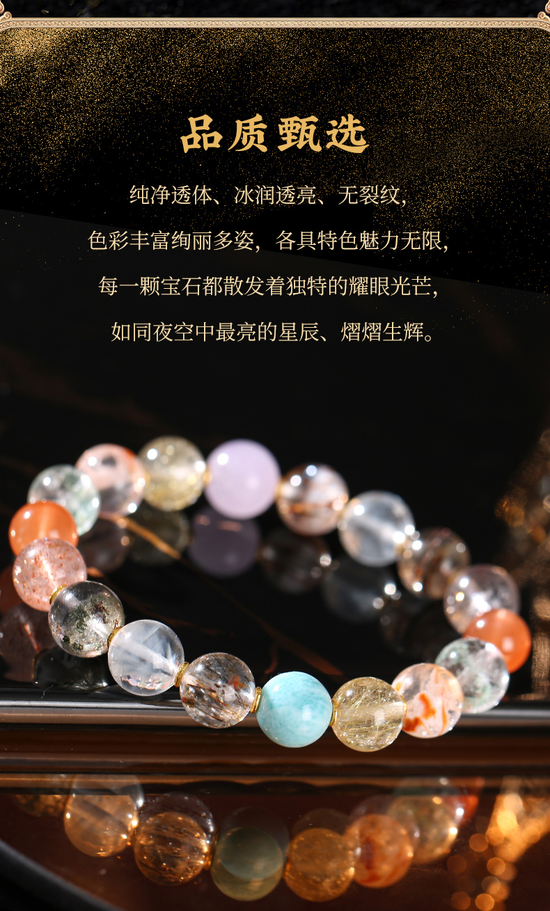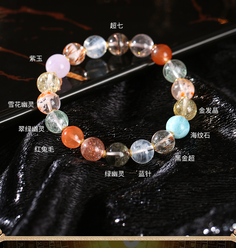 高品质7A+超七多宝手链 发晶超七海纹石幽灵水晶手串事业财富