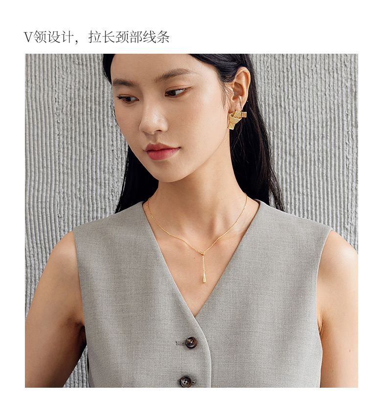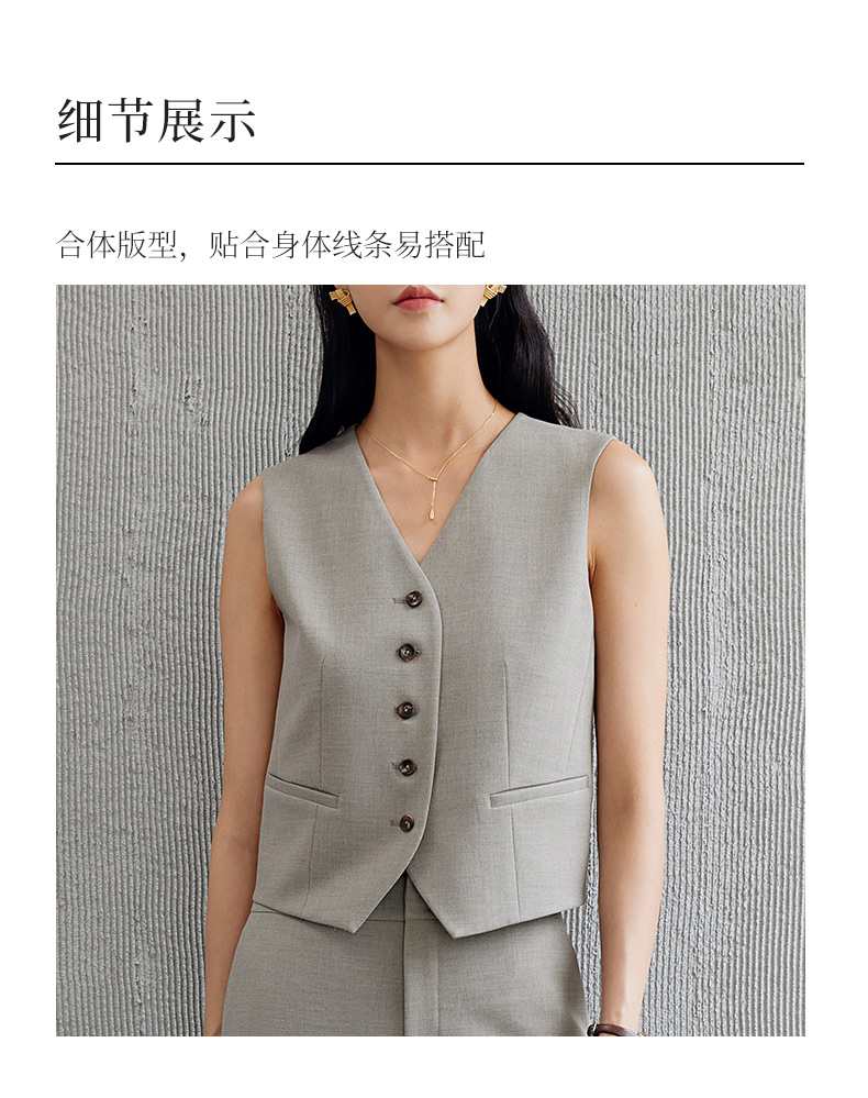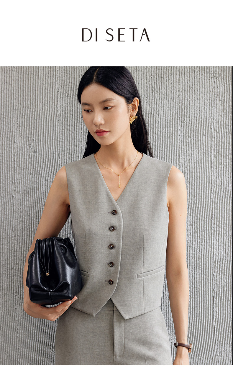 玳莎老钱风V领马甲女士通勤白领外搭无袖上衣背心秋季新款 EC37002