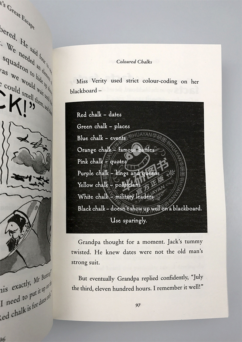Grandpa is Jack’s favourite person in the world. It doesn’t matter that he wears his slippers to the supermarket, serves Spam a la Custard for dinner, and often doesn’t remember Jack’s name. But then Grandpa starts to believe he’s back in World War II, when he was a Spitfire fighter pilot, and he’s sent to live in an old folk’s home run by the sinister Matron Swine. Now it’s up to Jack to help Grandpa plot a daring escape!
