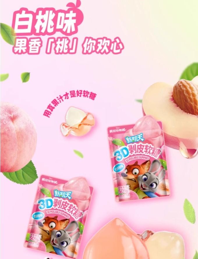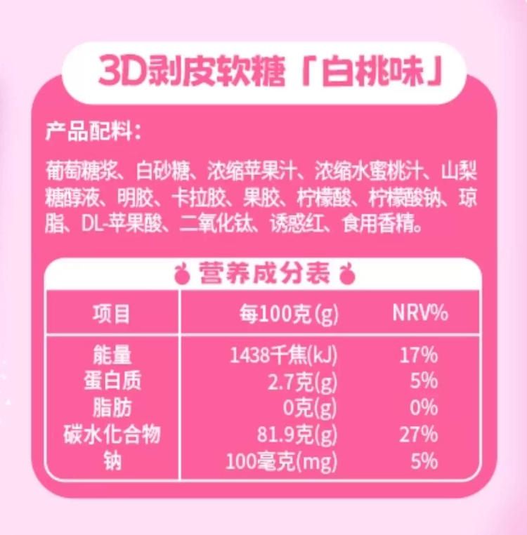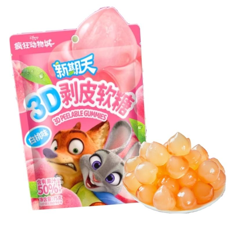 新期天白桃bobo 3D剥皮软糖(白桃味)75g