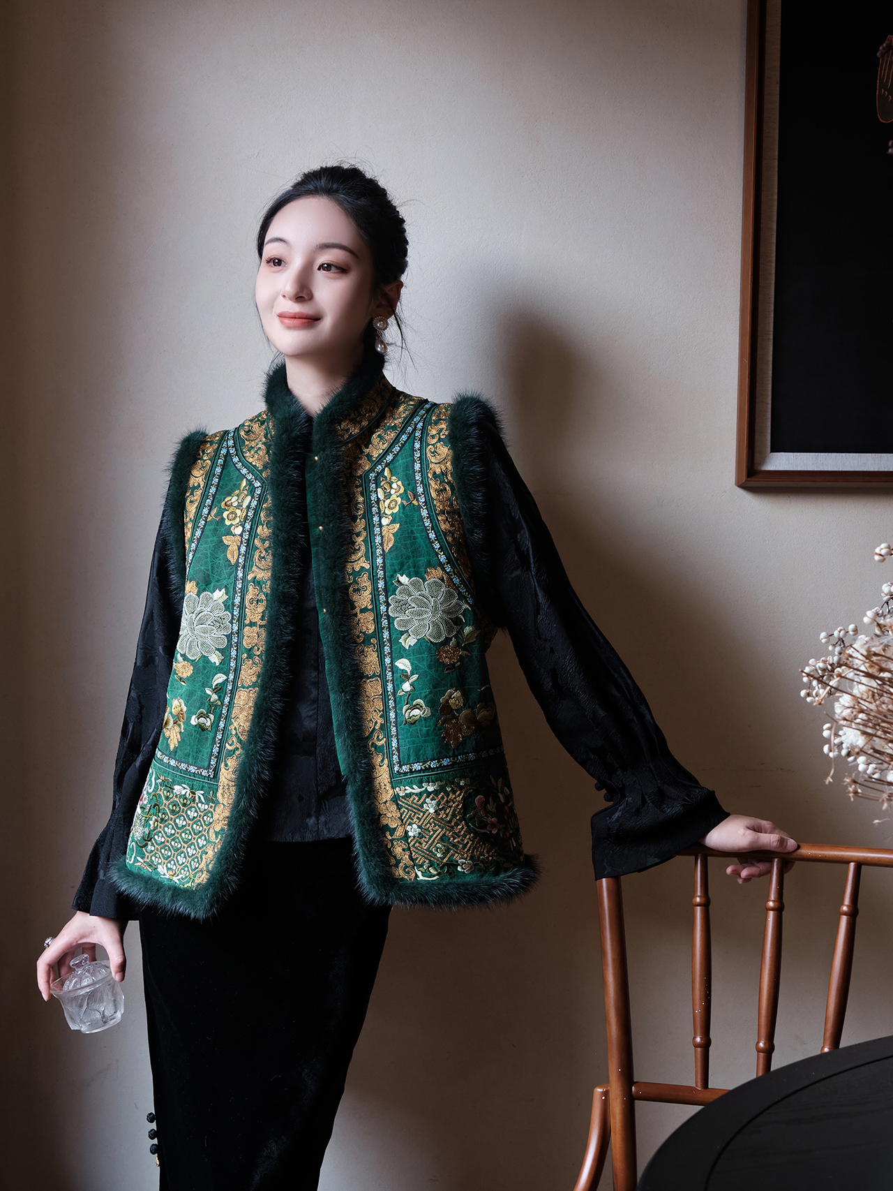 双11惠享 |盛唐牡丹| 福寿牡丹水貂毛坎肩-绿色[特价品]