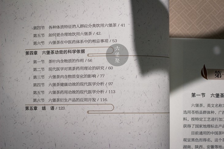 同时,该书还从茶叶生物化学的角度,分别对传统工艺和现代工艺六堡茶的内含物质构成及转化、茶叶香气类型、品质成分鉴定等方面进行系统化整理解构。
