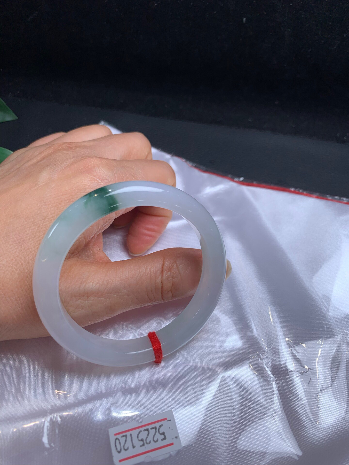620118,52.3飘花小清新手镯,9.6-7.5mm,清新细腻的条形 ,干净冰润,飘一抹清新蓝花 干净完美。超值价💰31200 #优石客珠宝#香玉荟萃