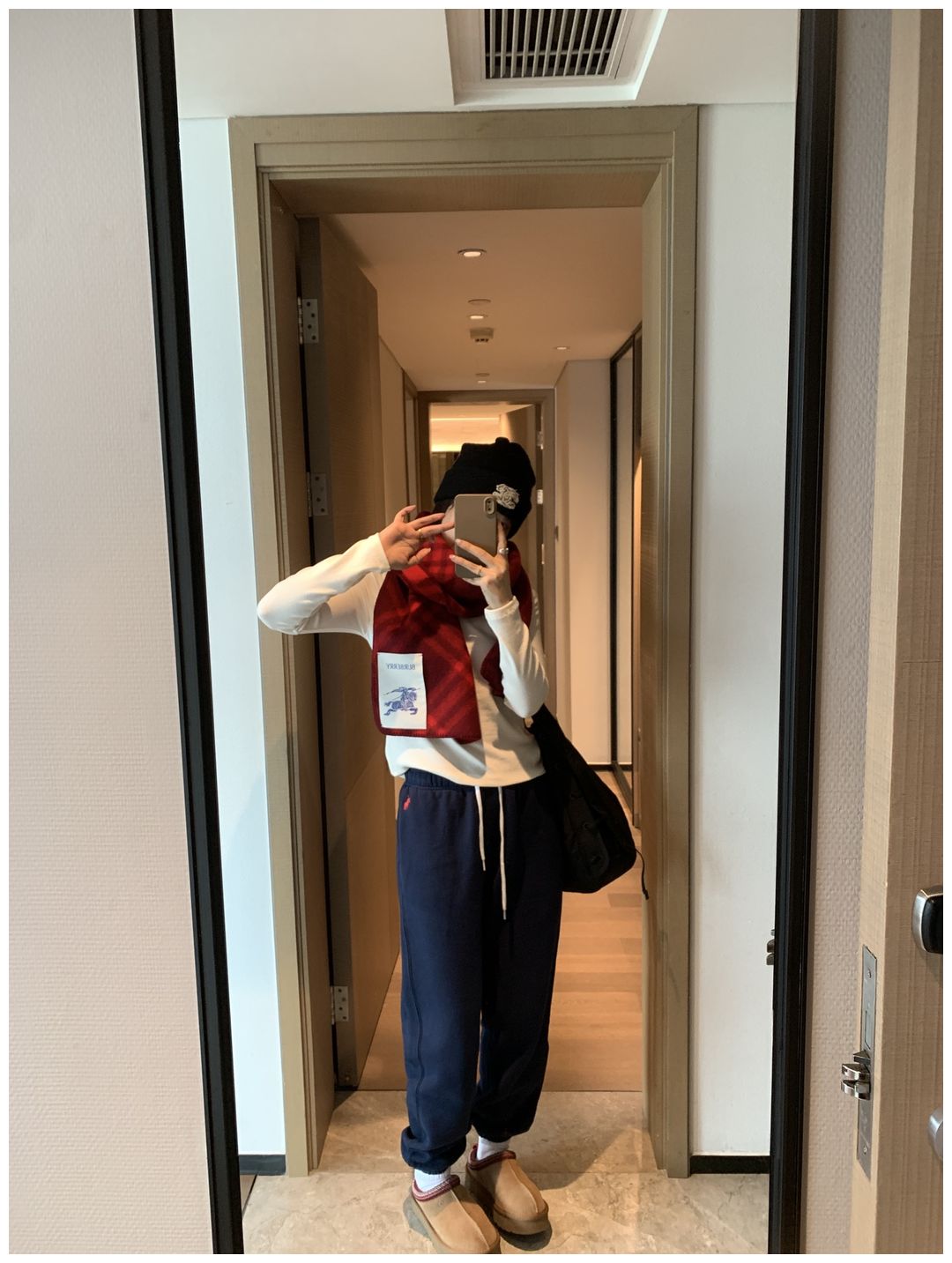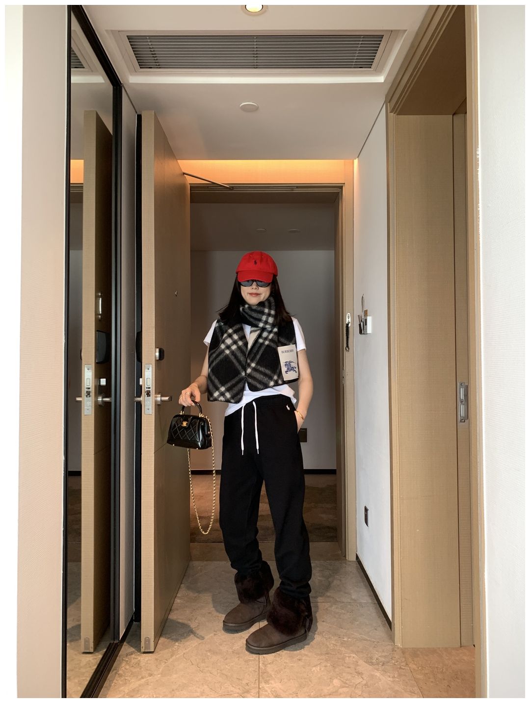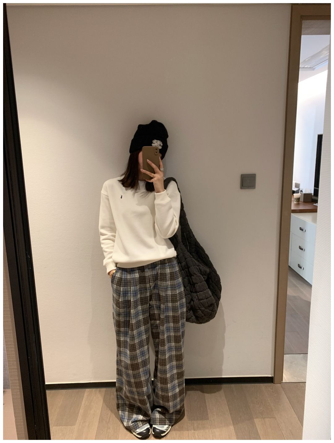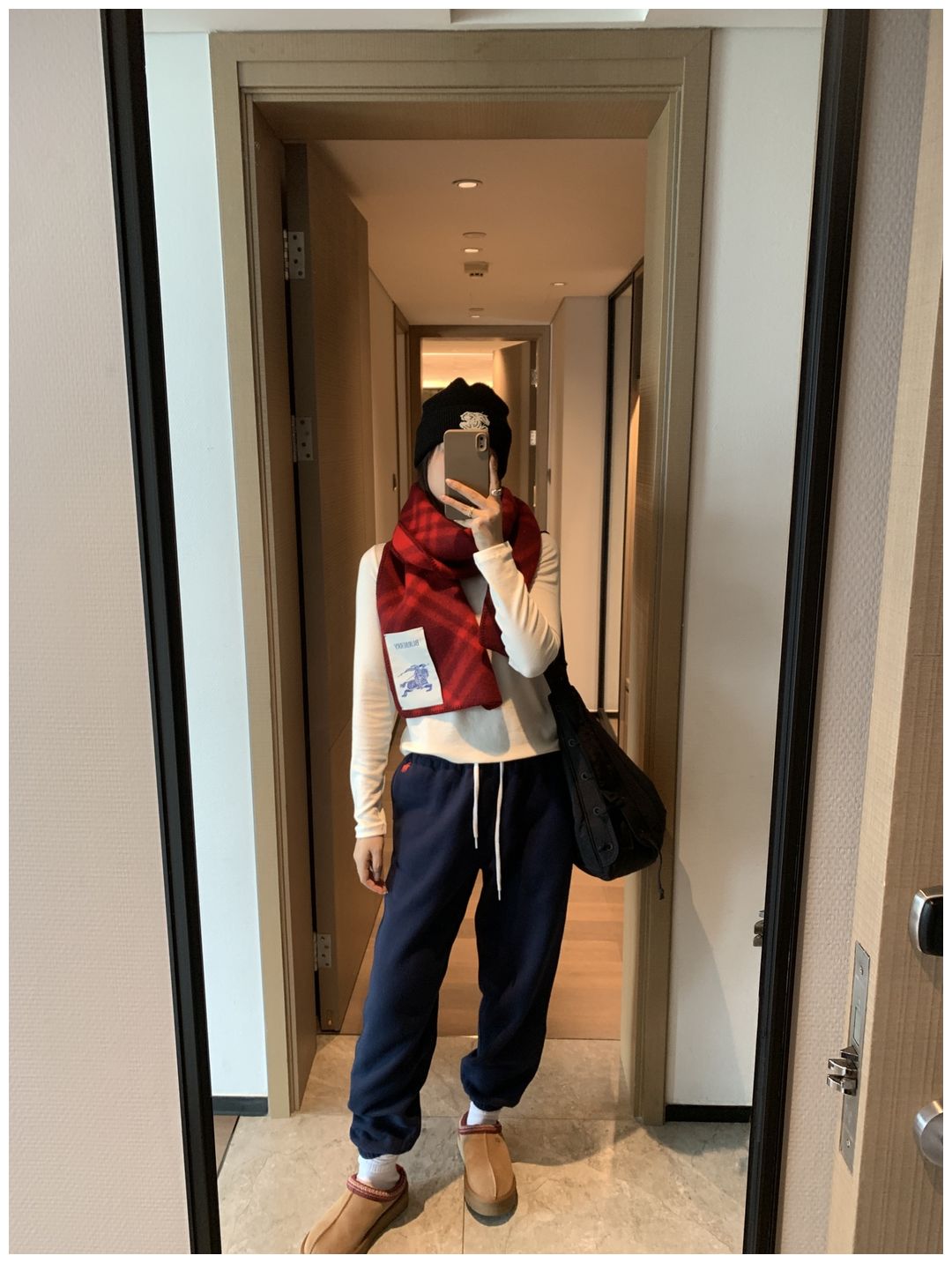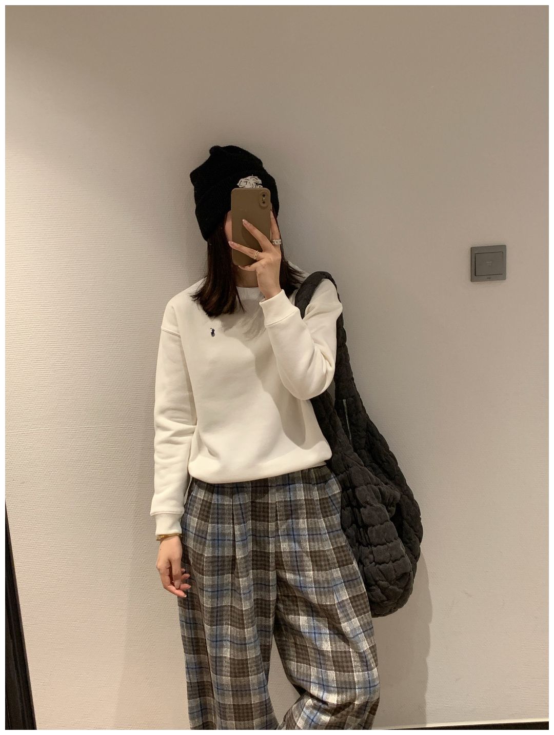 而且白色搭配格子彩色都好看 成套你们就给我搭配ugg 羽绒服