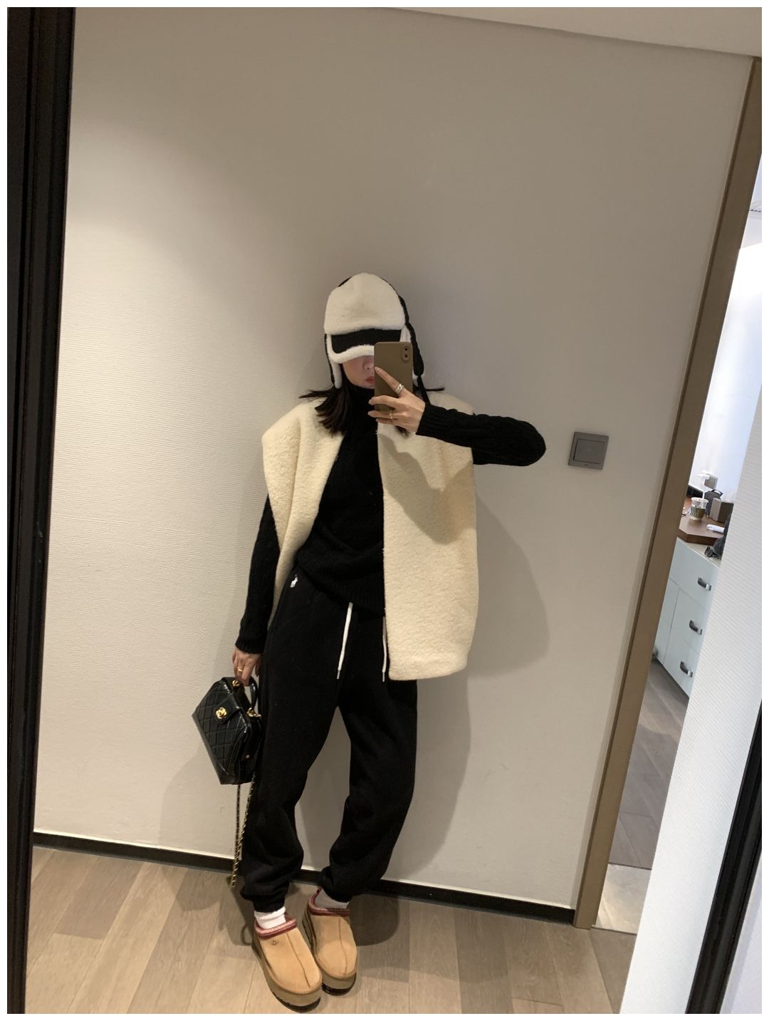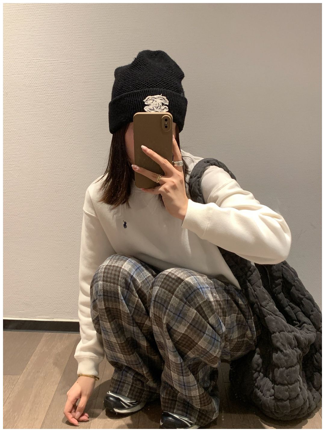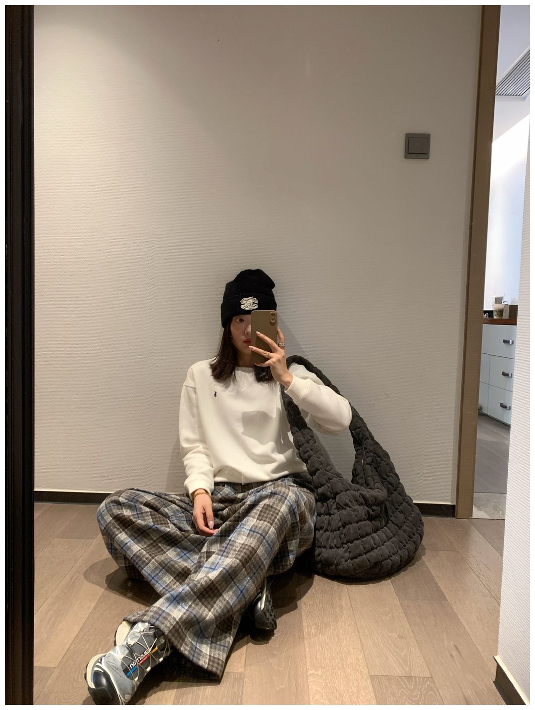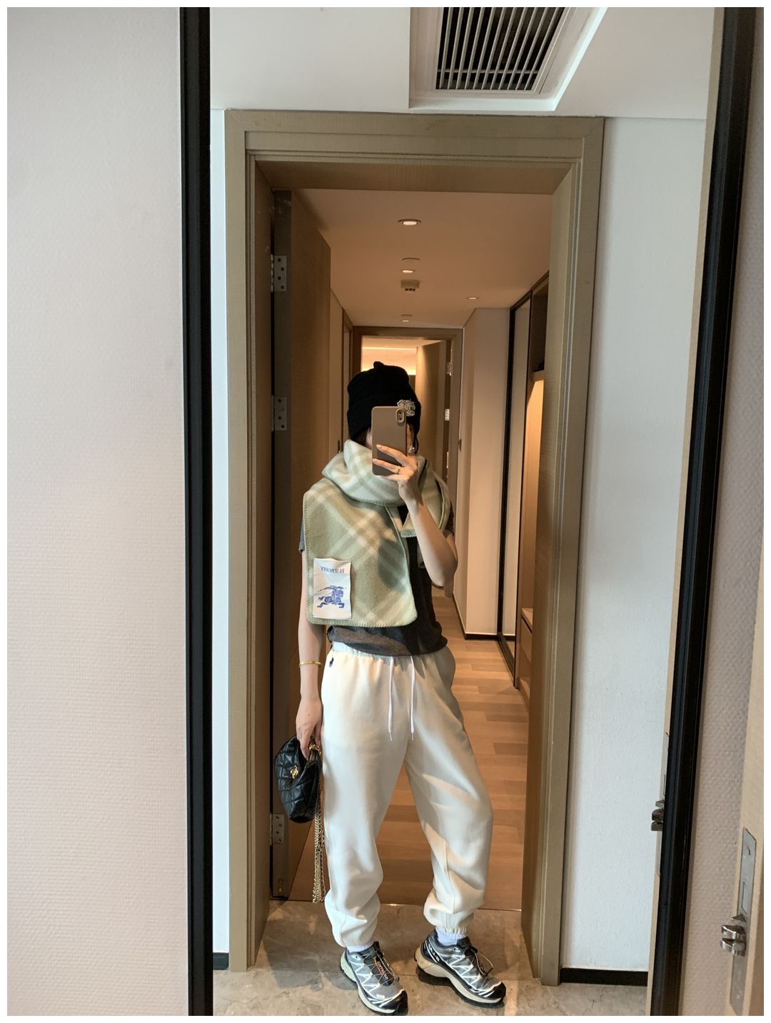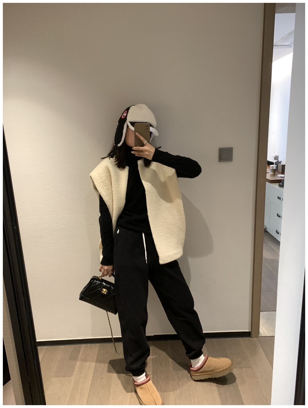 而且白色搭配格子彩色都好看 成套你们就给我搭配ugg 羽绒服