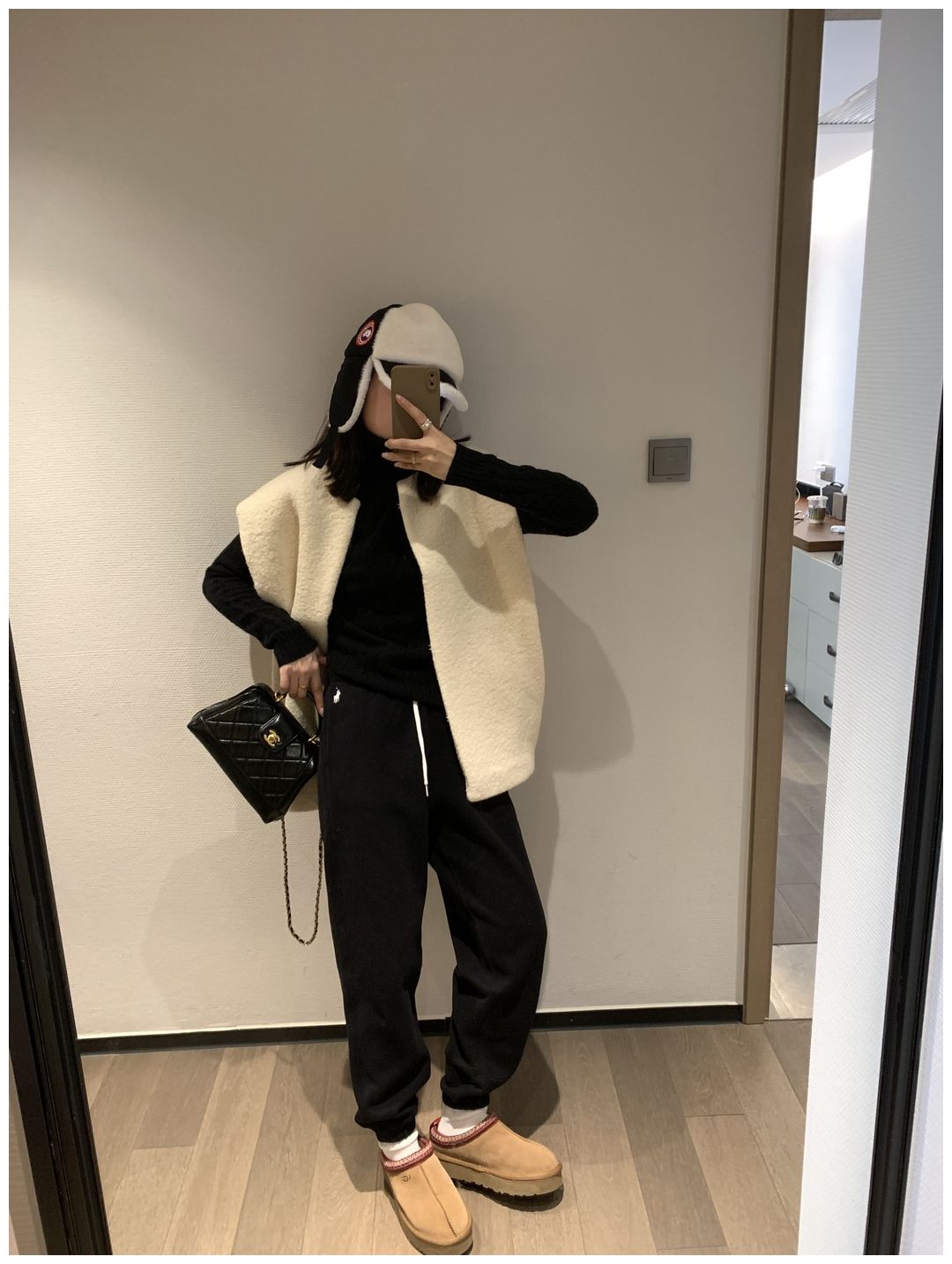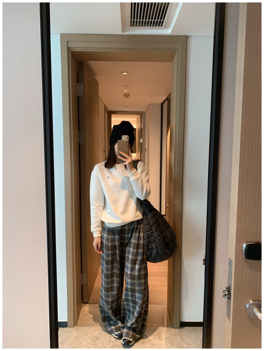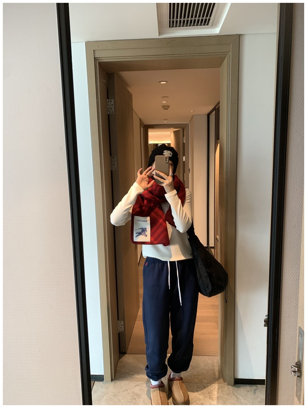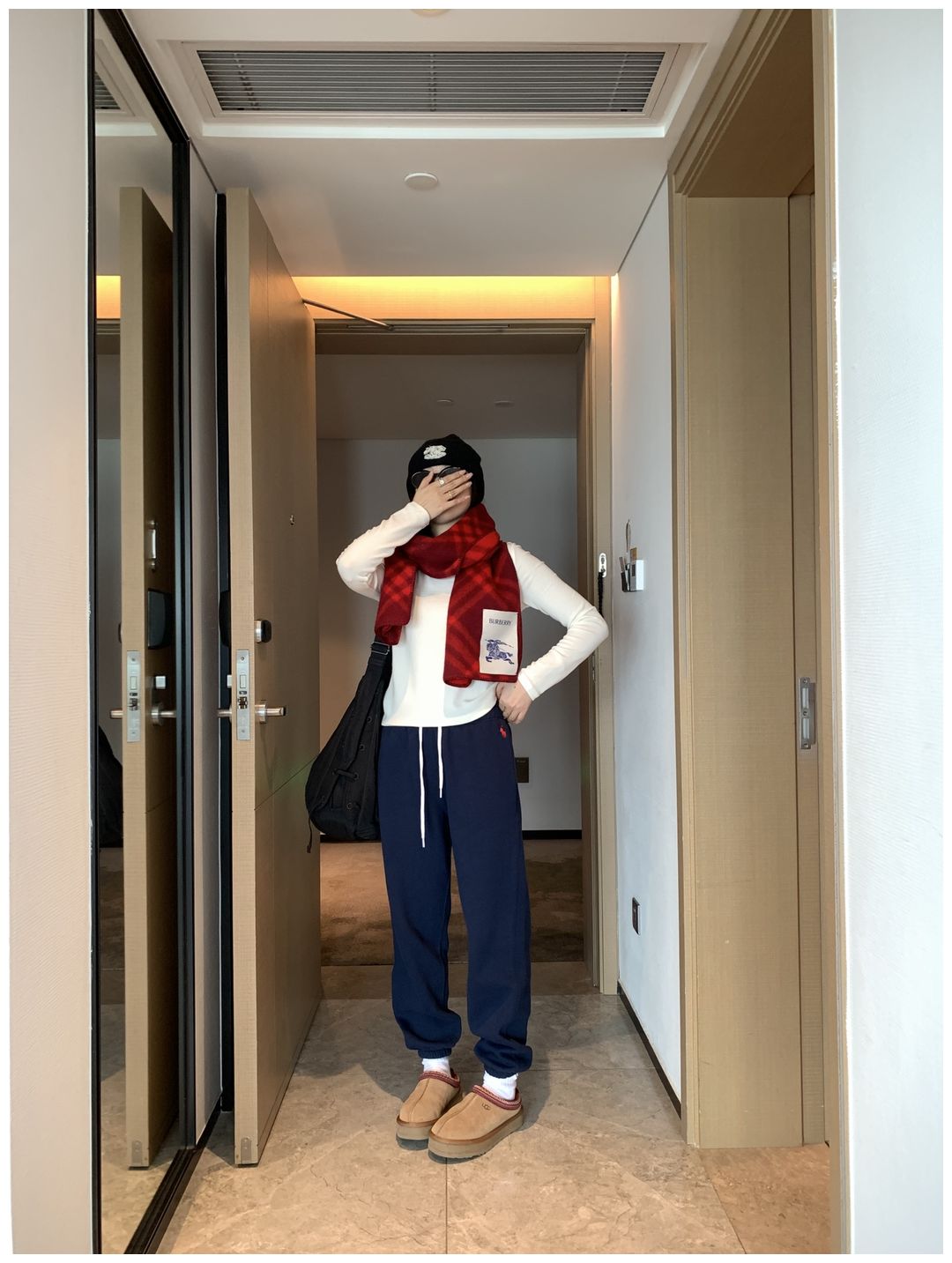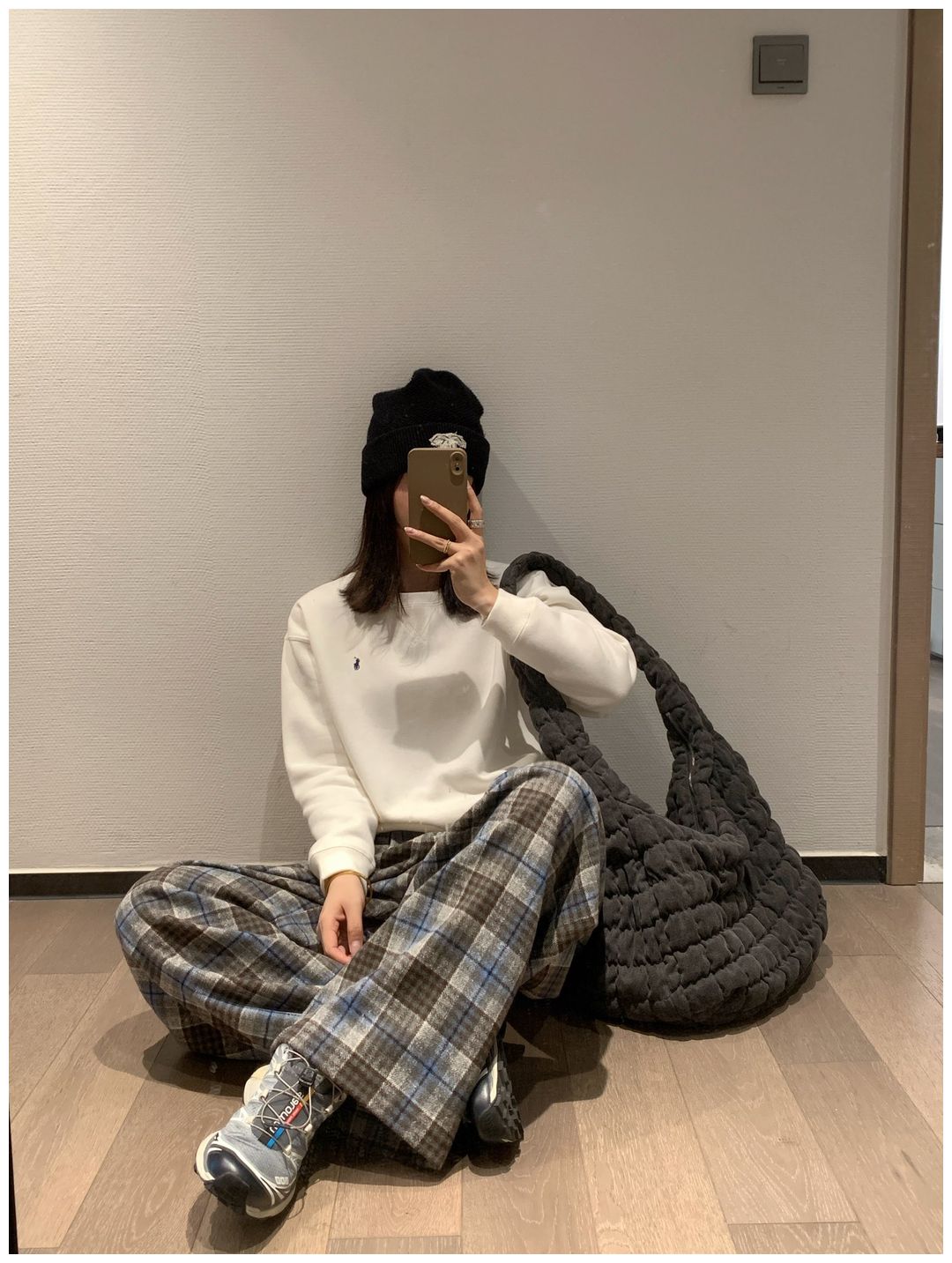 而且白色搭配格子彩色都好看 成套你们就给我搭配ugg 羽绒服