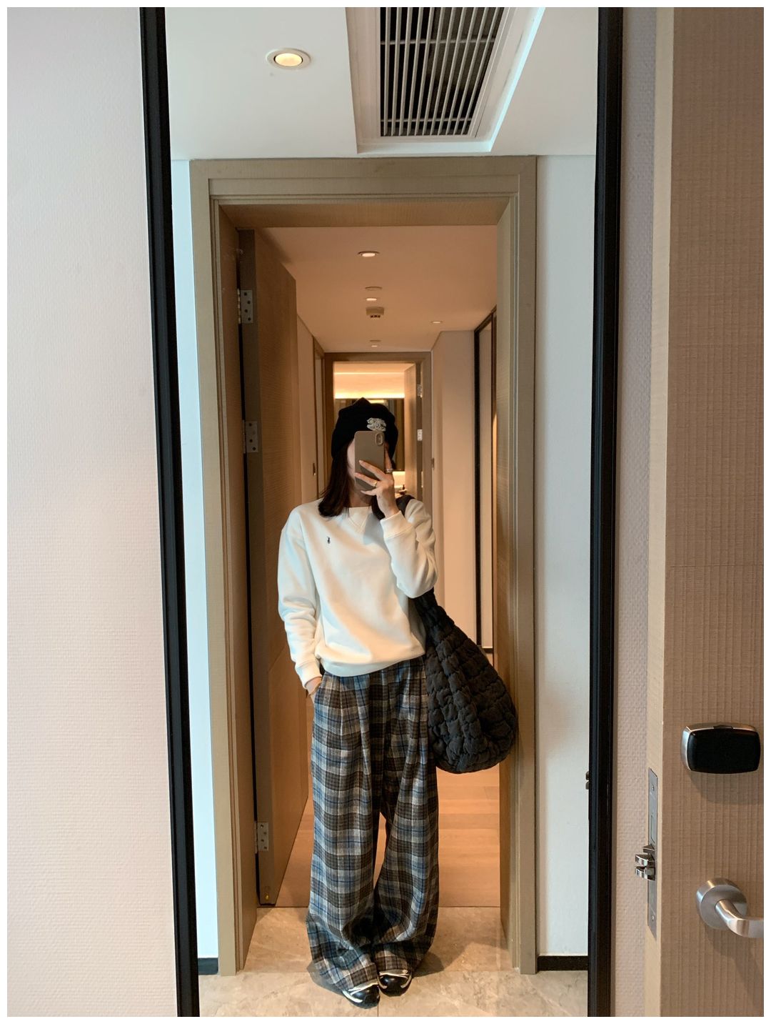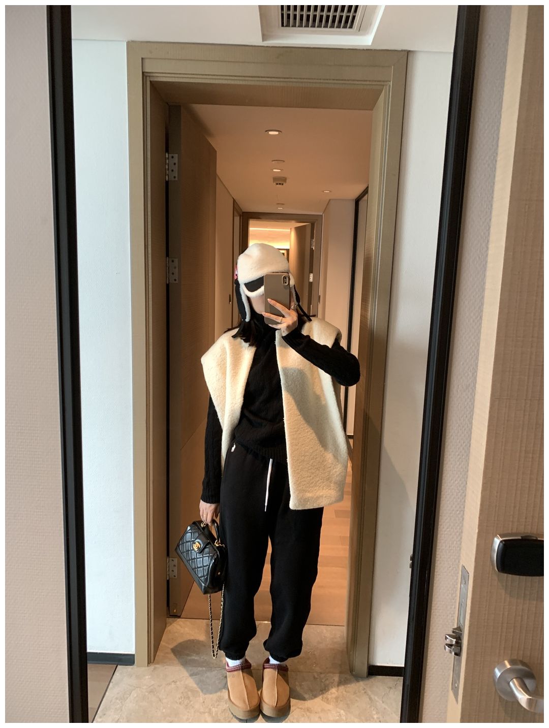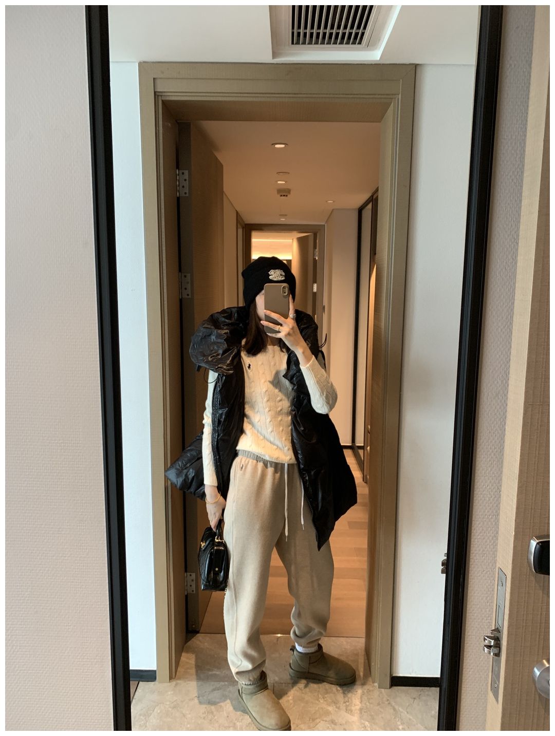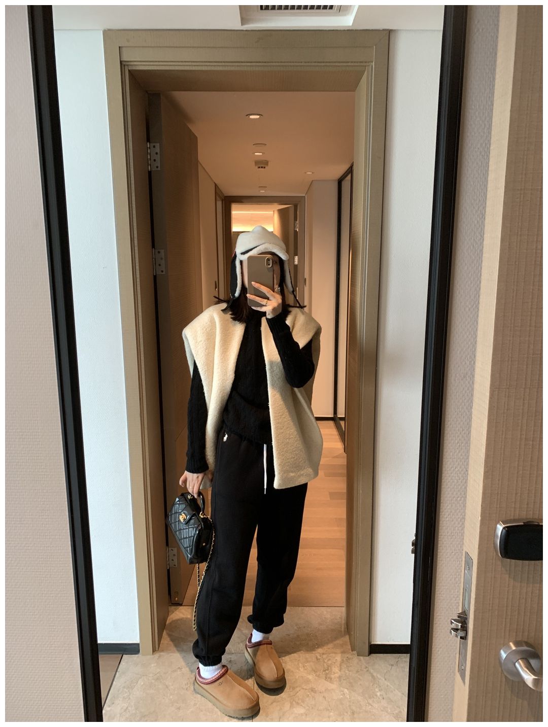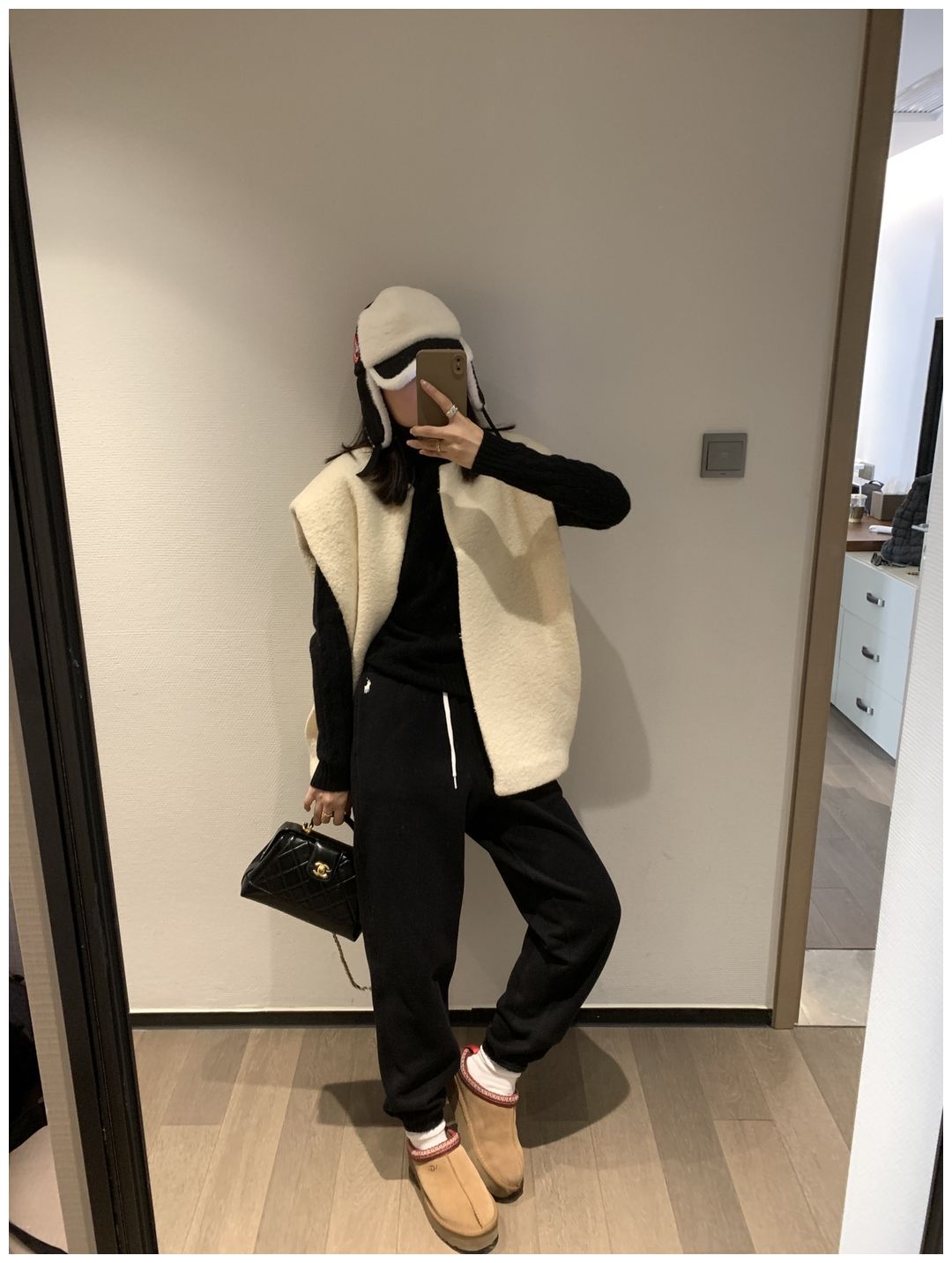 而且白色搭配格子彩色都好看 成套你们就给我搭配ugg 羽绒服