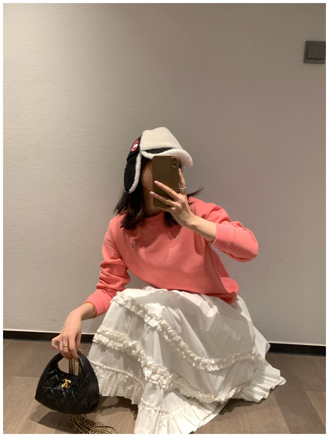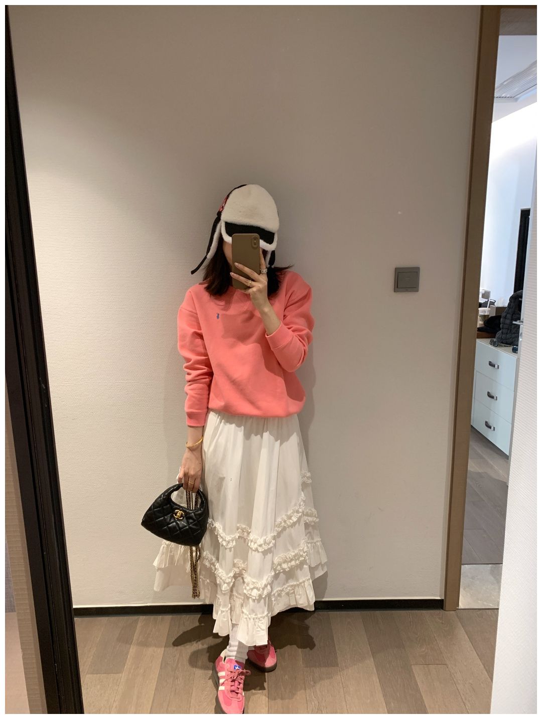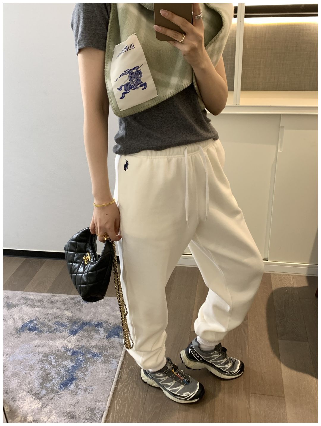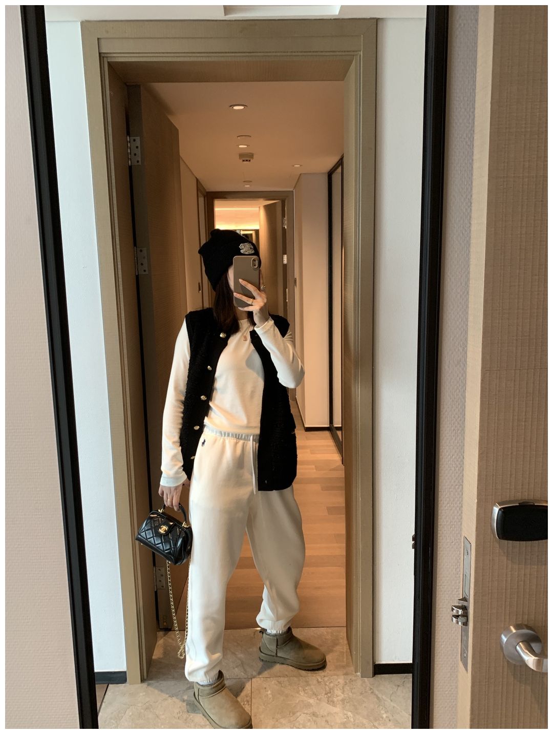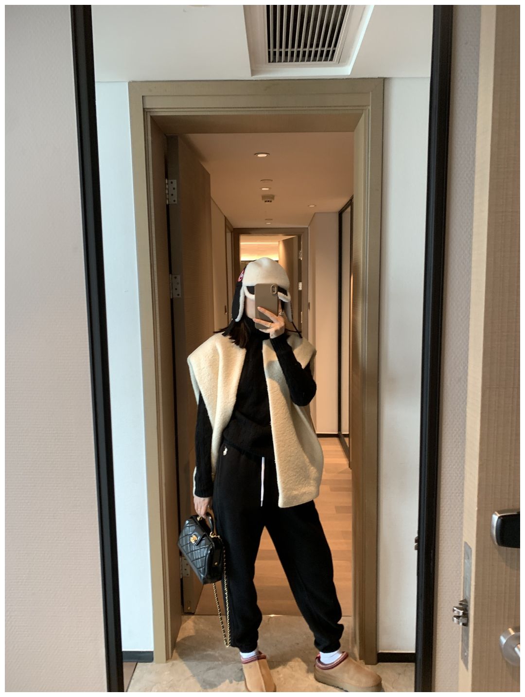 而且白色搭配格子彩色都好看 成套你们就给我搭配ugg 羽绒服