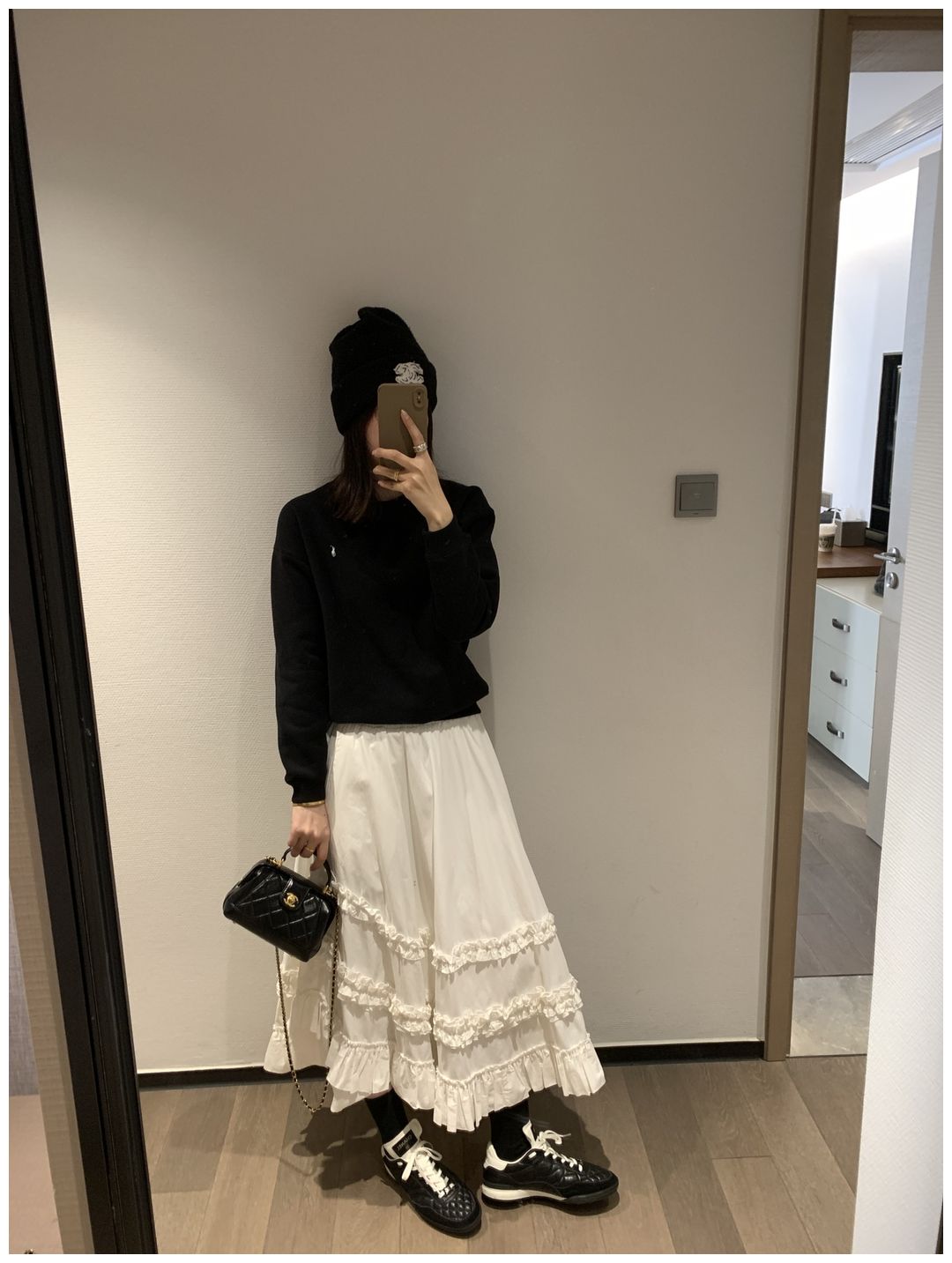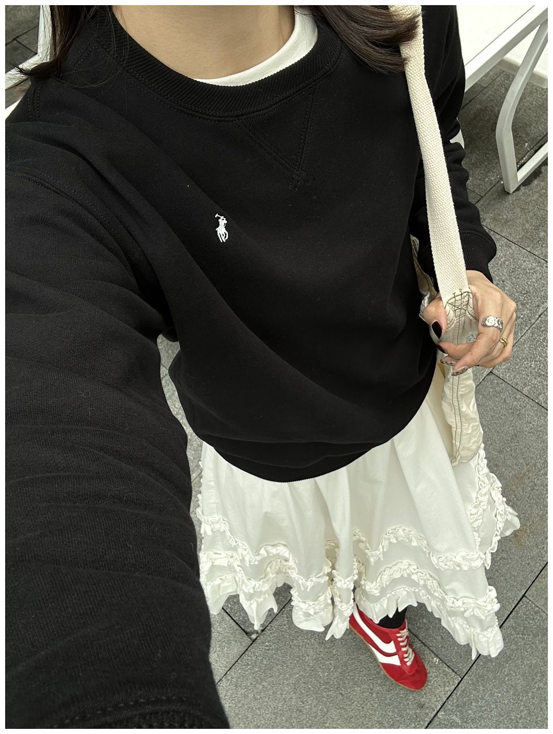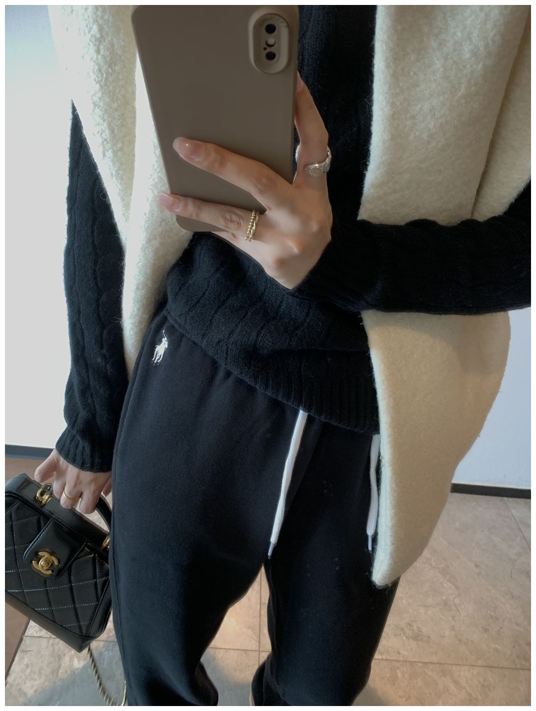 2️⃣黑色 就是很基础的配色 显瘦且百搭 这件拉夫格外出彩 撞白色设计