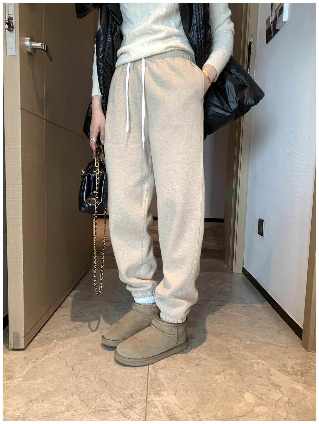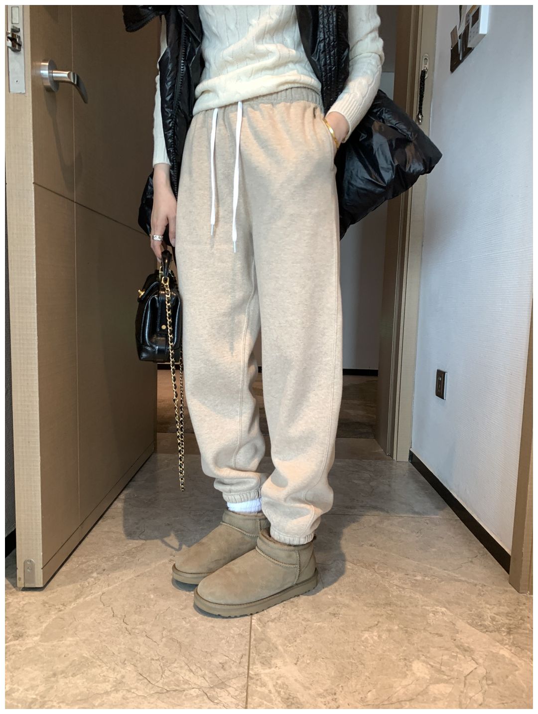 自己看这条裤子加绒卫裤上身都这么显瘦!!