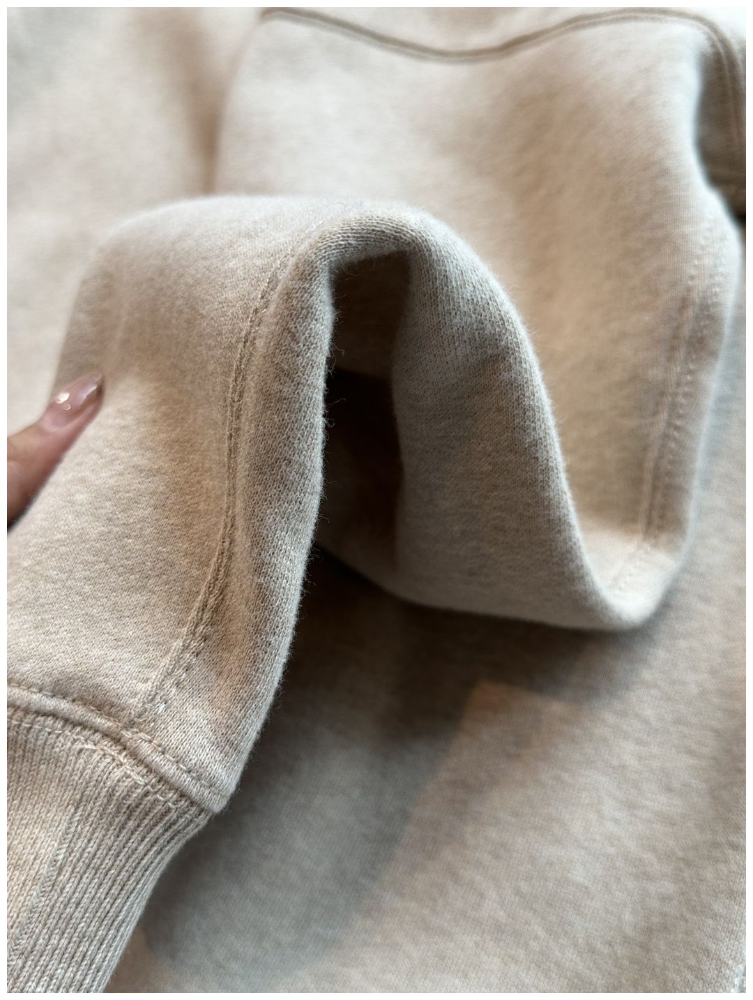 我们拿到手里正面是有肌理效果的 一层毛yu感 也是特别的碳素磨毛处理
