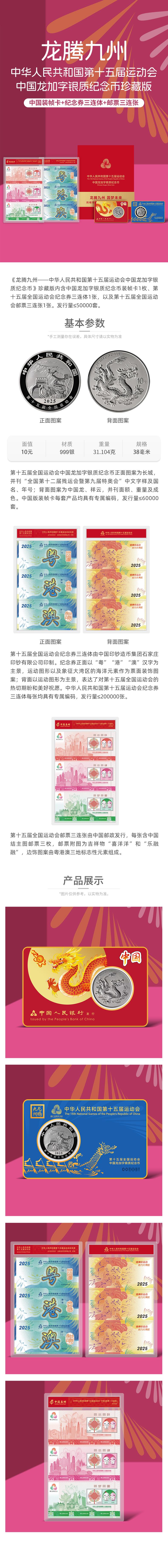 【一币三券】中国版 2025年中国龙加字银币+第十五届全运会粤港澳纪念券
