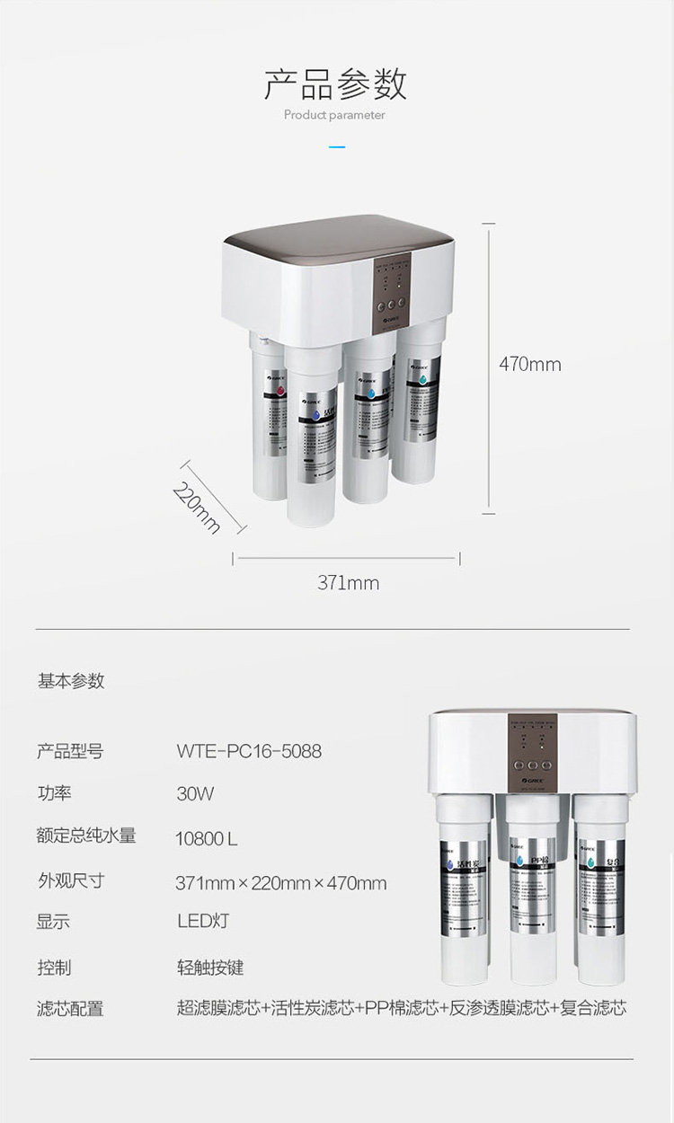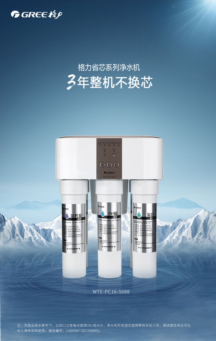 格力(GREE) 格力净水器 家用直饮厨房自来水过滤器净水机 WTE-PC16-5088