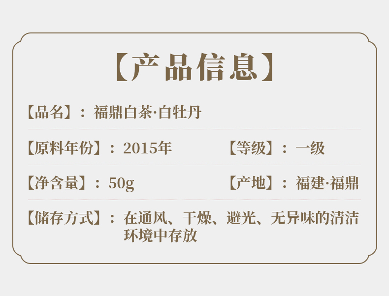 鼎茗荟丨蜜香牡丹 高山白牡丹 福鼎白茶 一级 2015年 50g 磻溪产地