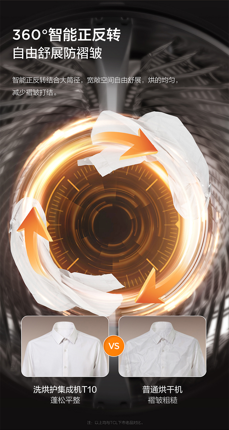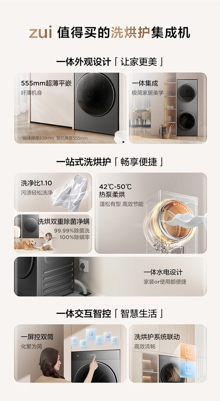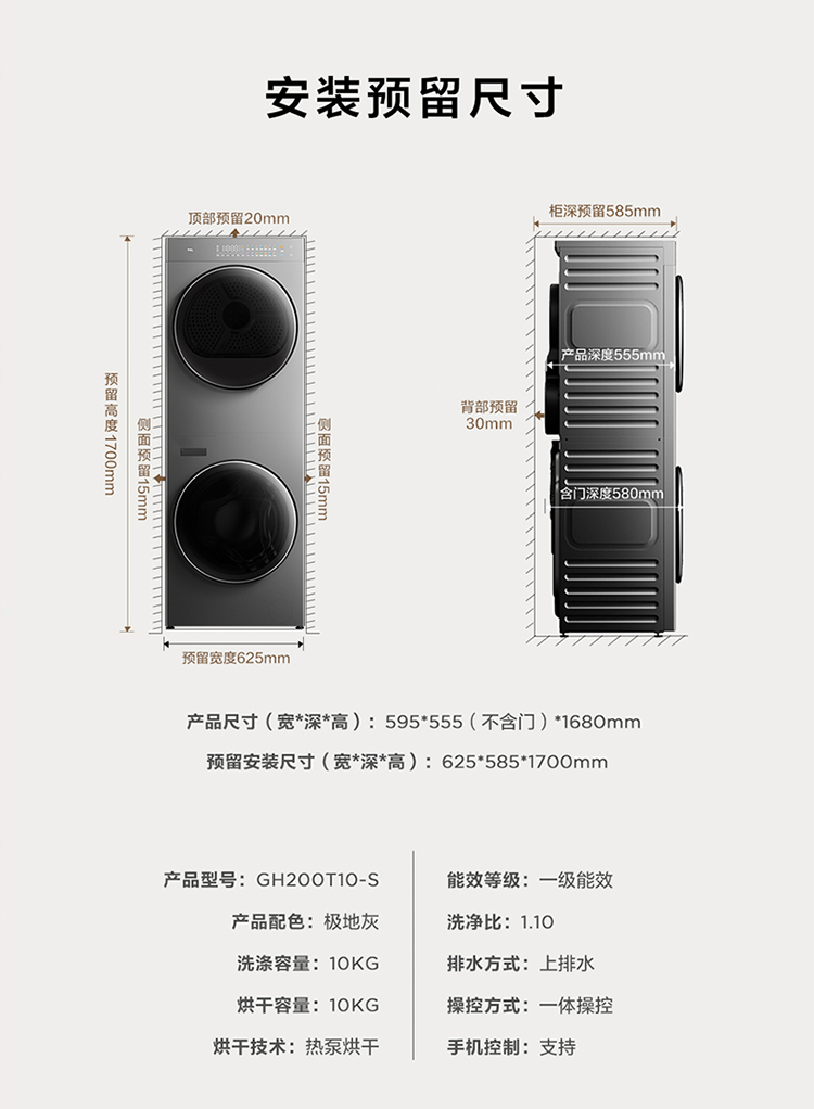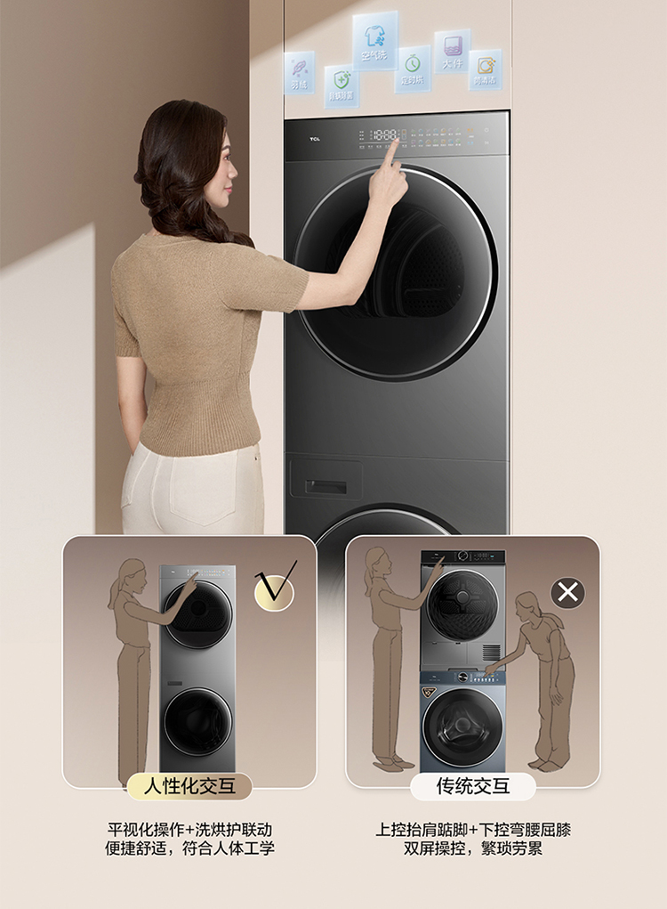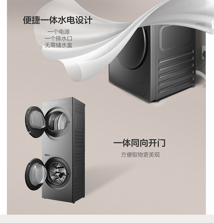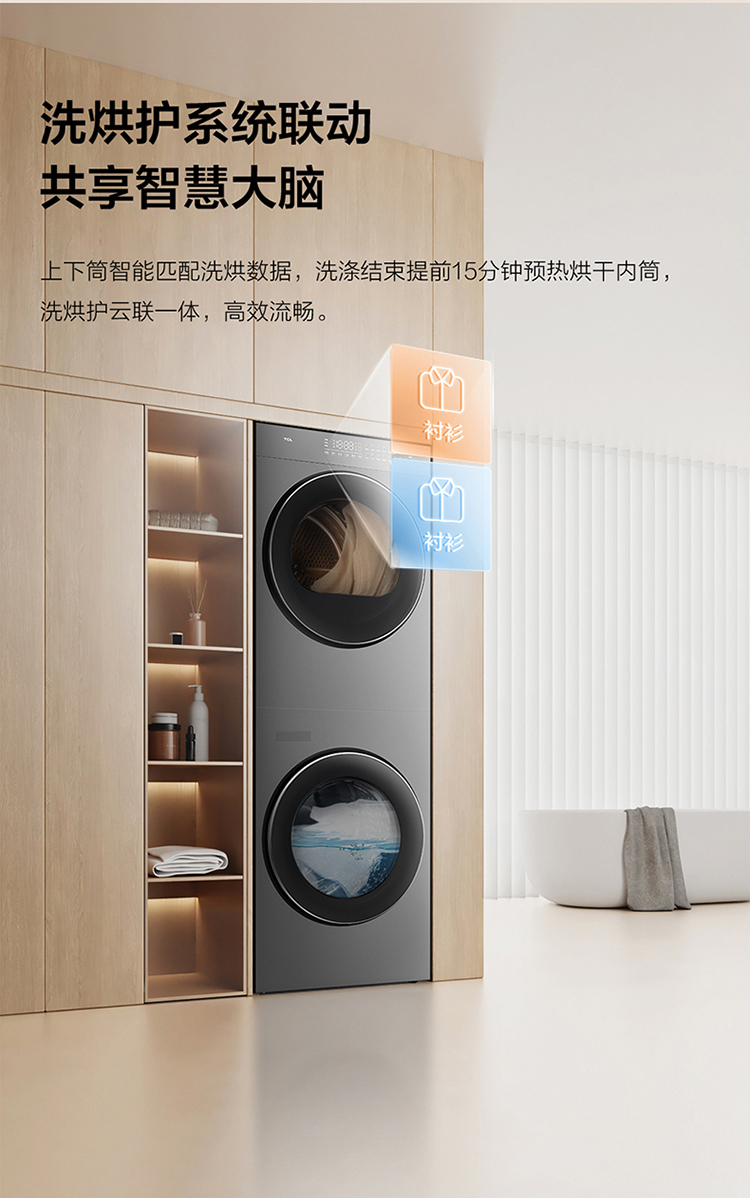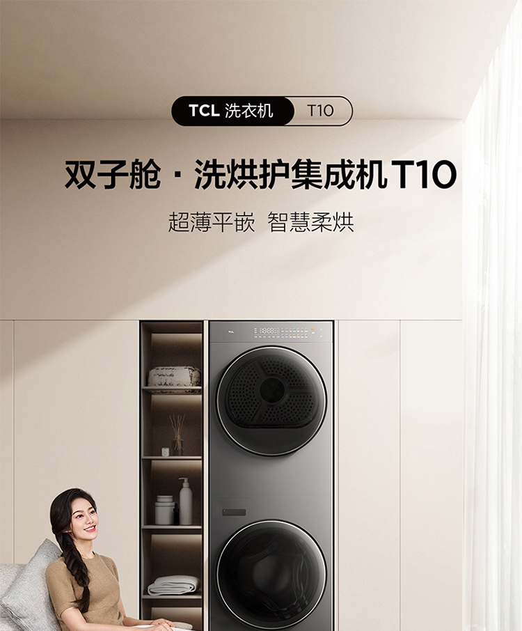 TCL双子舱·洗烘护集成机T10 10公斤滚筒+热泵烘干超薄洗烘套装正反转 GH200T10-S