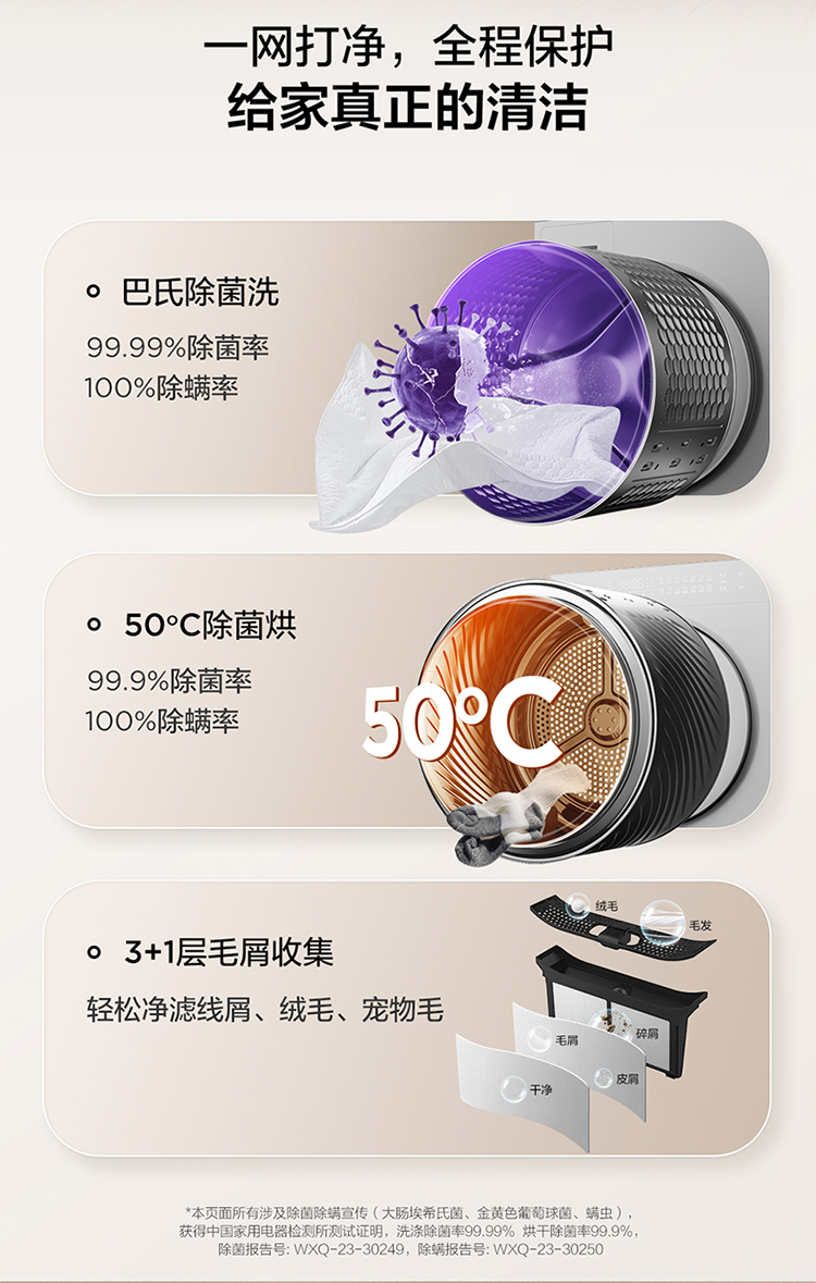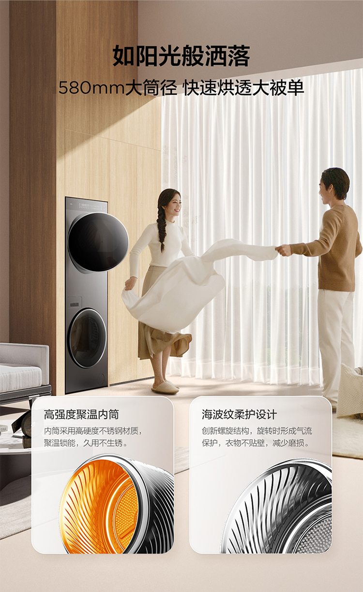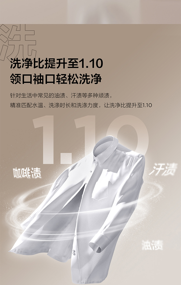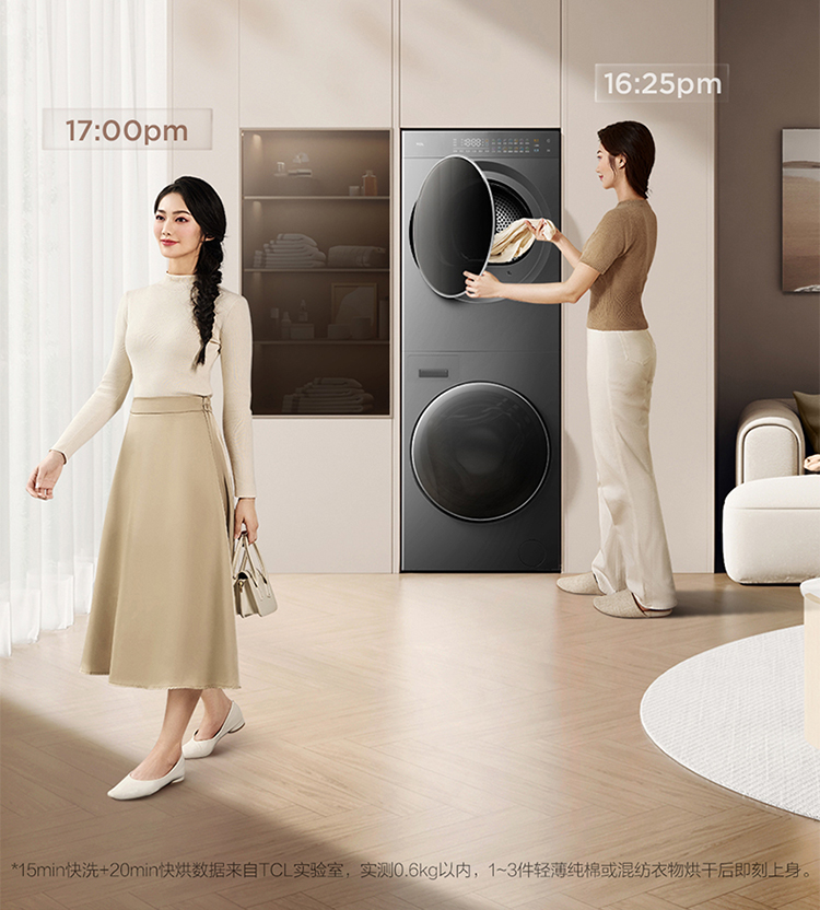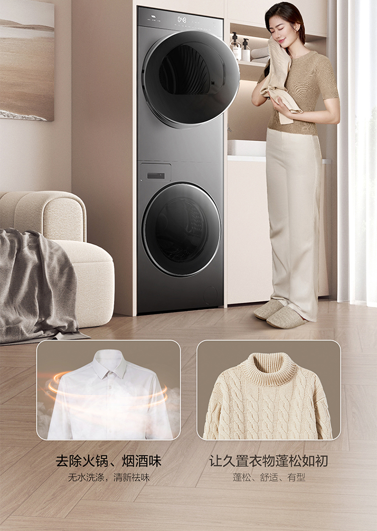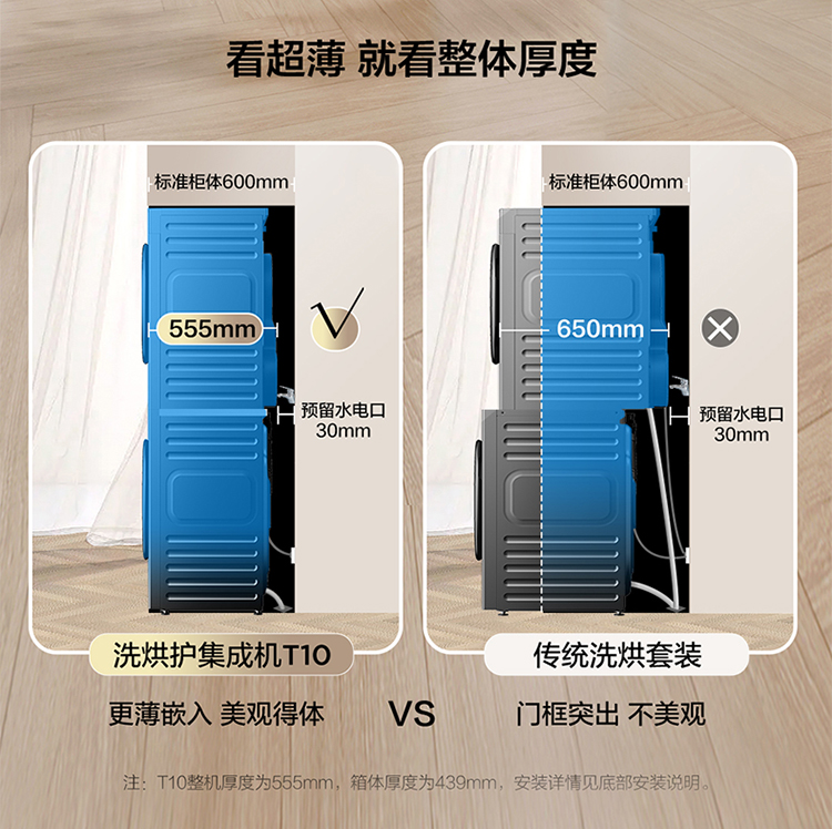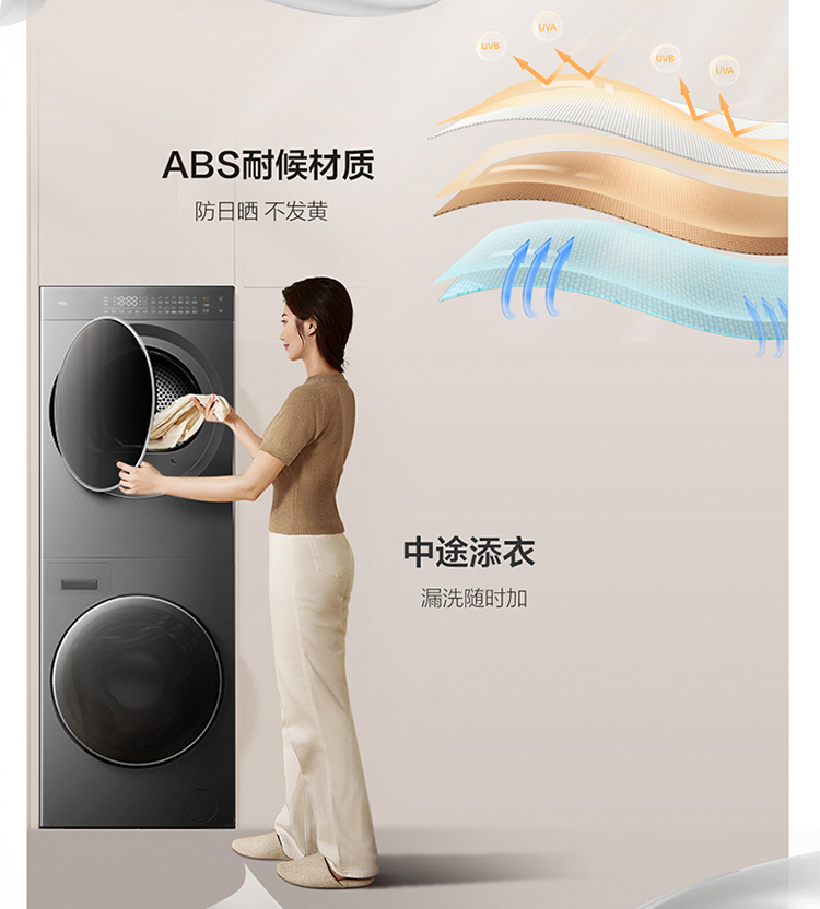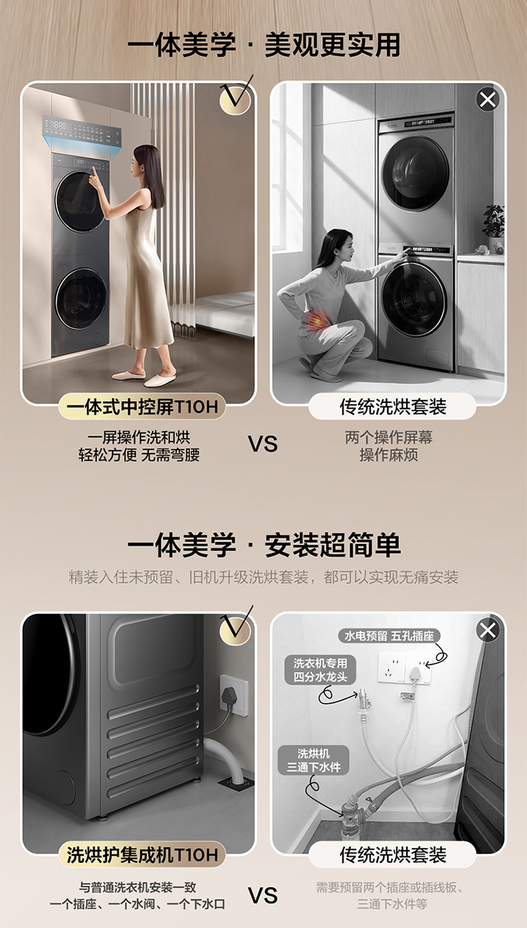 TCL双子舱·洗烘护集成机T10 10公斤滚筒+热泵烘干超薄洗烘套装正反转 GH200T10-S