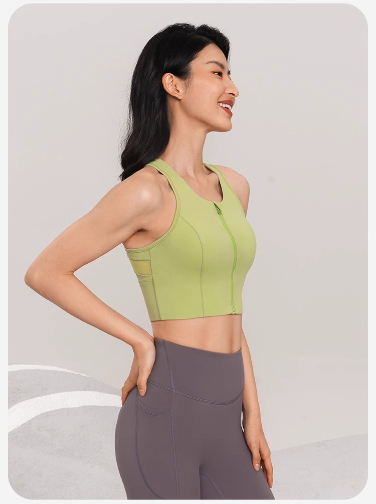 跃牌(呗咪纷纷系列)前拉链防震运动内衣固定胸垫美背透气瑜伽背心WX2315-1