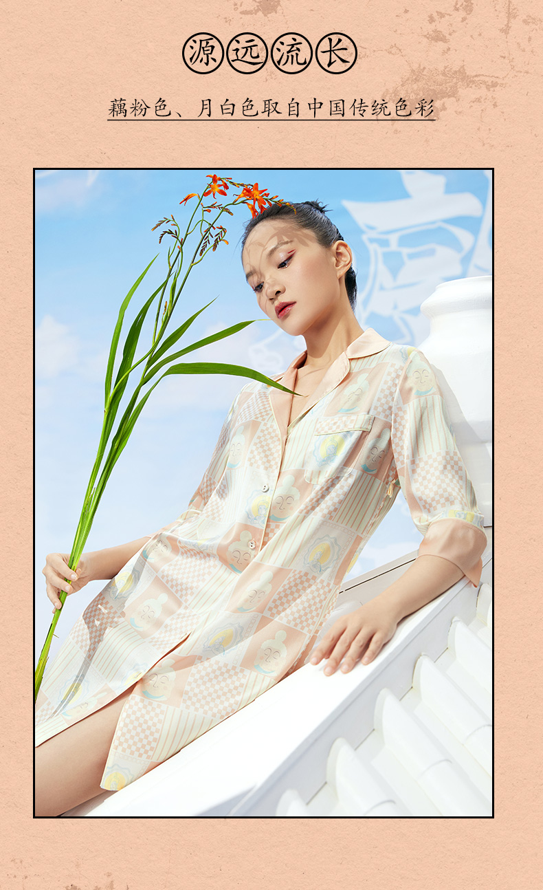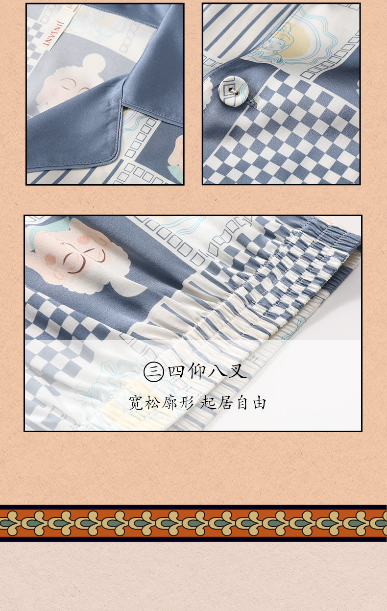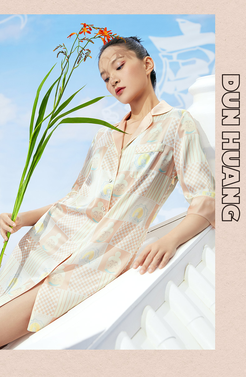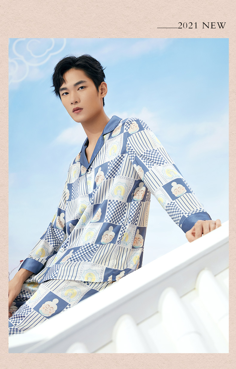 金三塔敦煌联名100%桑蚕丝印花情侣家居服男士真丝睡衣套装女士睡裙 YSFCA317 YSMCA202