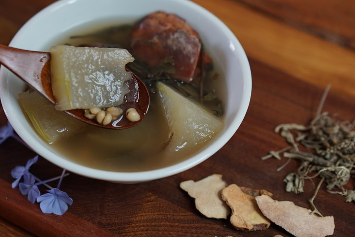 生薏仁30g(寒热夹杂的人可以用炒薏仁),冬瓜500g,瘦肉150-200g。