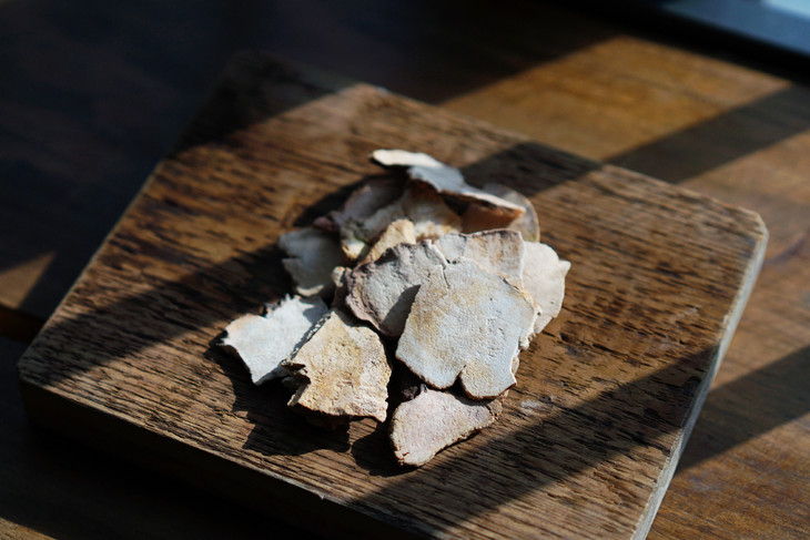 把它切片,无硫熏蒸,凑鼻子闻有淡淡的根茎香气。