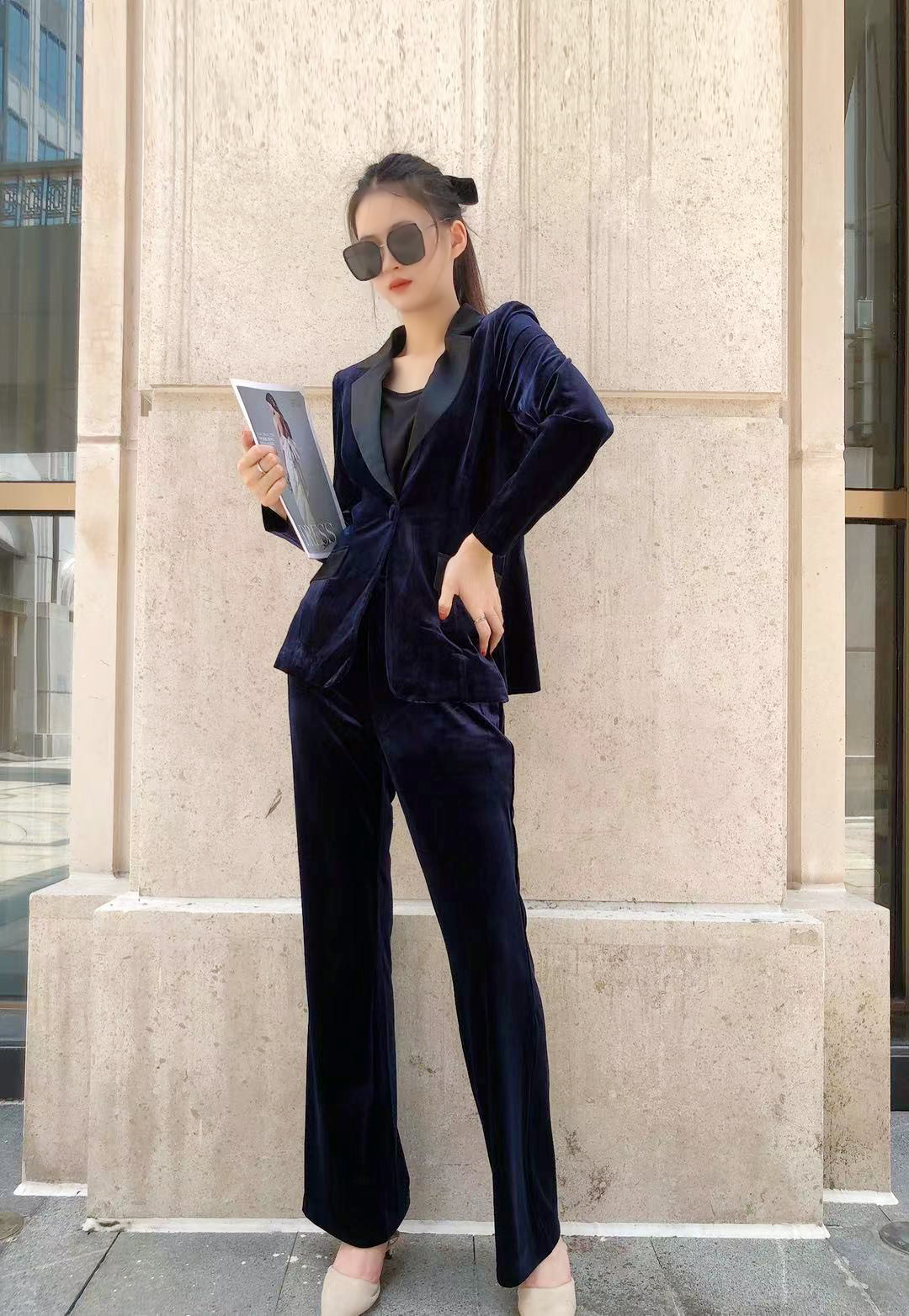 炸韩国丝绒套装!开场即巅峰,穿搭封神,遮肉显腿长,轻复古的时尚感一下子就撞心巴上了,谁穿谁上头!