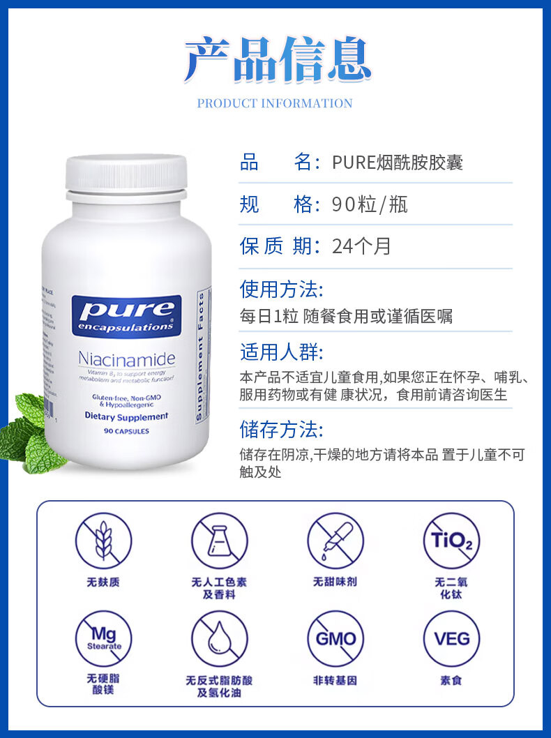 Pure烟酰胺维生素B3胶囊90粒