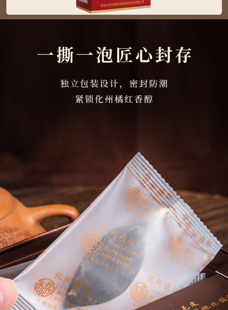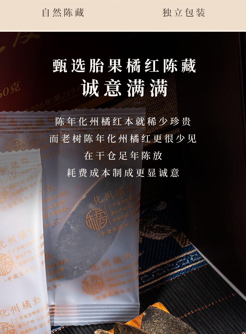 热卖中!【精选化州地理标志产品 20 年老树橘红皮的礞石金绒毛胎果皮】加橘宝自然陈藏喉咙干痒不舒服 咳化痰 温和清热 散寒燥湿健脾消食等独立包装携带方便煲汤泡茶孕妇老少皆可
