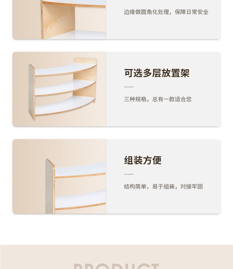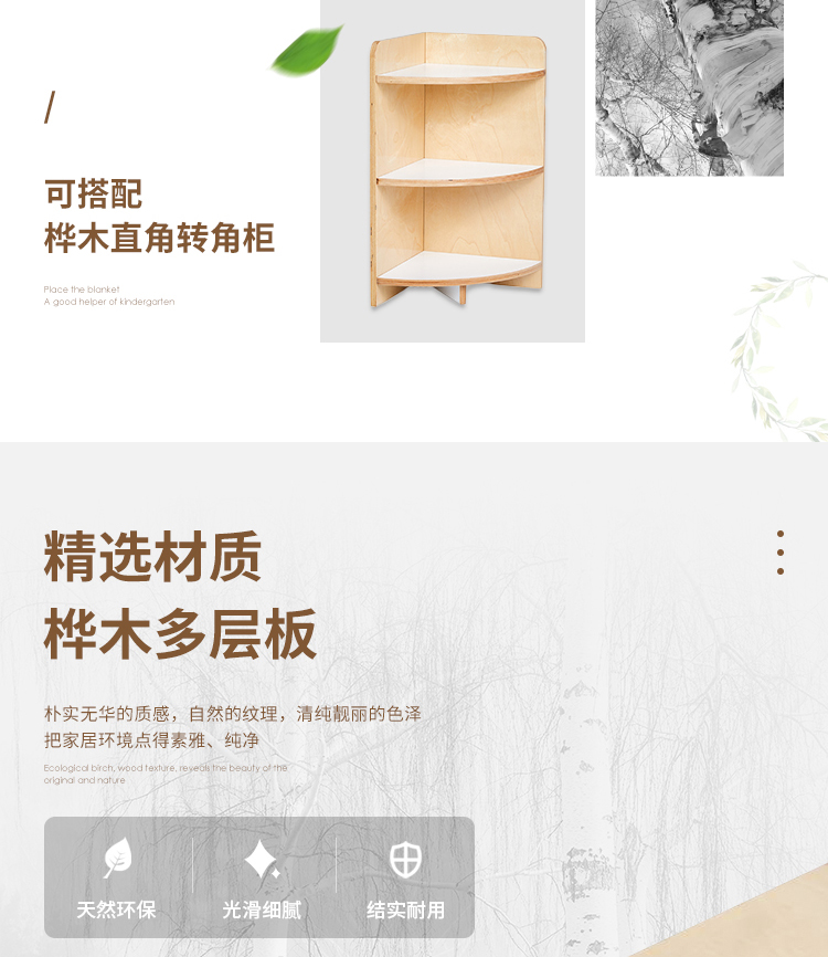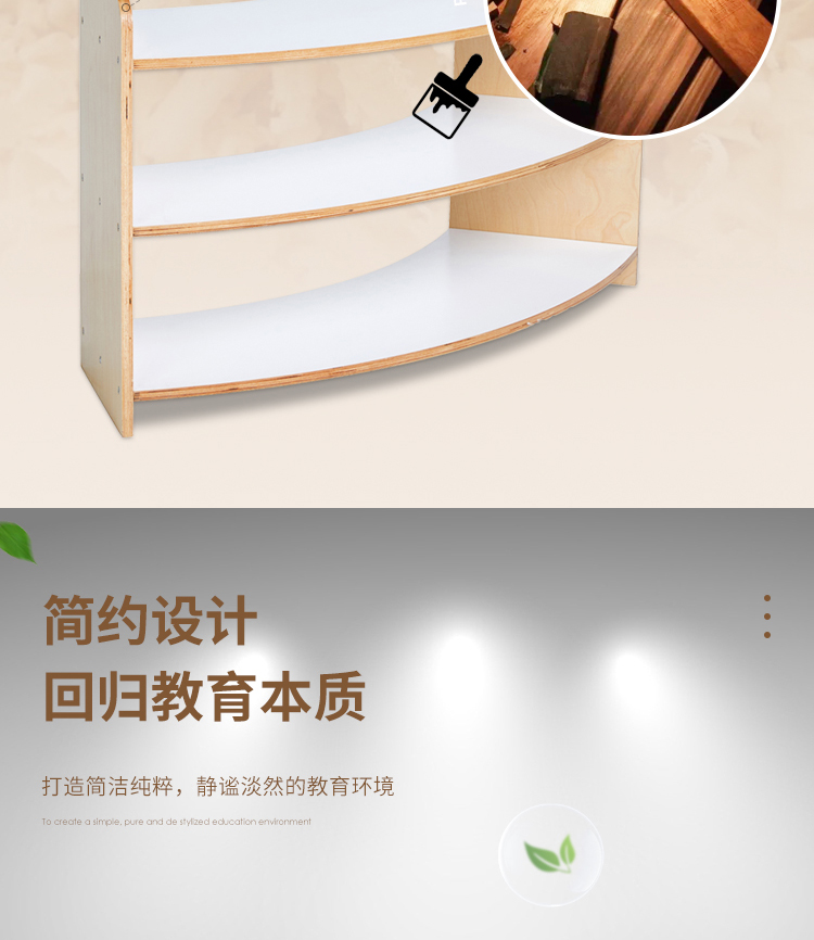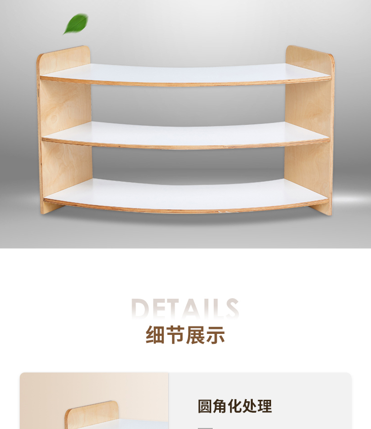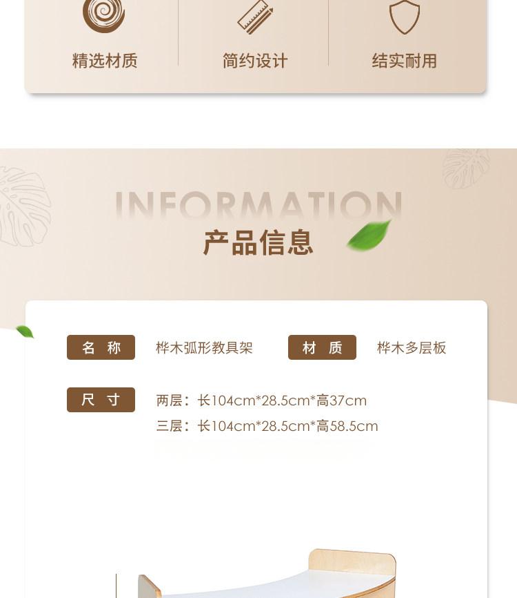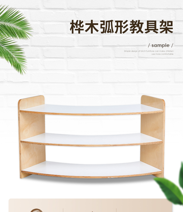 幼儿园家具桦木实木教具柜架 蒙氏教具 桦木弧形教具架
