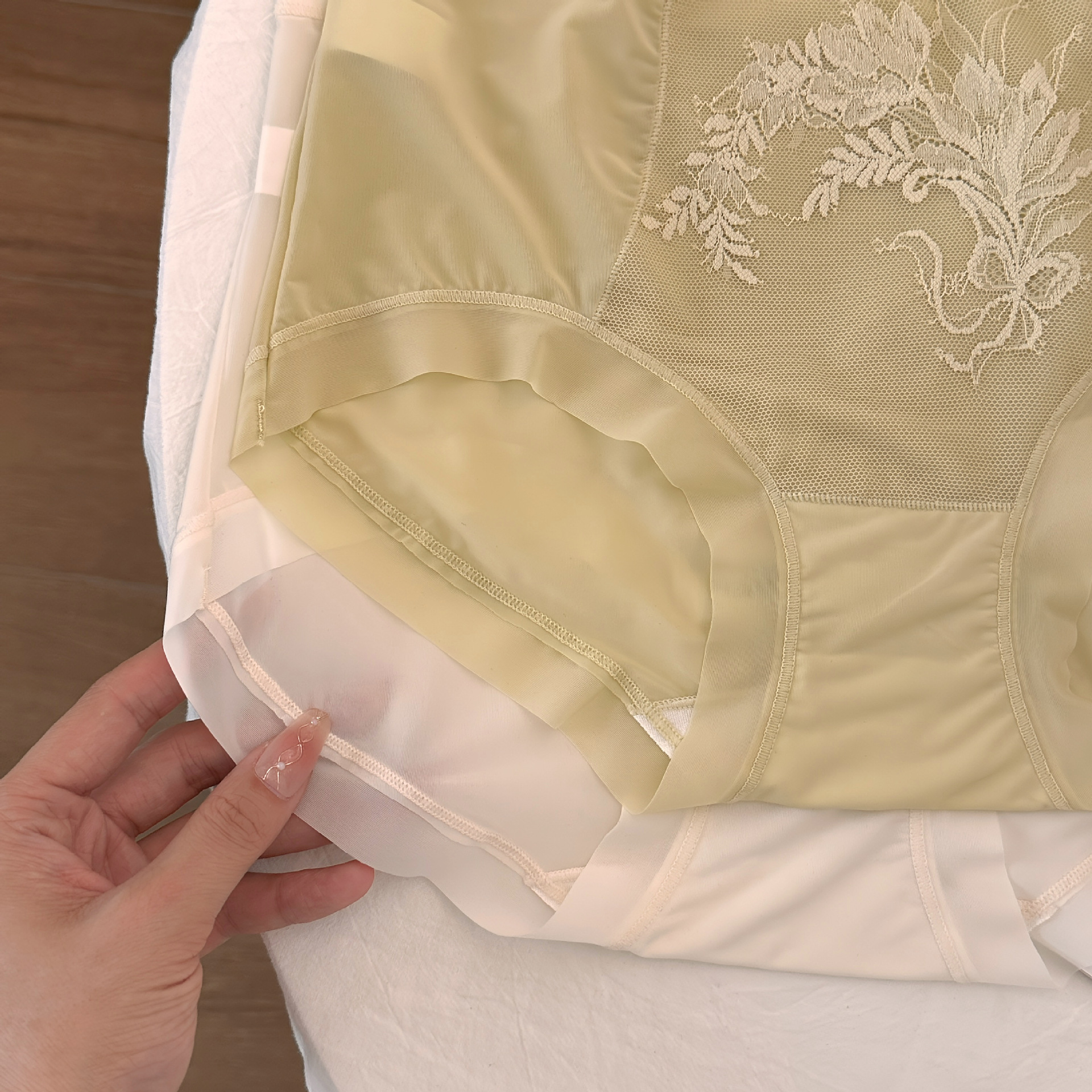 【守护私密健康❗️轻奢冰丝面膜裤】花卉蕾丝拼接“精致叉减龄” 舒适高腰零東缚感!触感丝滑冰凉,夏季穿着不闷热黏腻,蚕丝裆柔软高腰女冰丝三角裤速干L