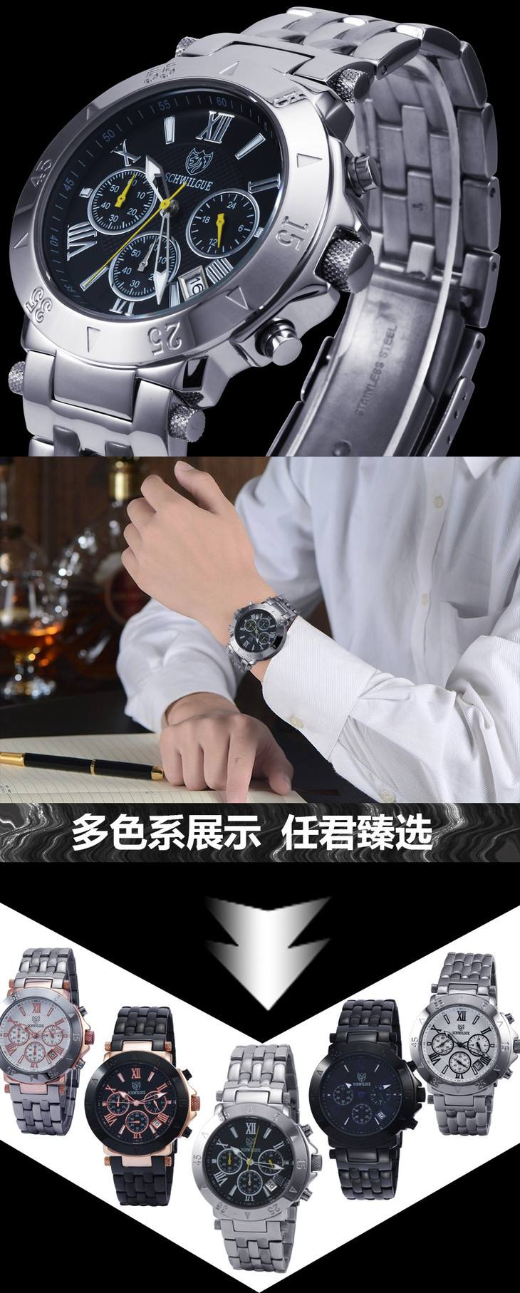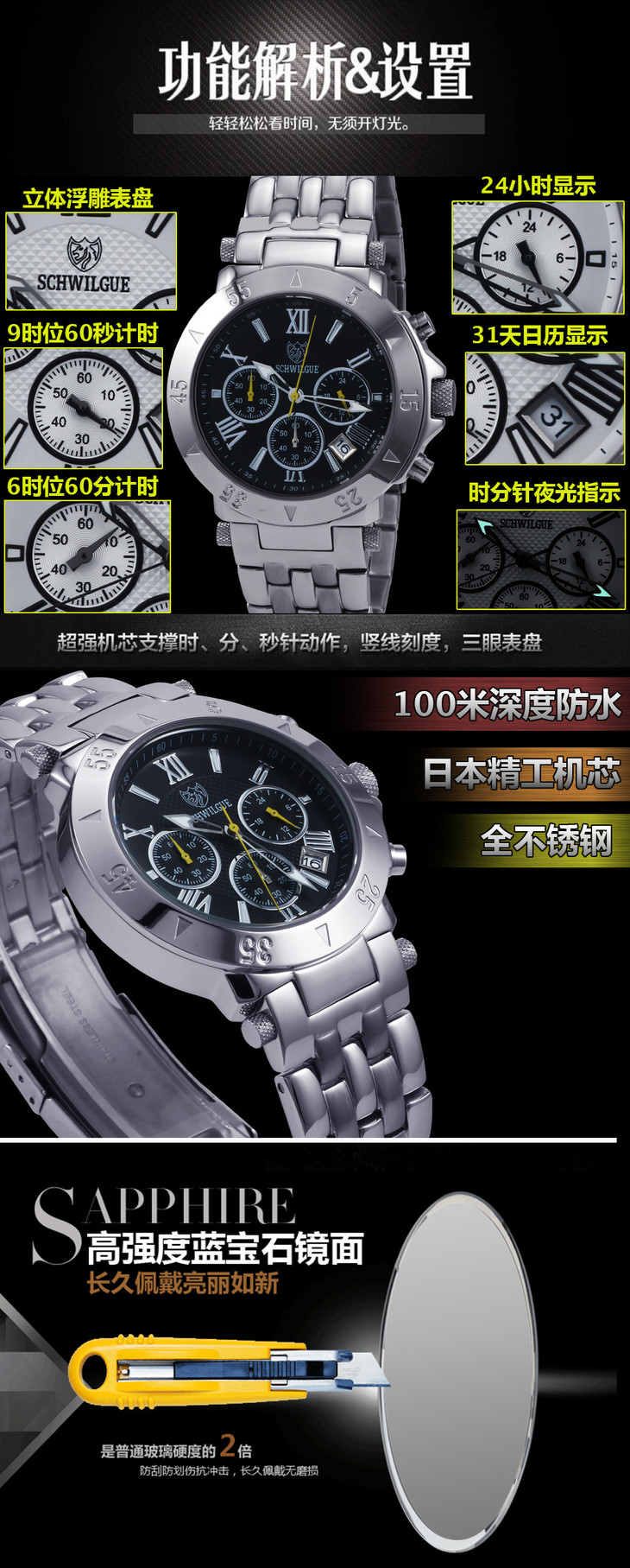 (手表)。 蓝宝石手表 黑色表盘罗马字三眼六针机芯