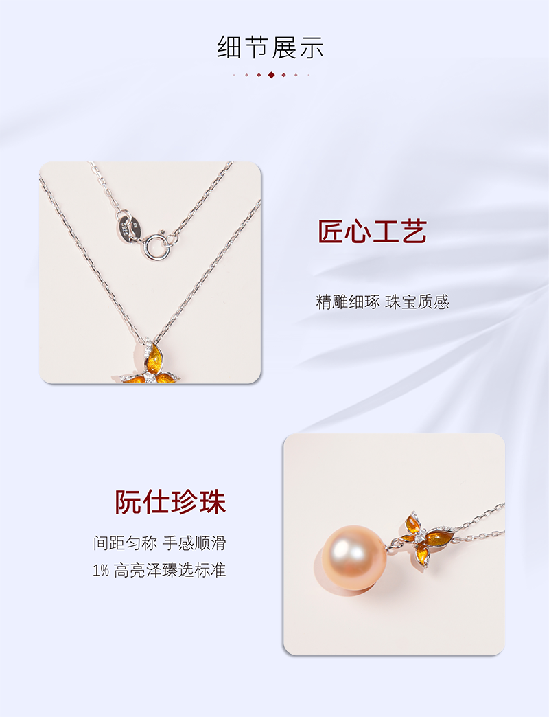 阮仕落叶蝶系列 S925银淡水珍珠链牌 11-12mm NS24093LYDD