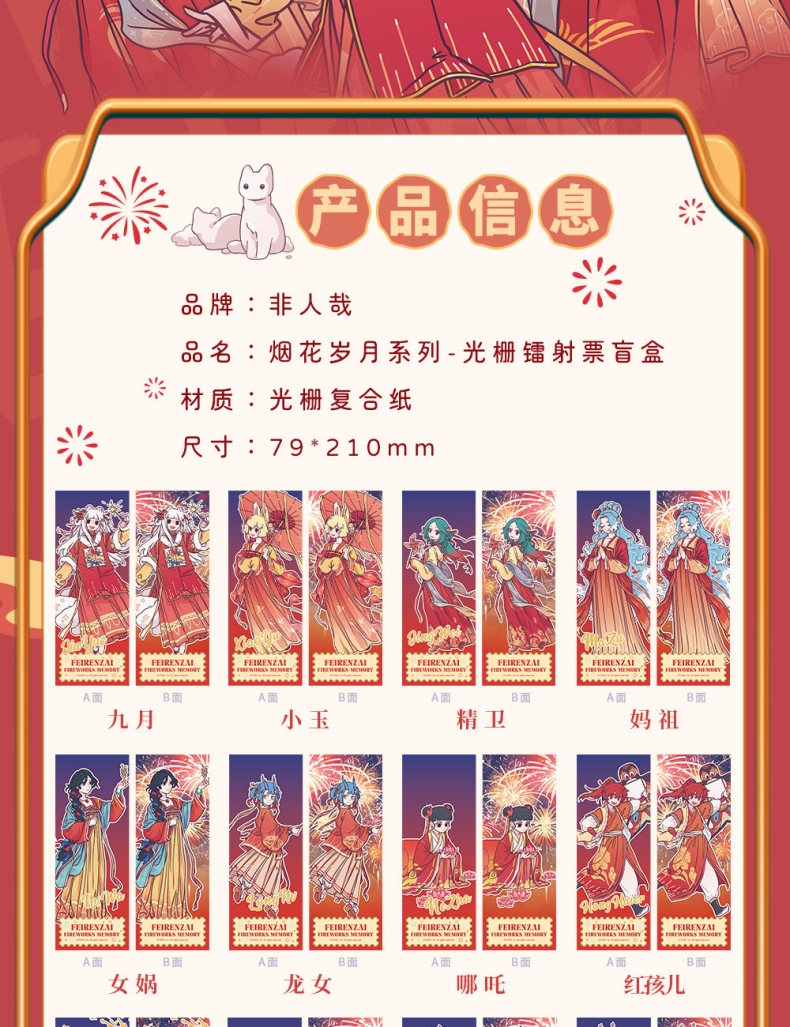 非人哉 烟花岁月系列 光栅镭射票 全15种 14包/盒 国谷