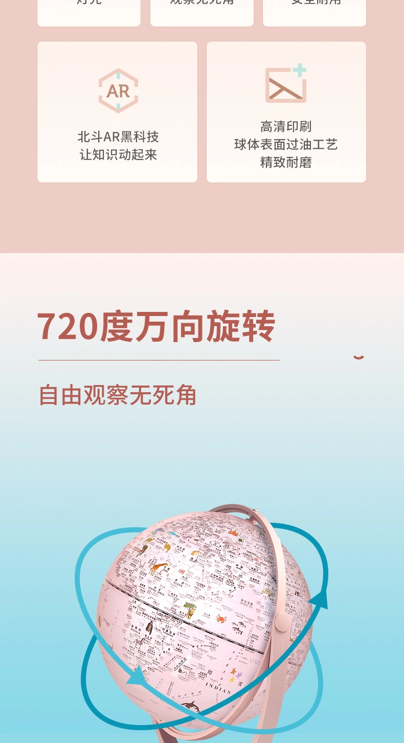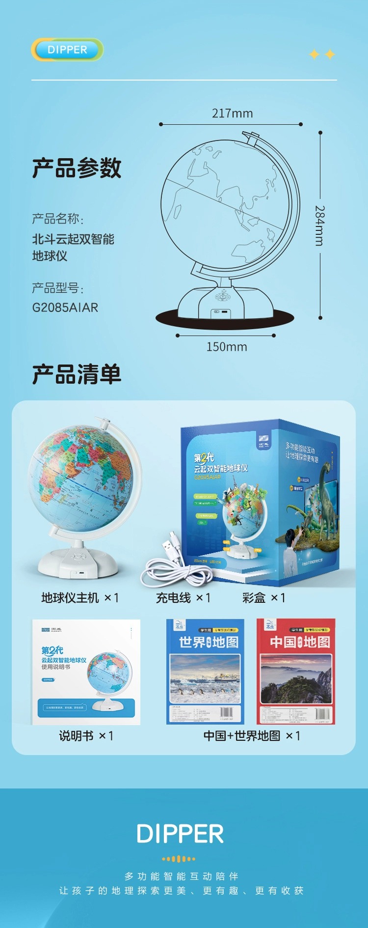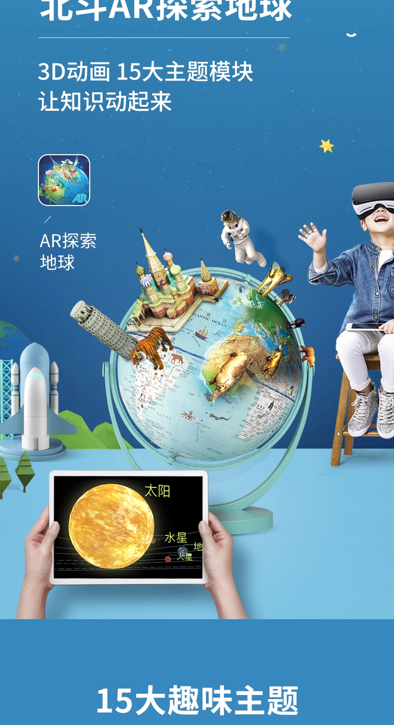 北斗AR地球仪20cm双子座灯光智能语音触控充电版儿童生日礼物3d凹凸立体磁悬浮地球仪小学生初中发光插电款球