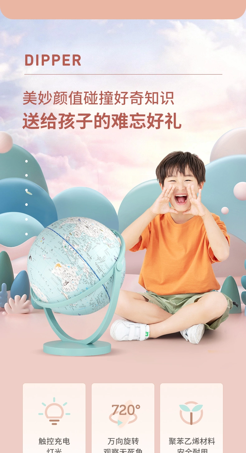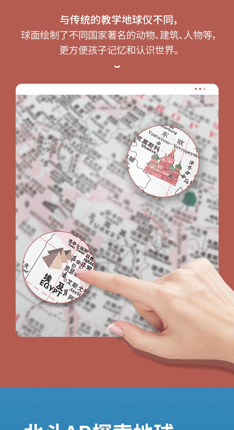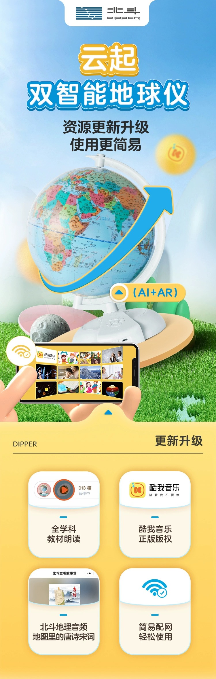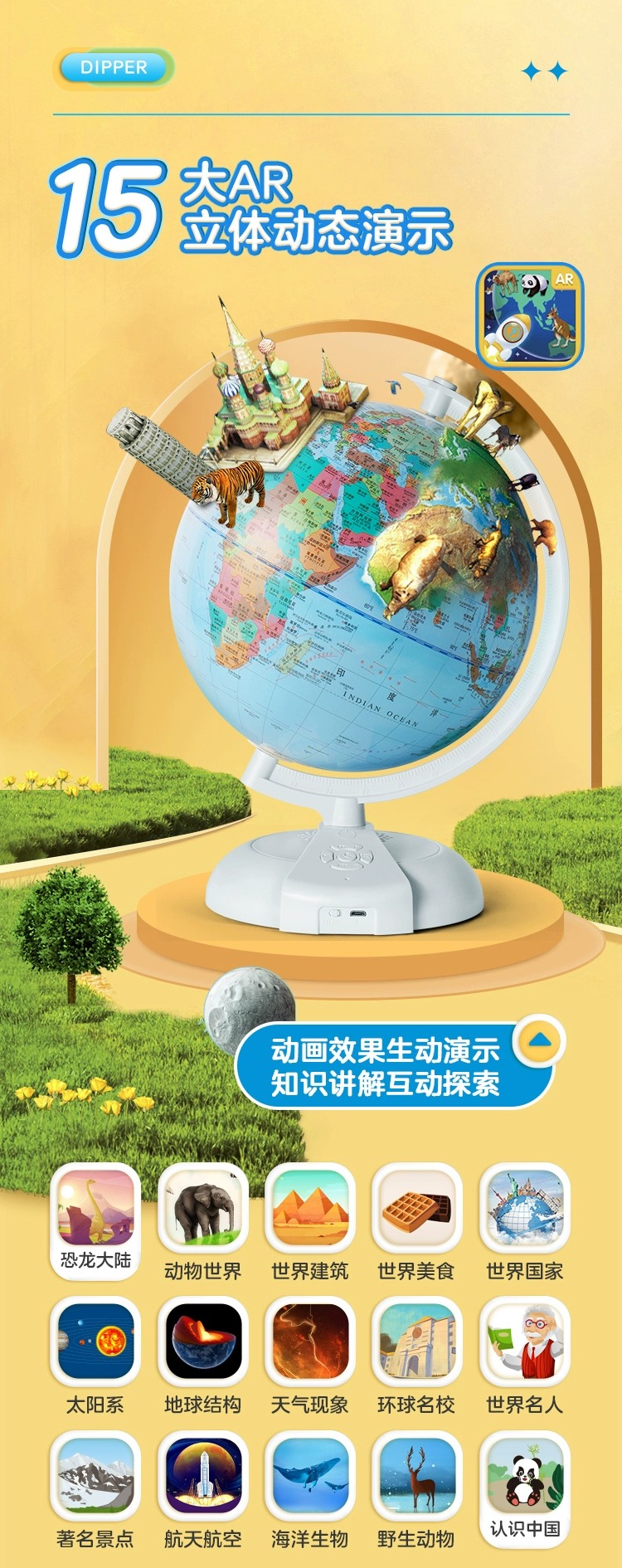 北斗AR地球仪20cm双子座灯光智能语音触控充电版儿童生日礼物3d凹凸立体磁悬浮地球仪小学生初中发光插电款球