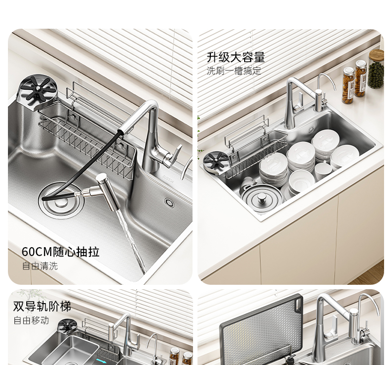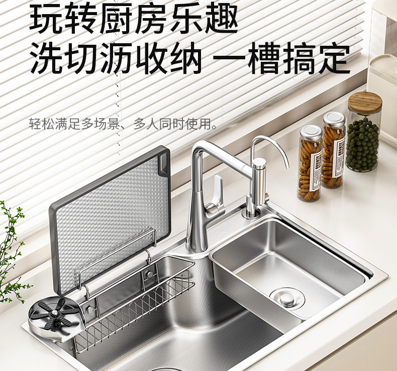 帝王洁具304不锈钢导轨阶梯大单槽OH67018水槽