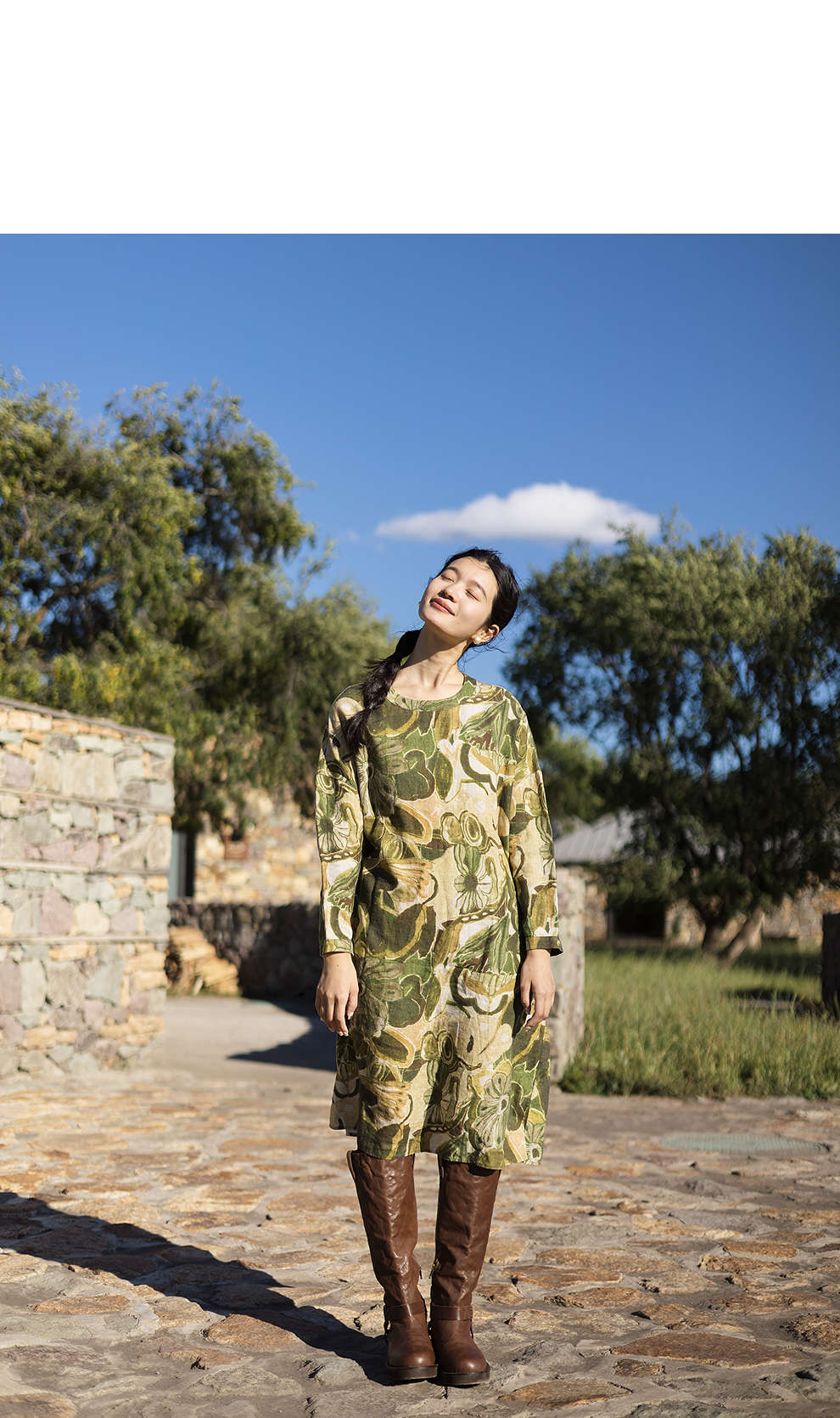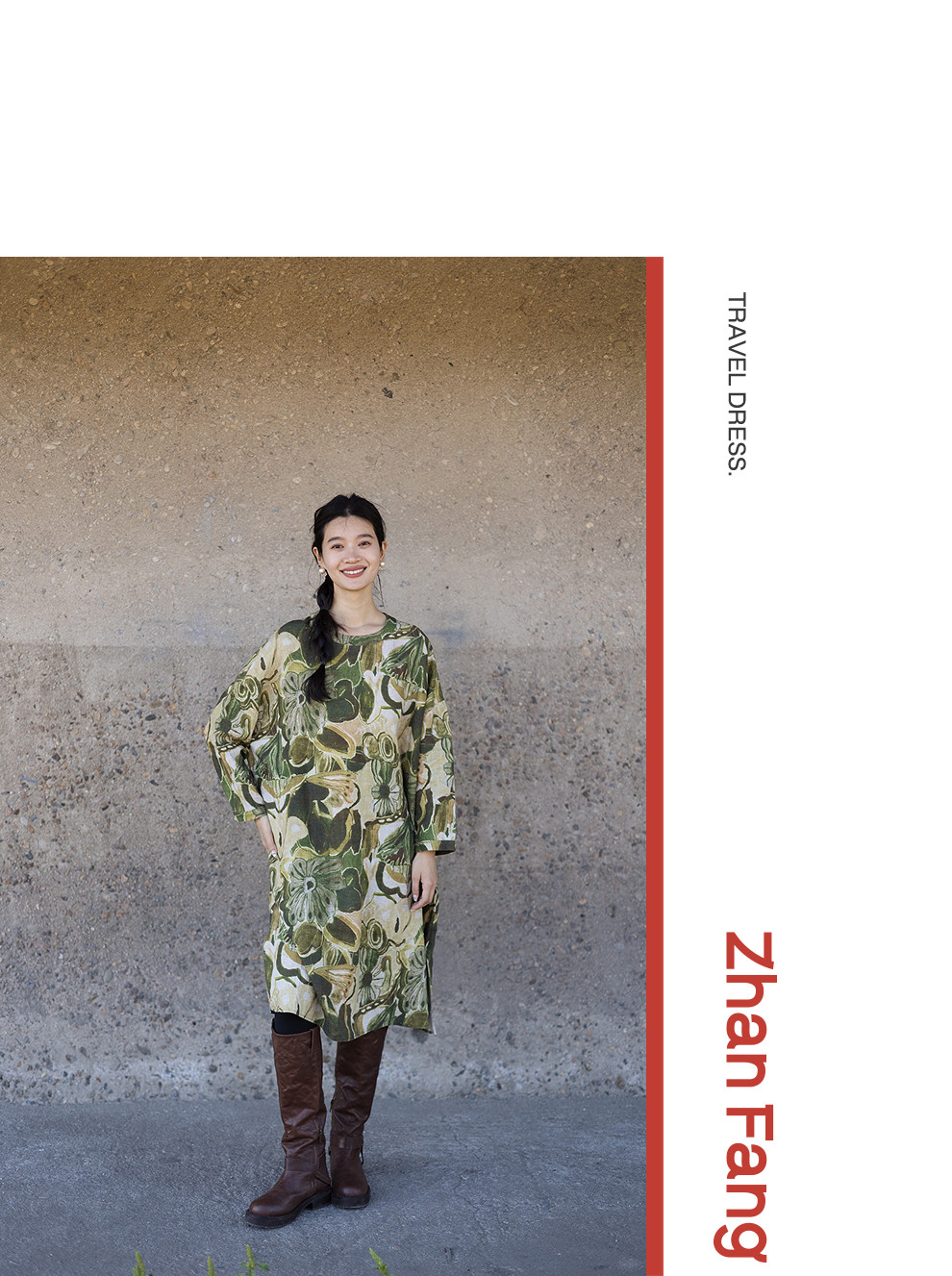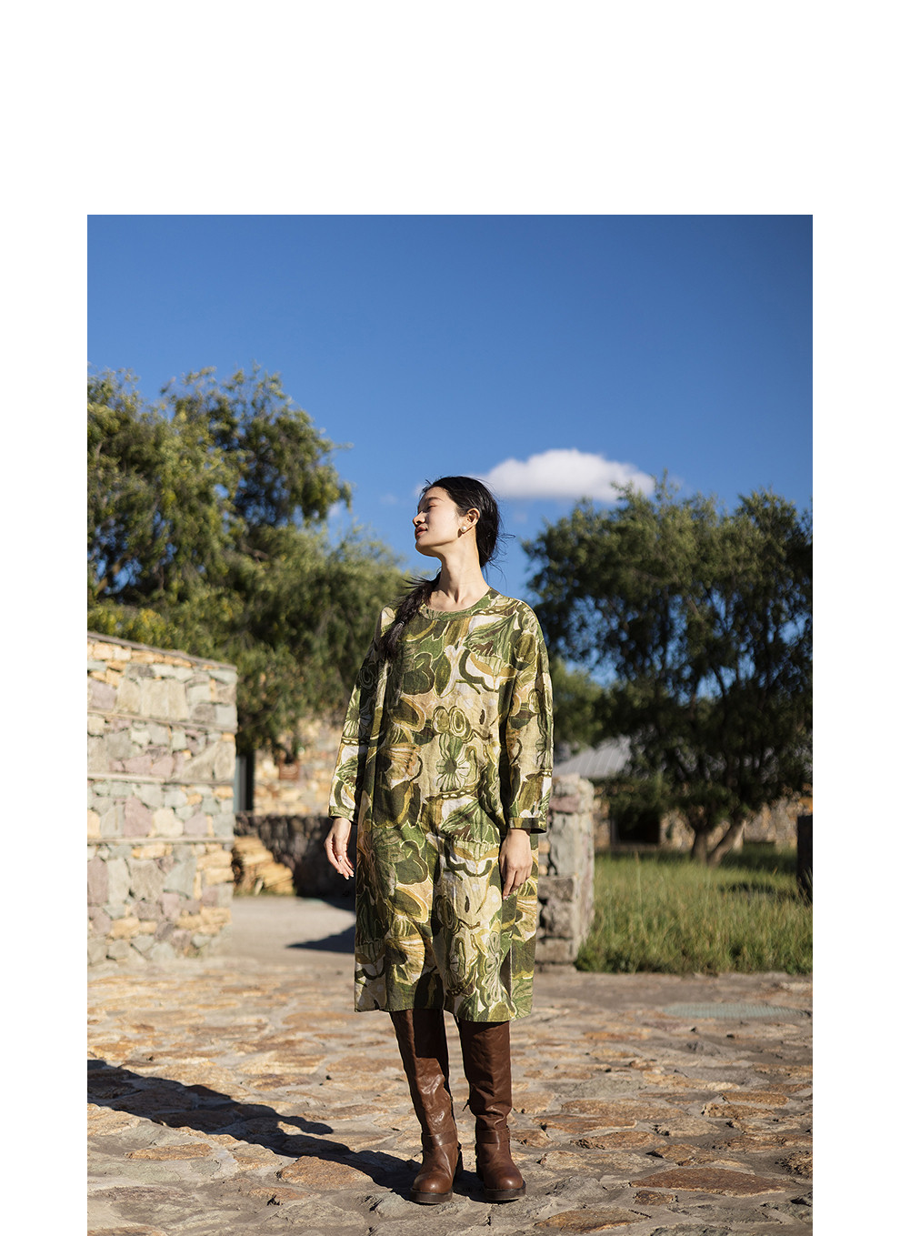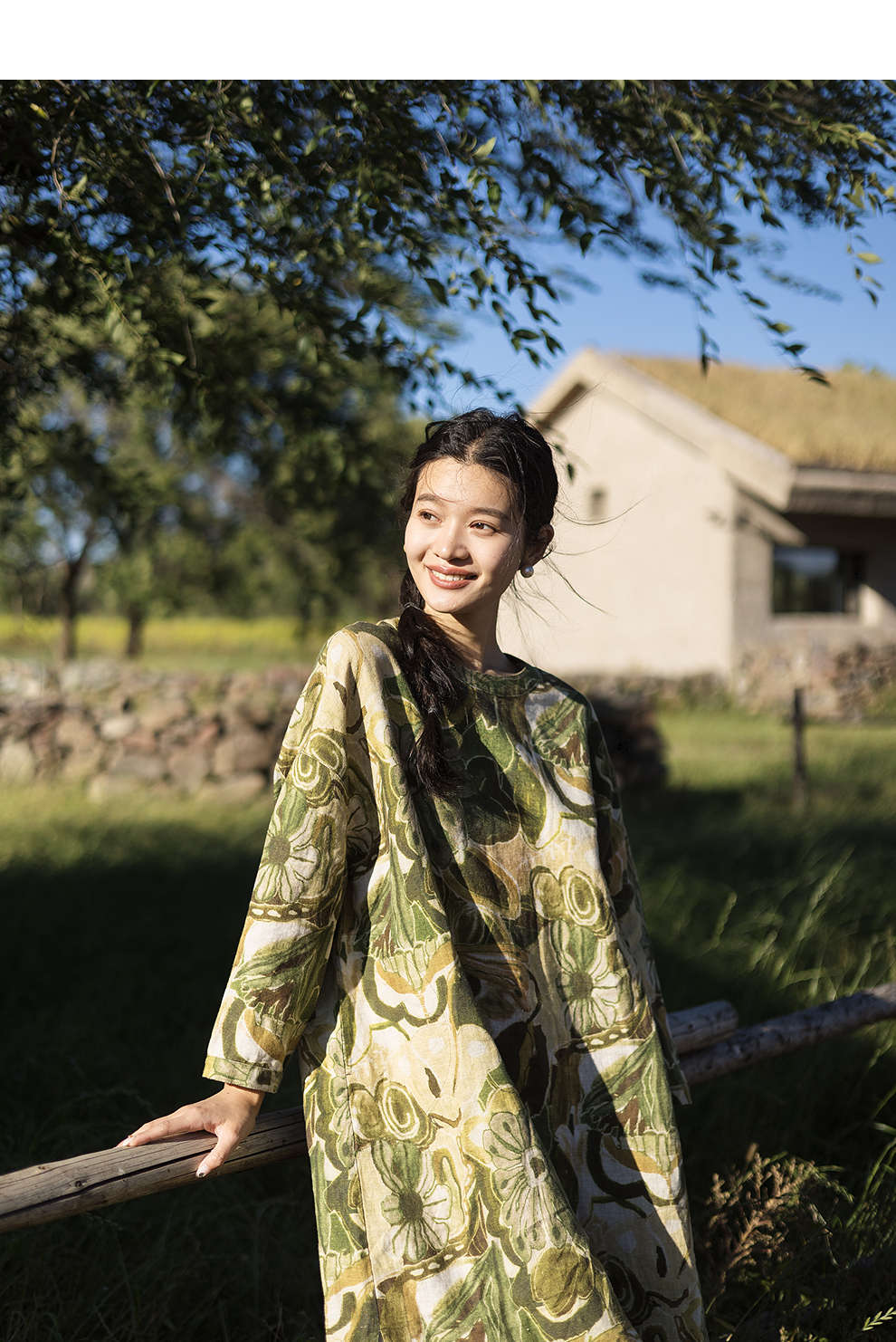绽放675朵/行走的画布连衣裙·加厚双雨露麻底手绘印花长袖连衣裙