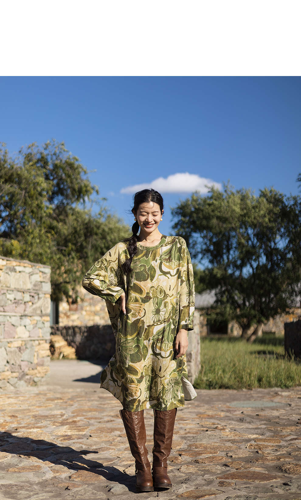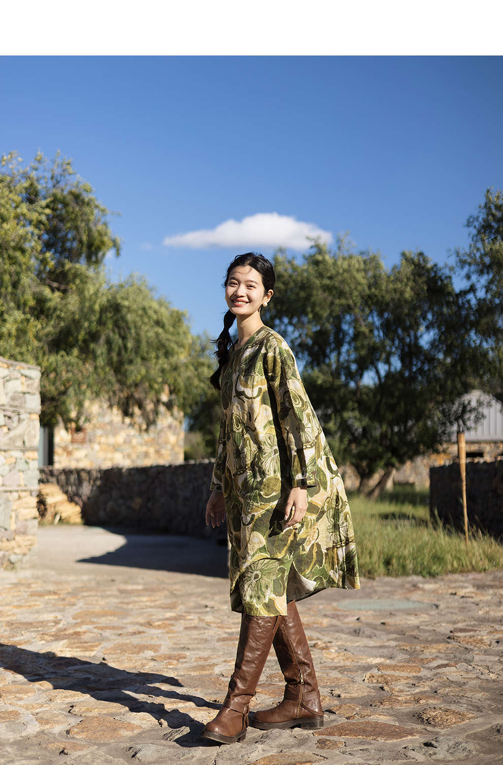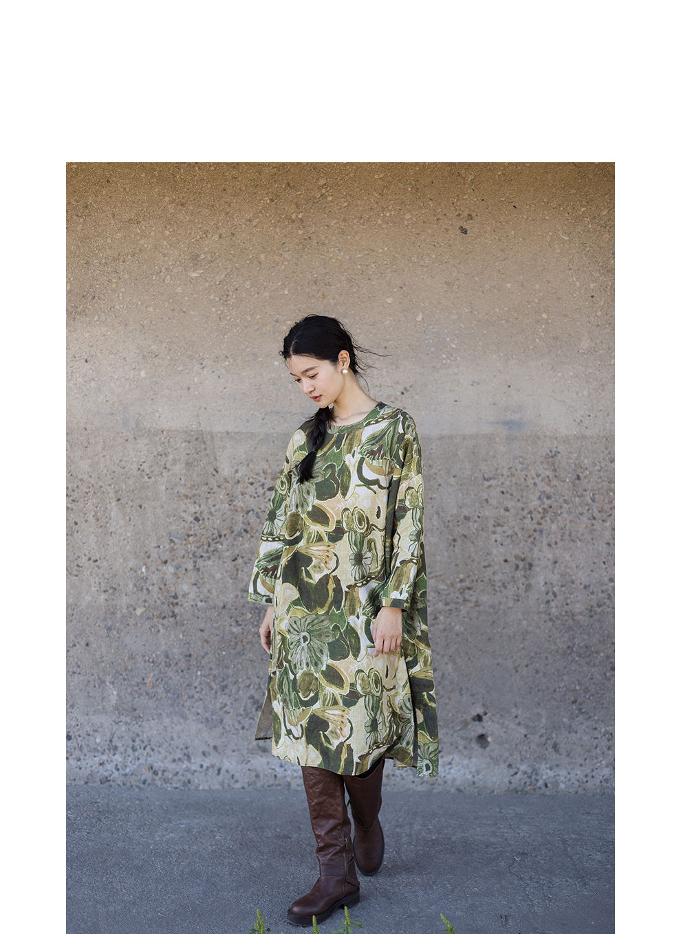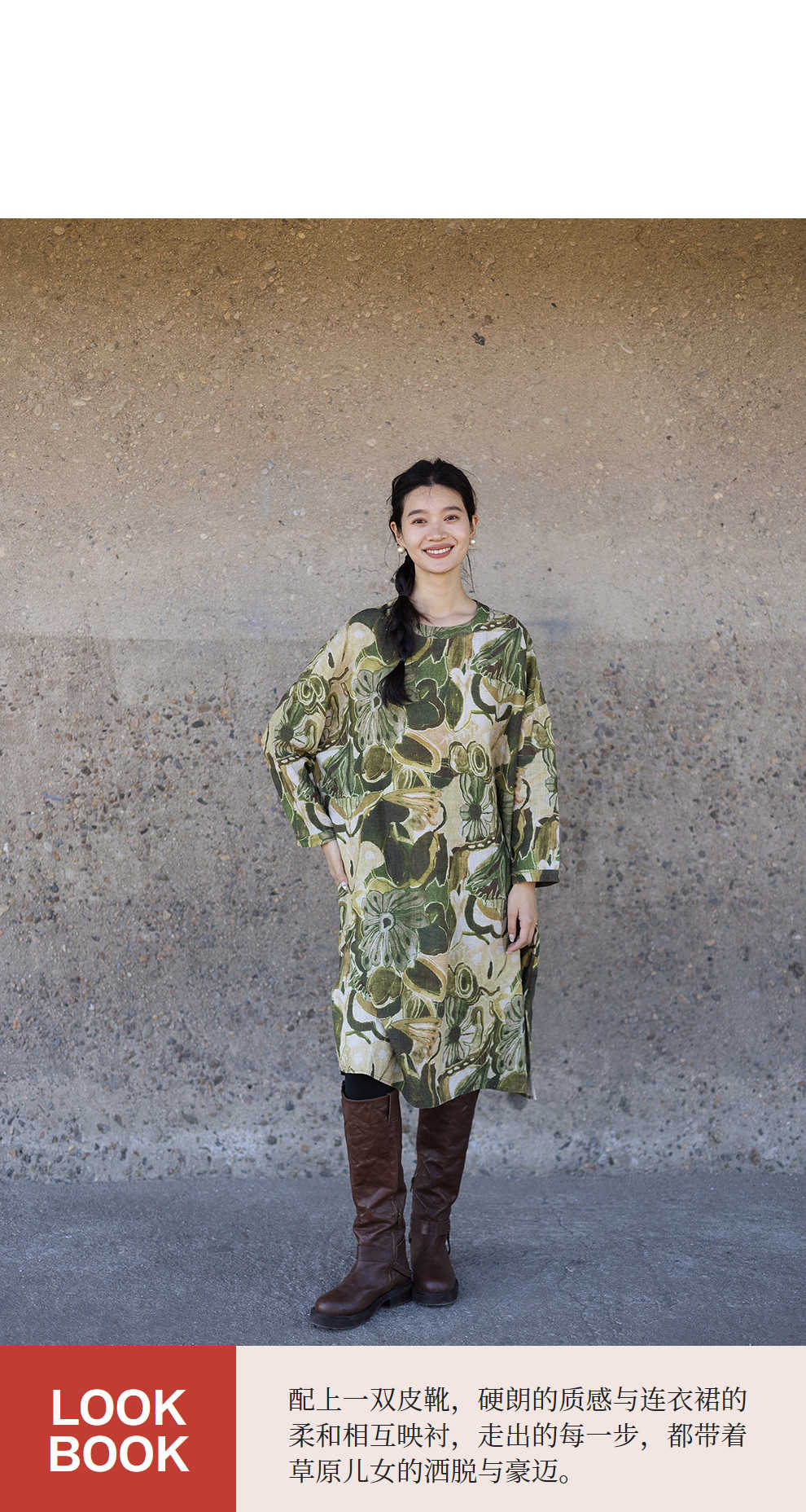 绽放675朵/行走的画布连衣裙·加厚双雨露麻底手绘印花长袖连衣裙