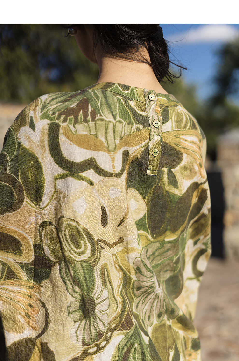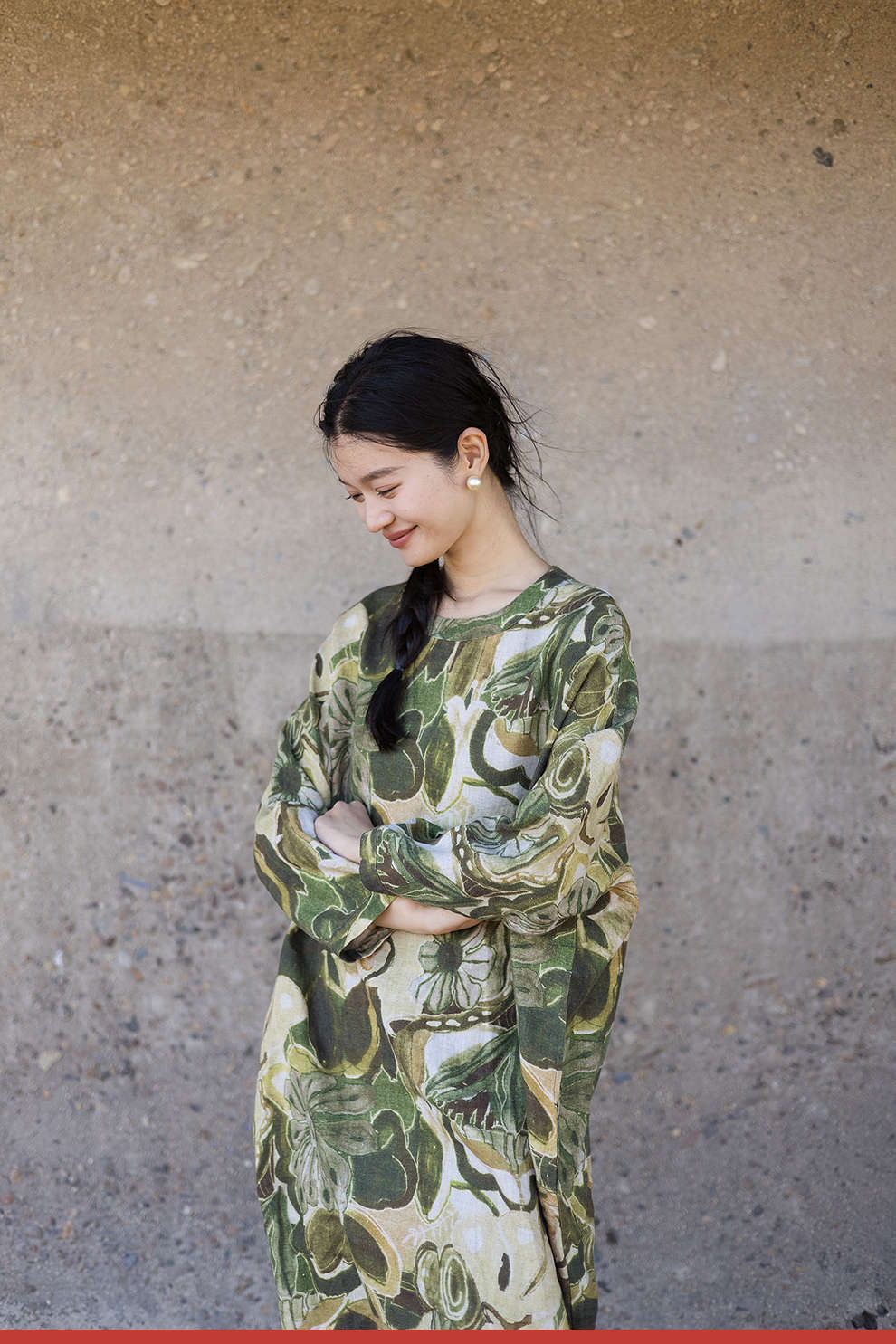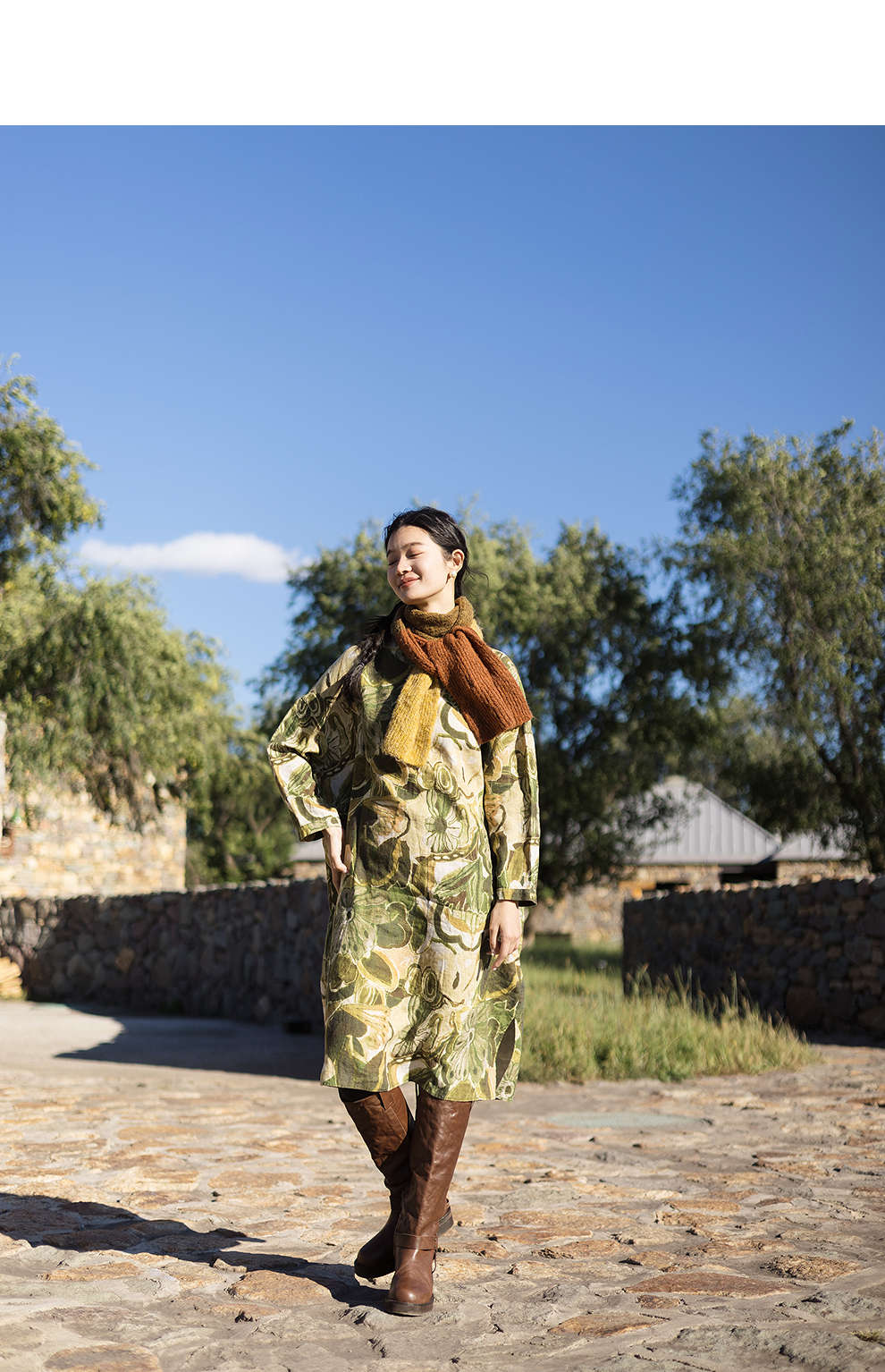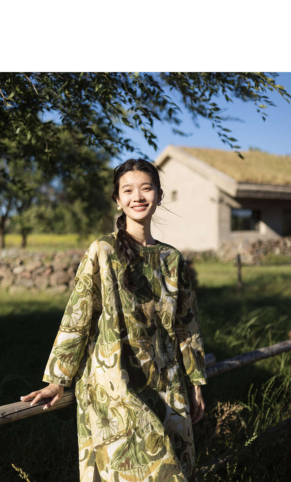 绽放675朵/行走的画布连衣裙·加厚双雨露麻底手绘印花长袖连衣裙