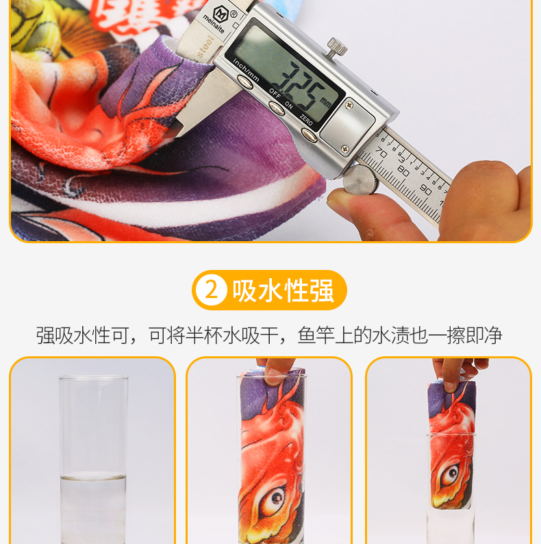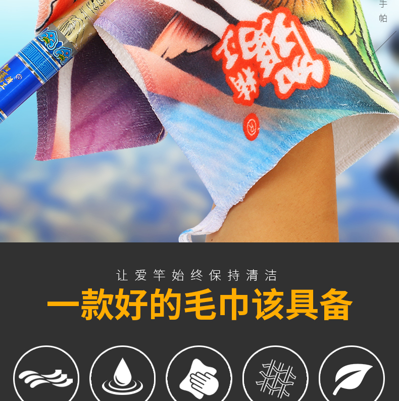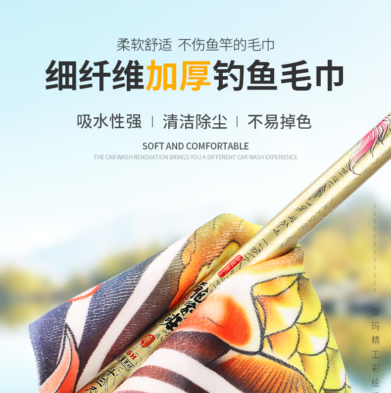 伽玛精工毛巾中长款加厚钓鱼新型强悍吸水加绒大鱼新型彩绘弹力柔软方巾