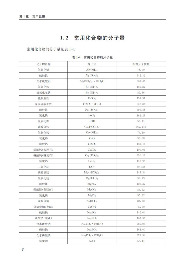 1.2 常用化合物的分子量