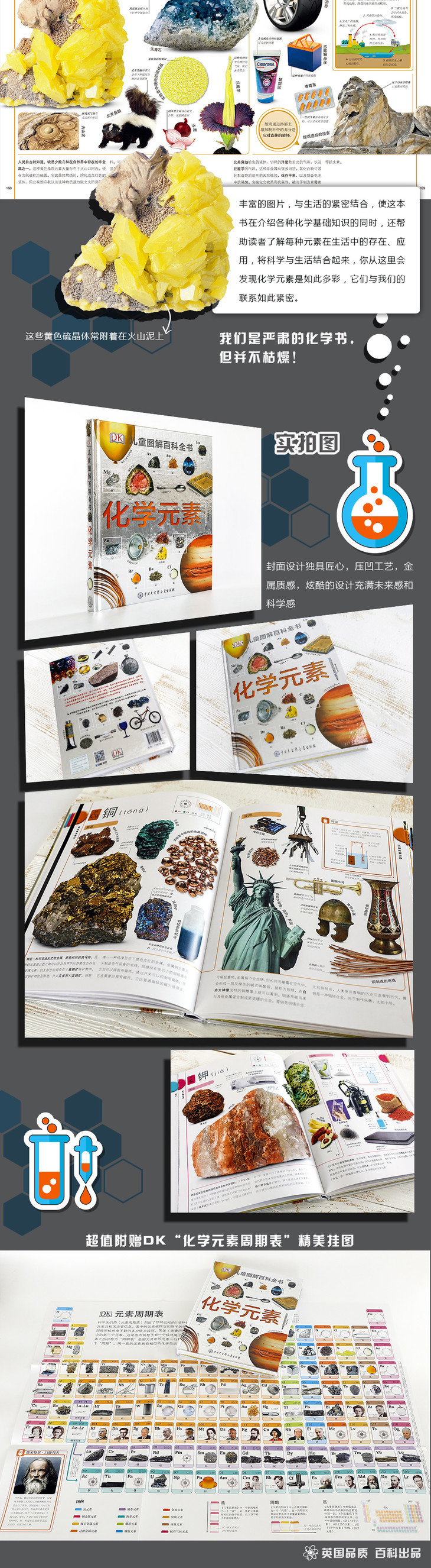 《DK儿童图解百科全书 化学元素》精装 专为6-14岁孩子设计的化学启蒙书 附赠 超大全彩元素周期表
