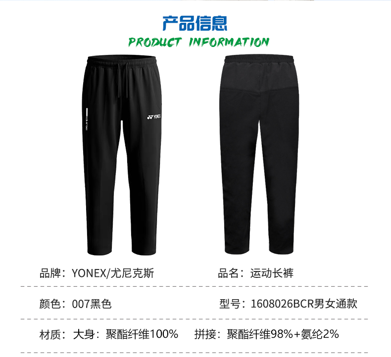 2026年新款YONEX尤尼克斯羽毛球服男款运动长裤1608026BCR高弹舒适速干透气长裤