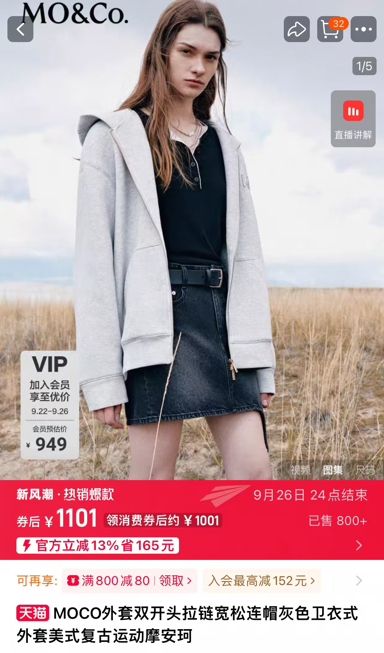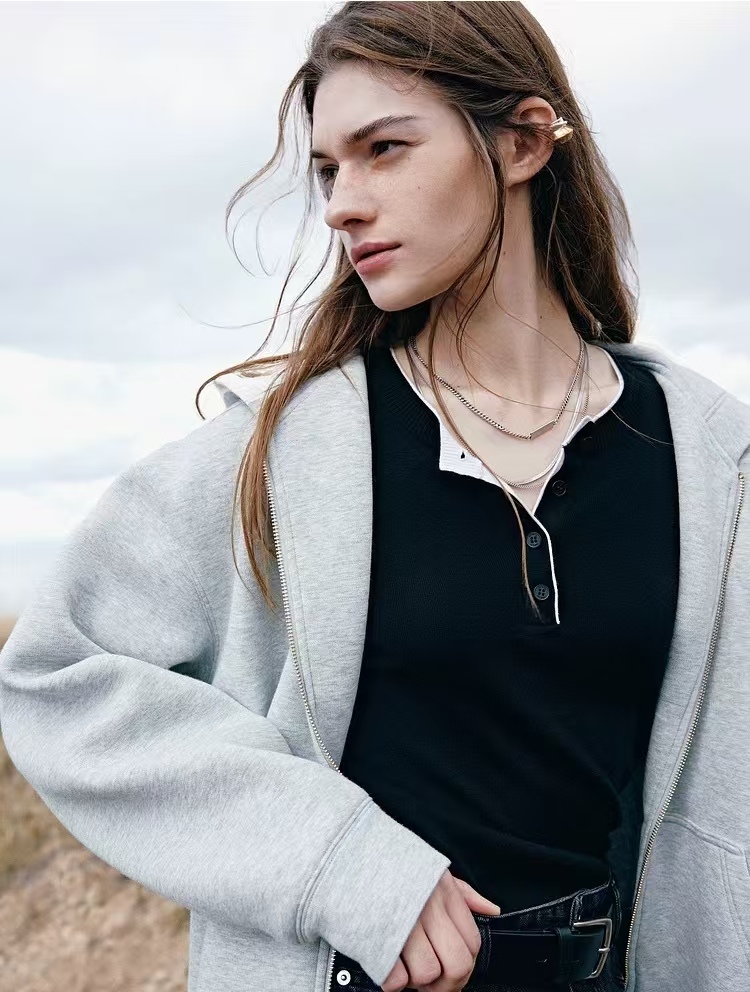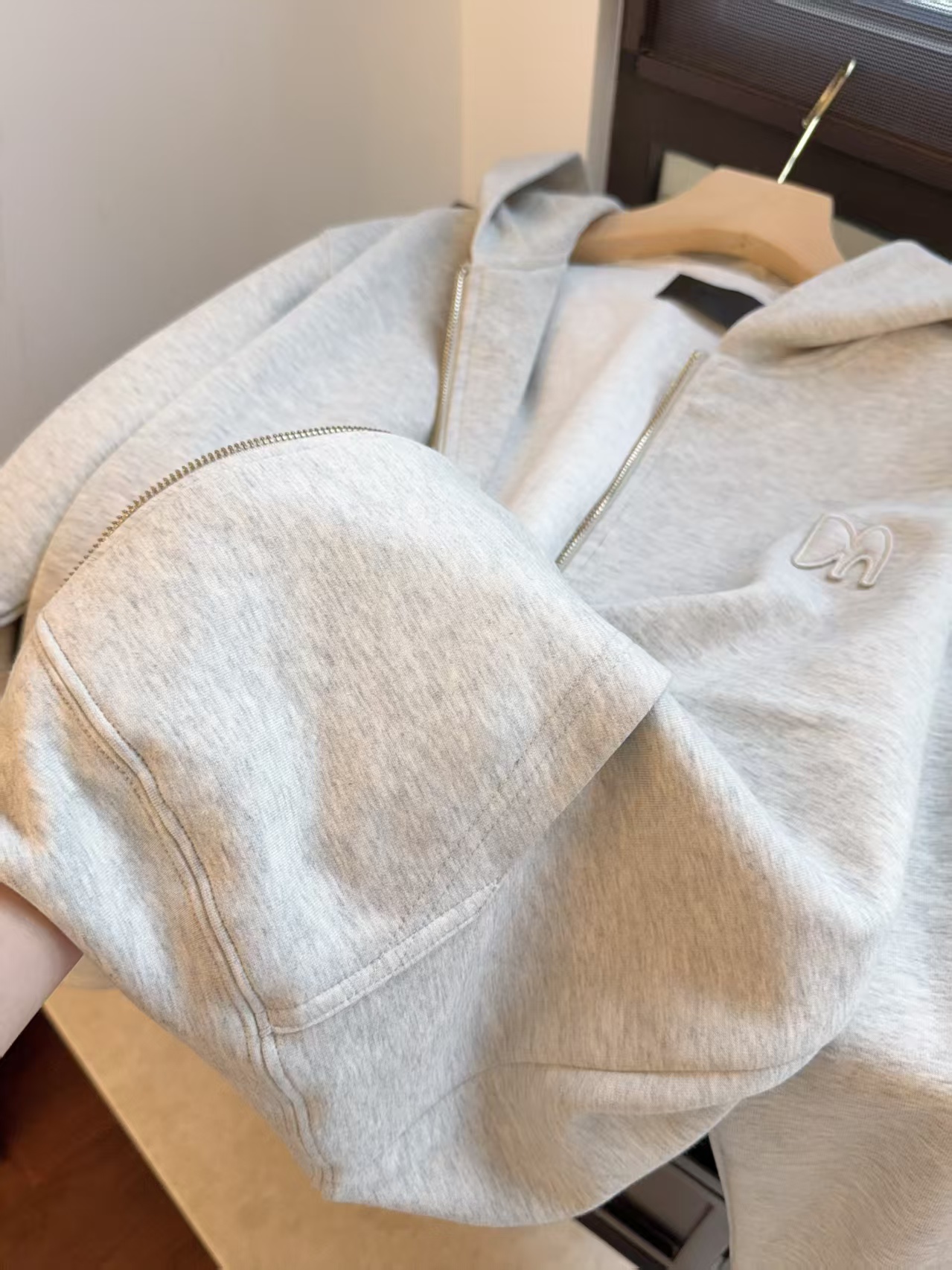 双头拉链简洁设计更百搭。浅灰的让整件卫衣更有档次。